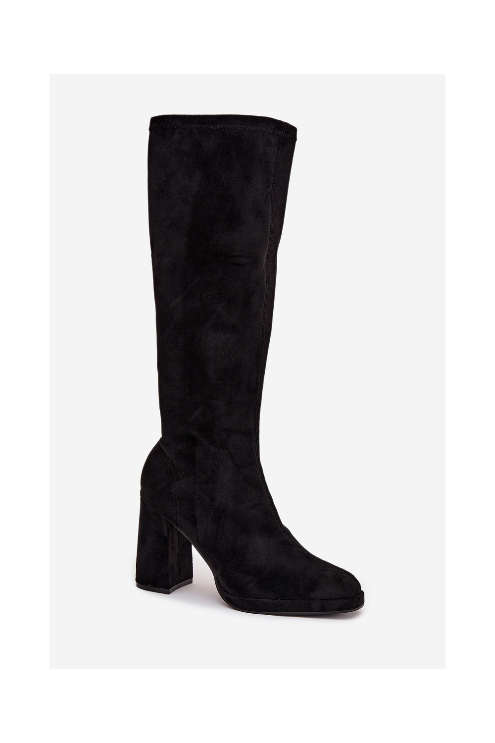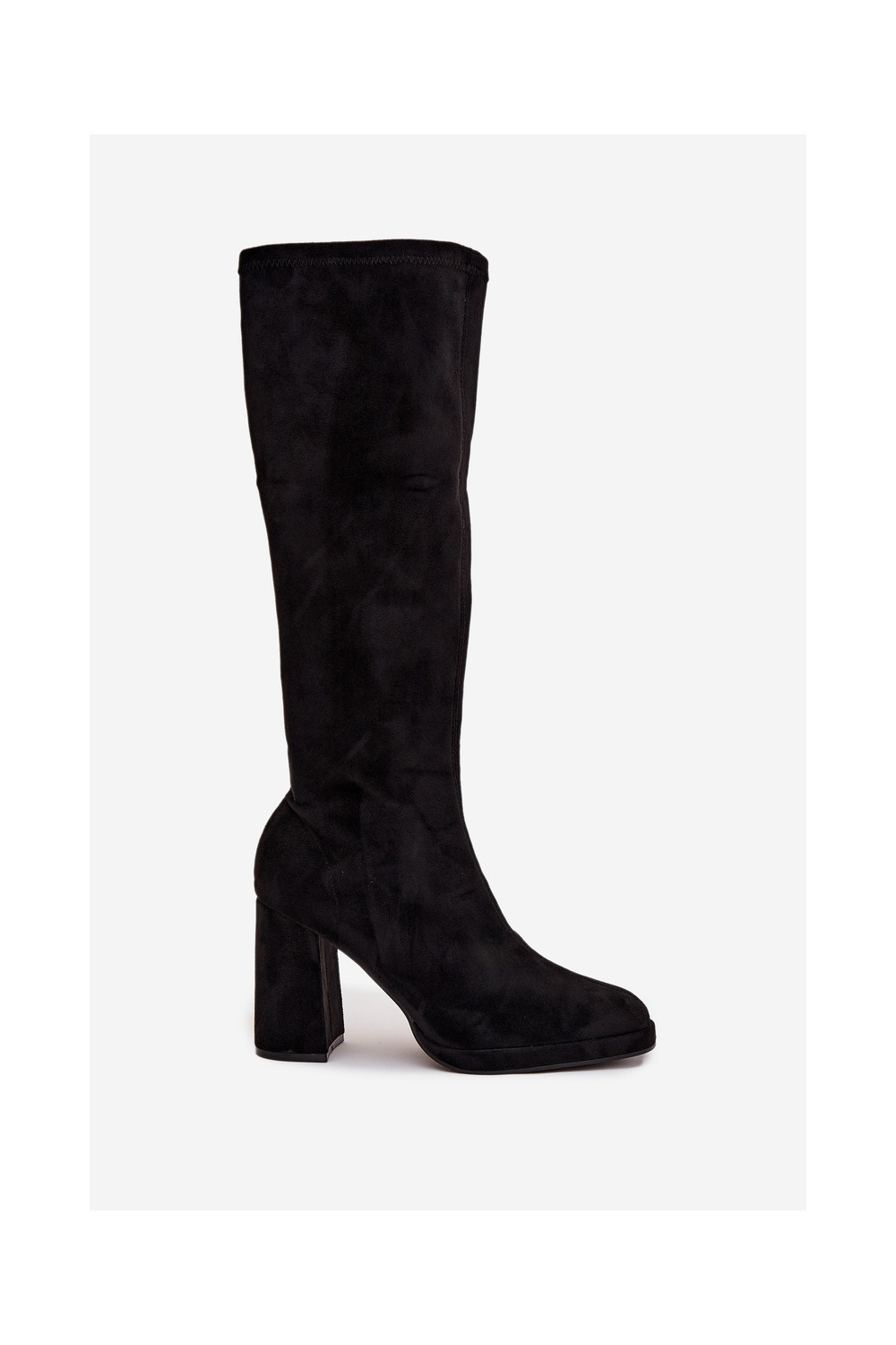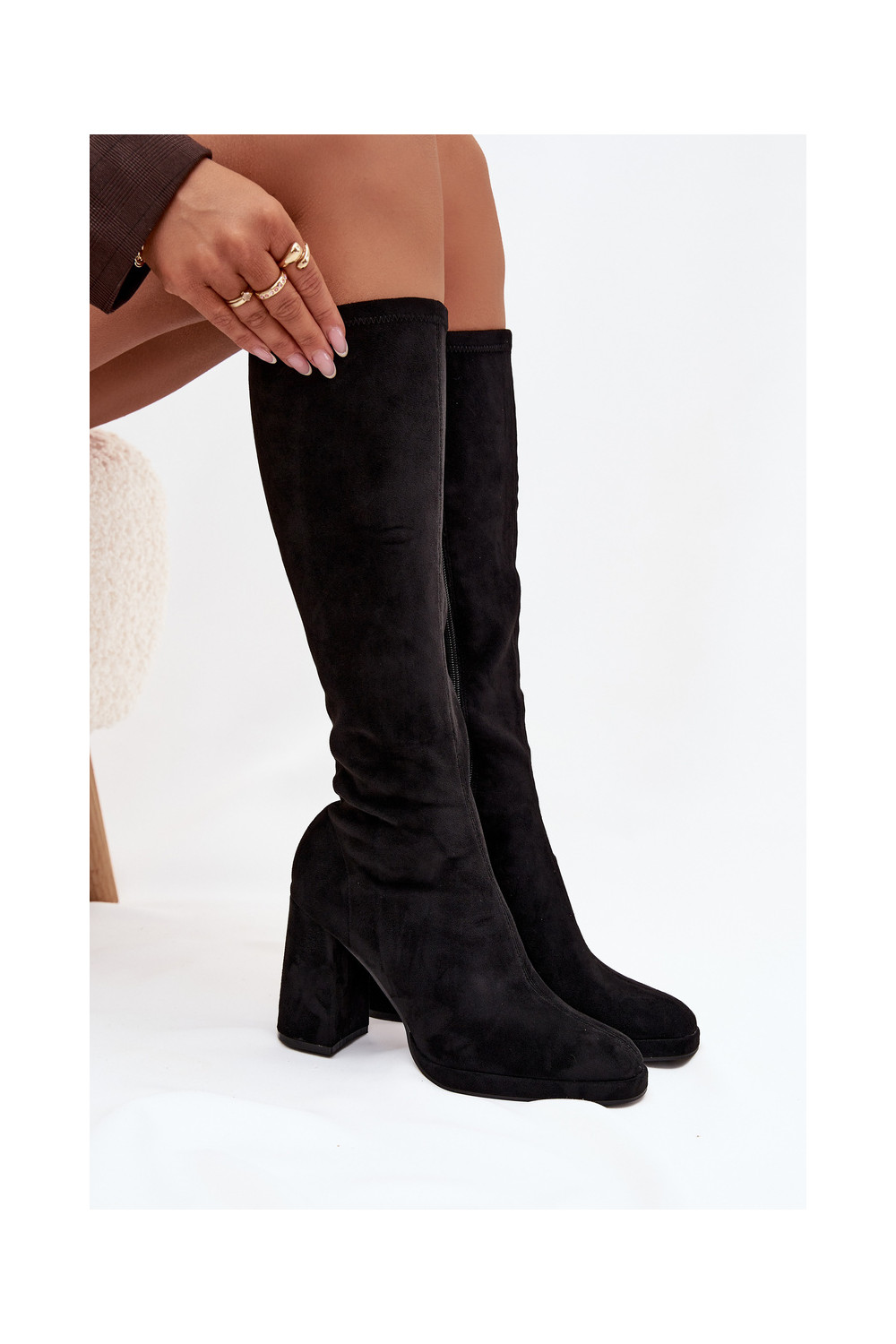 dámské dlouhé boty Z Przeszyciami Na Słupkowym Obcasie Černé Brivana