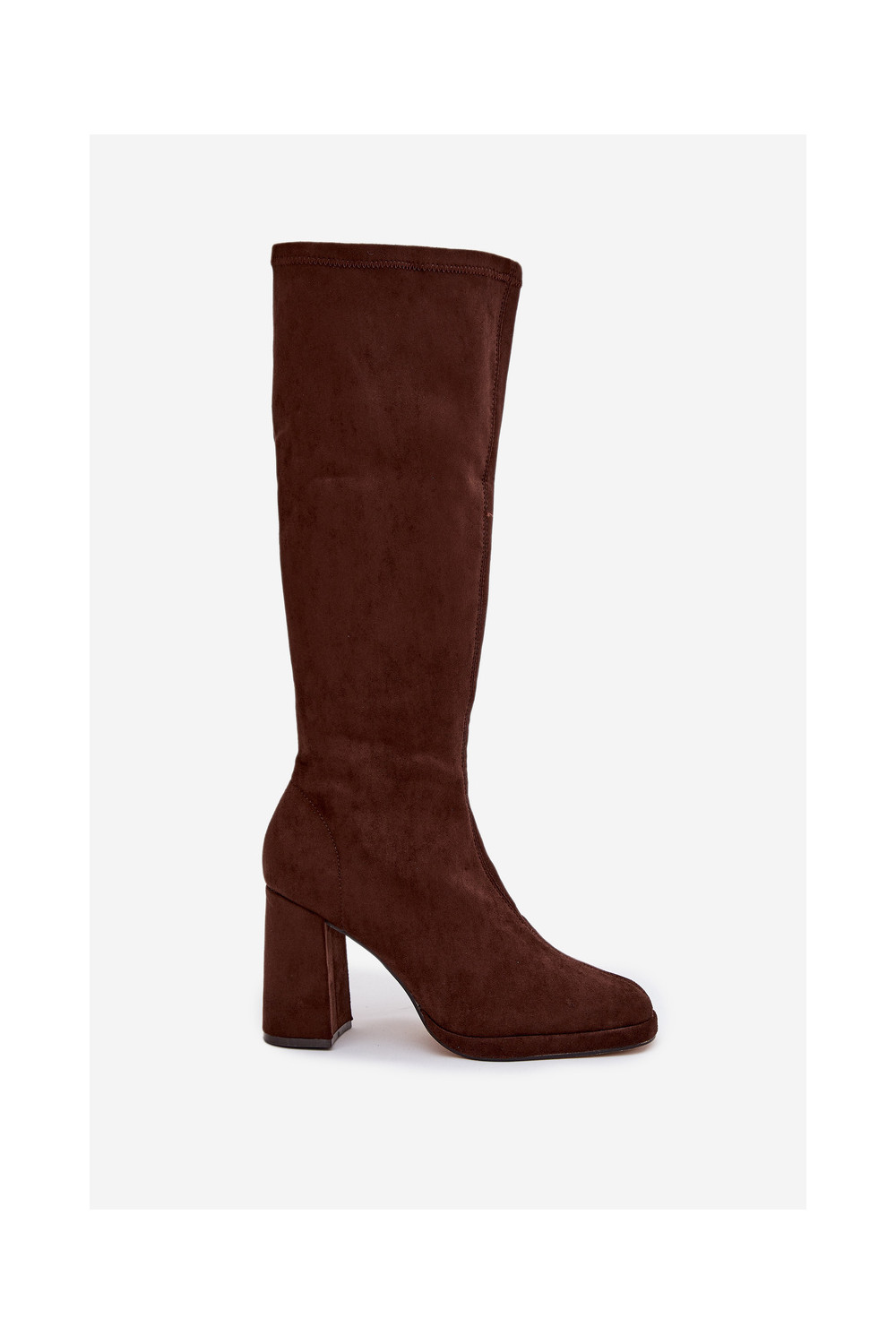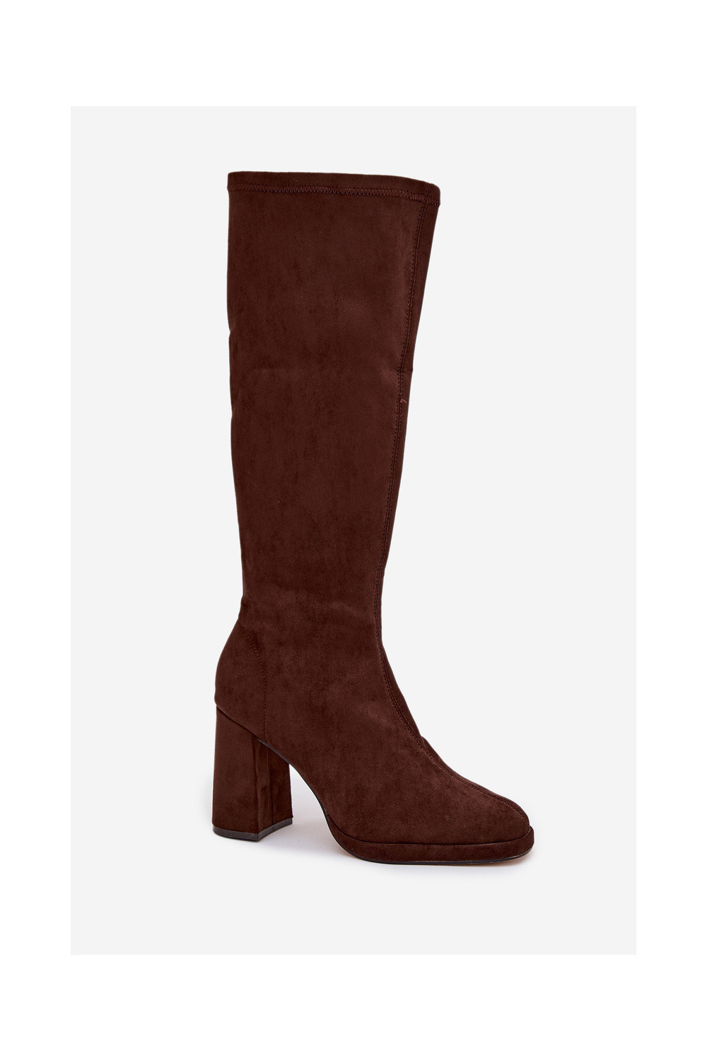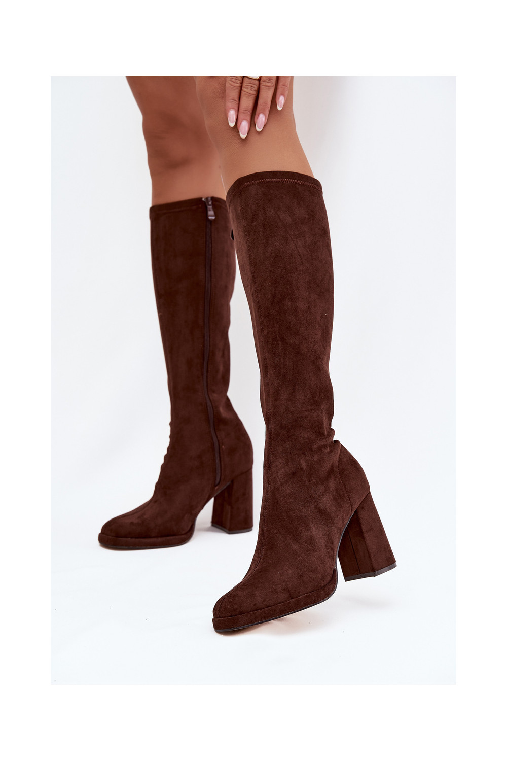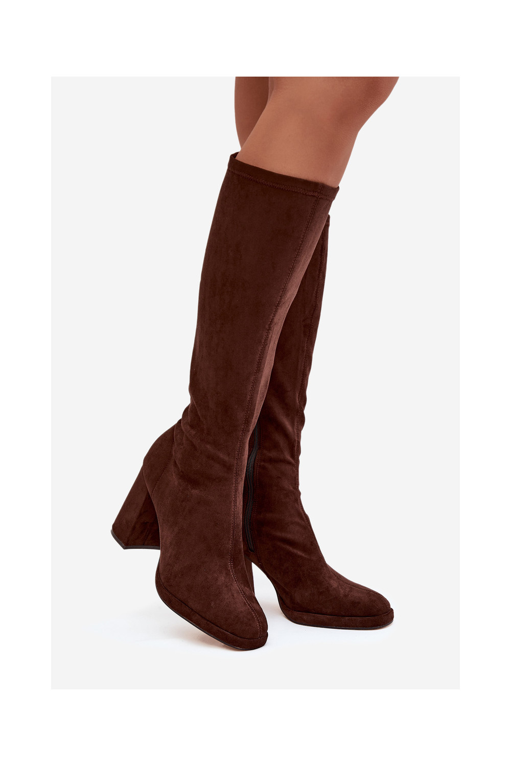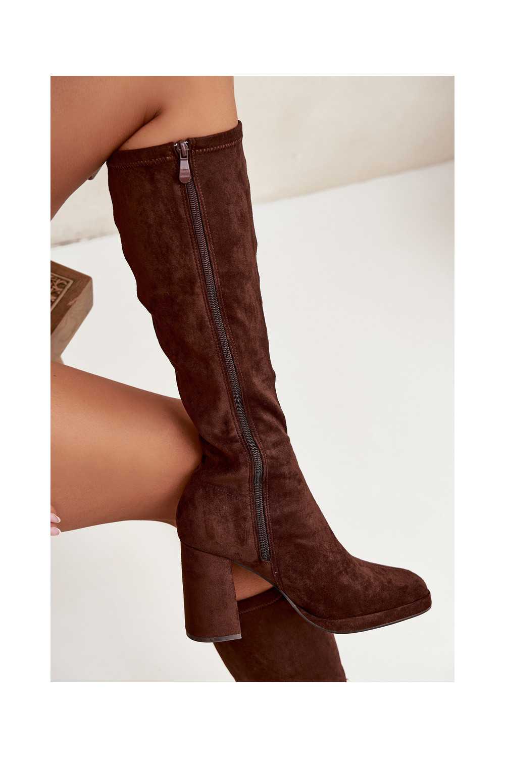 dámské dlouhé boty Z Przeszyciami Na Słupkowym Obcasie hnědá Brivana