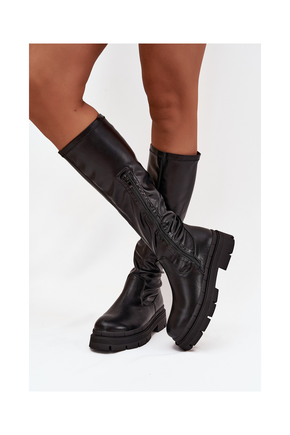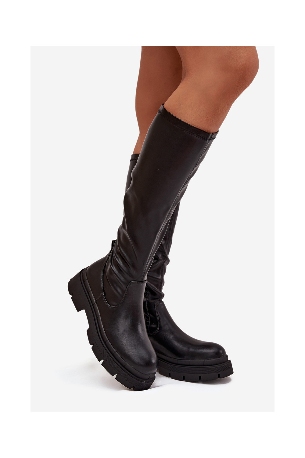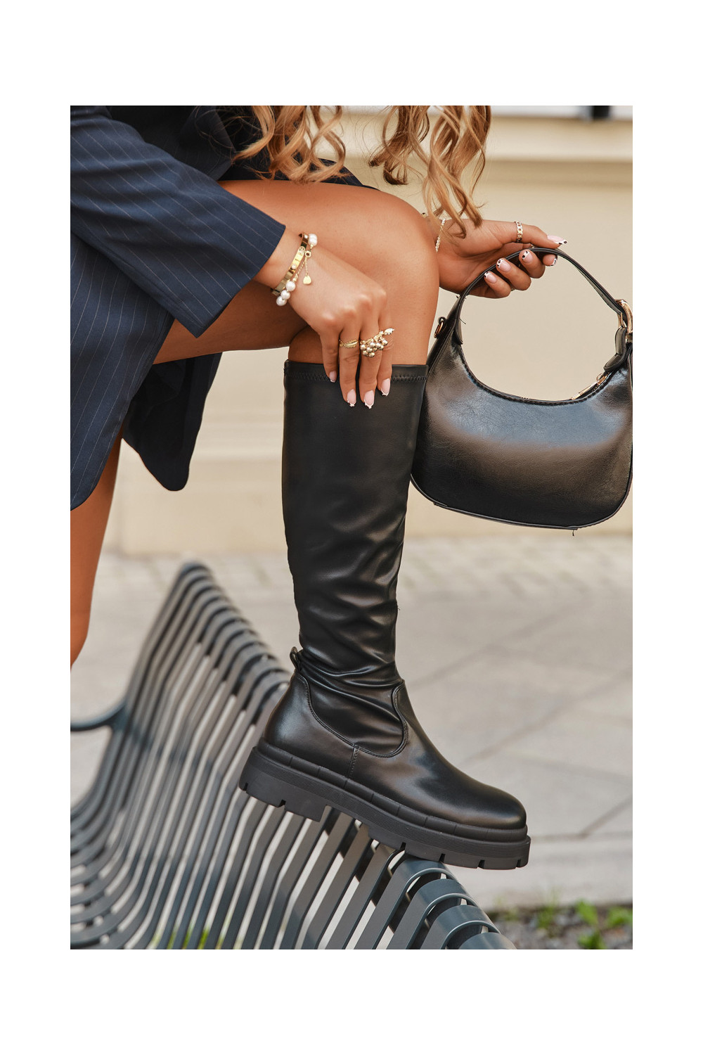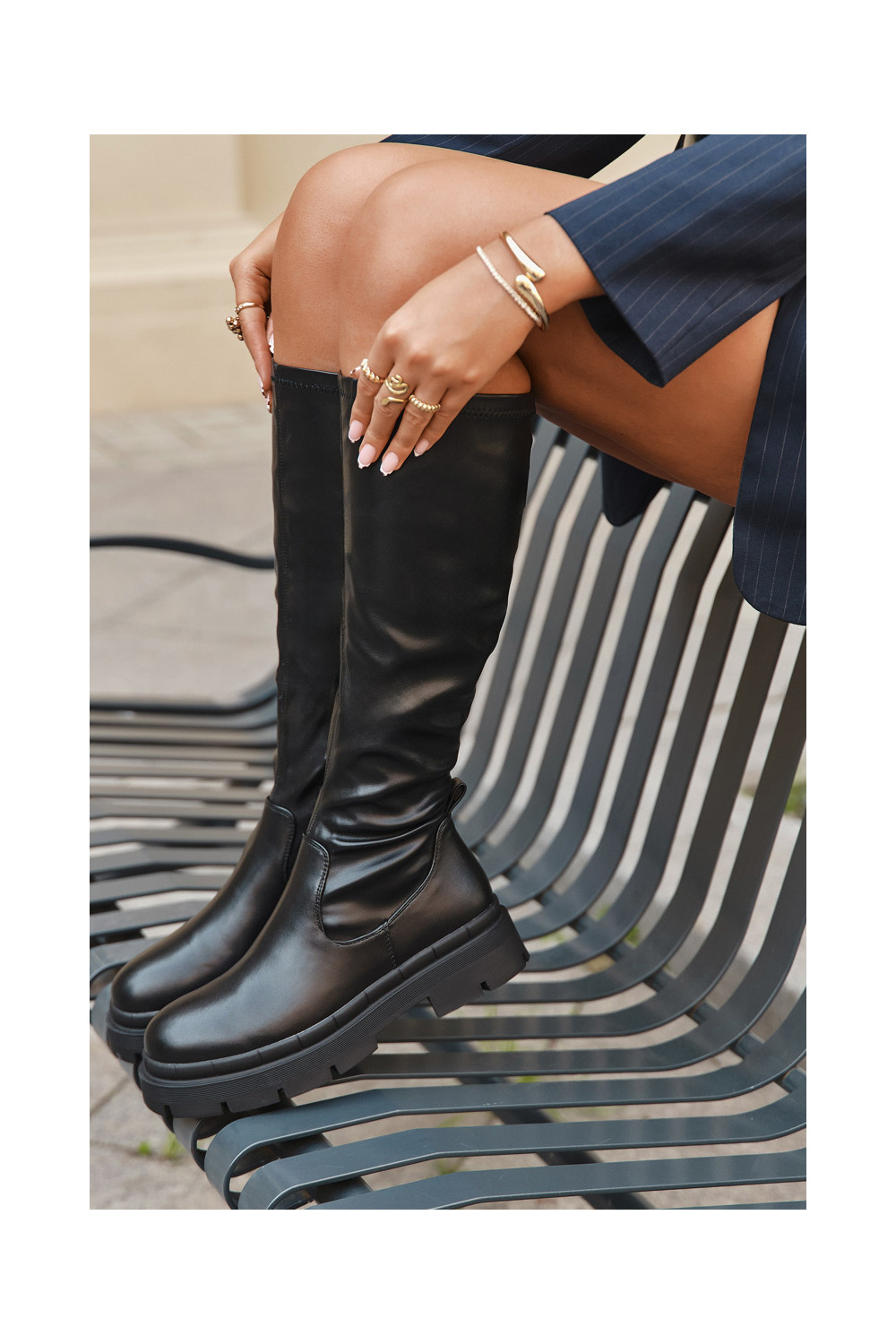 dámské dlouhé boty s platformou z ekologické kůže Černé Marivelle