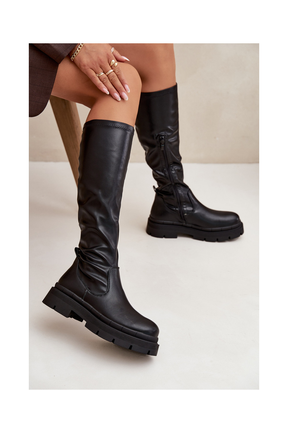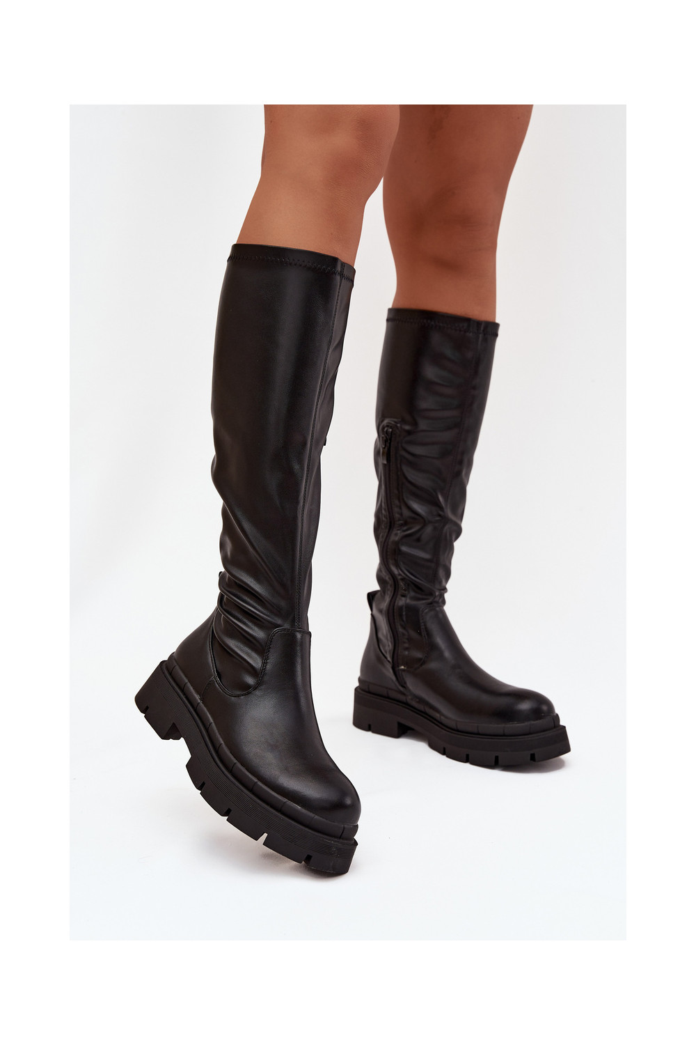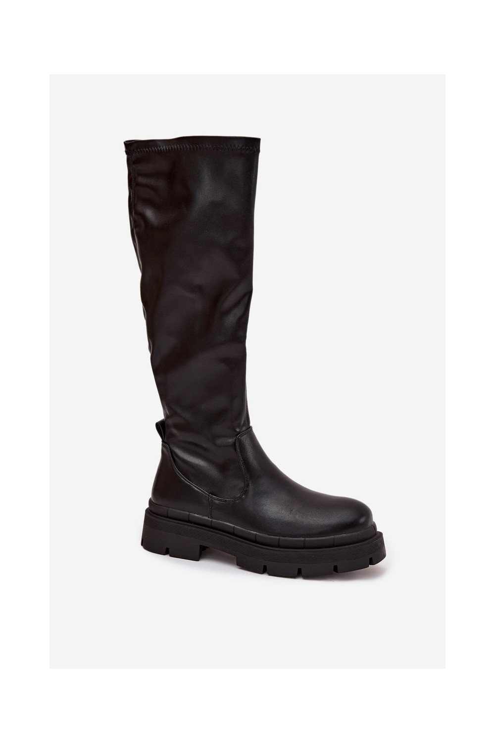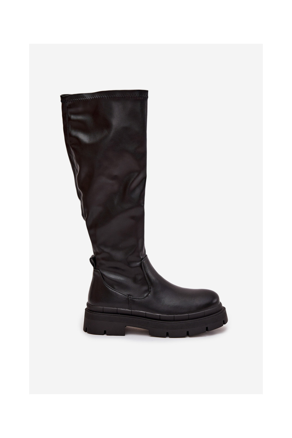dámské dlouhé boty s platformou z ekologické kůže Černé Marivelle