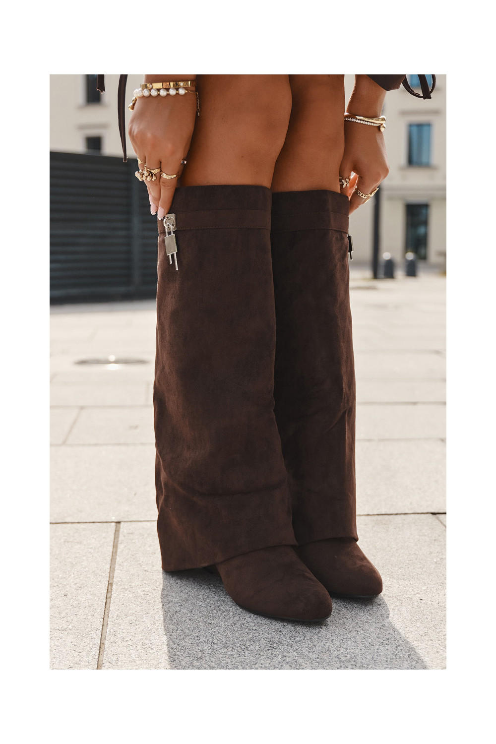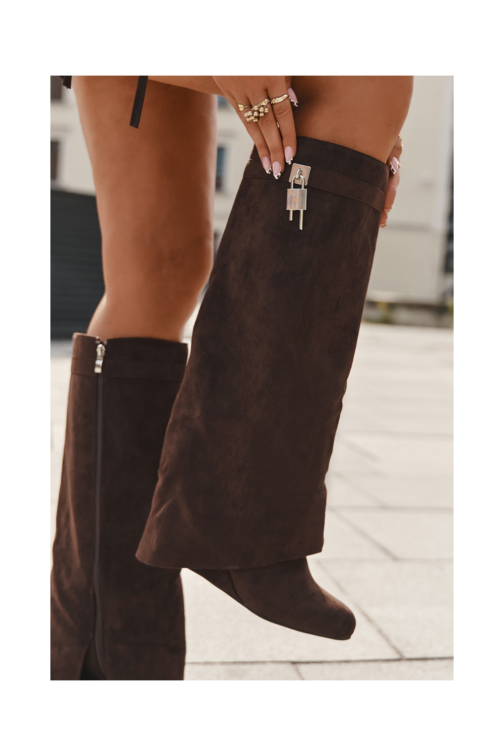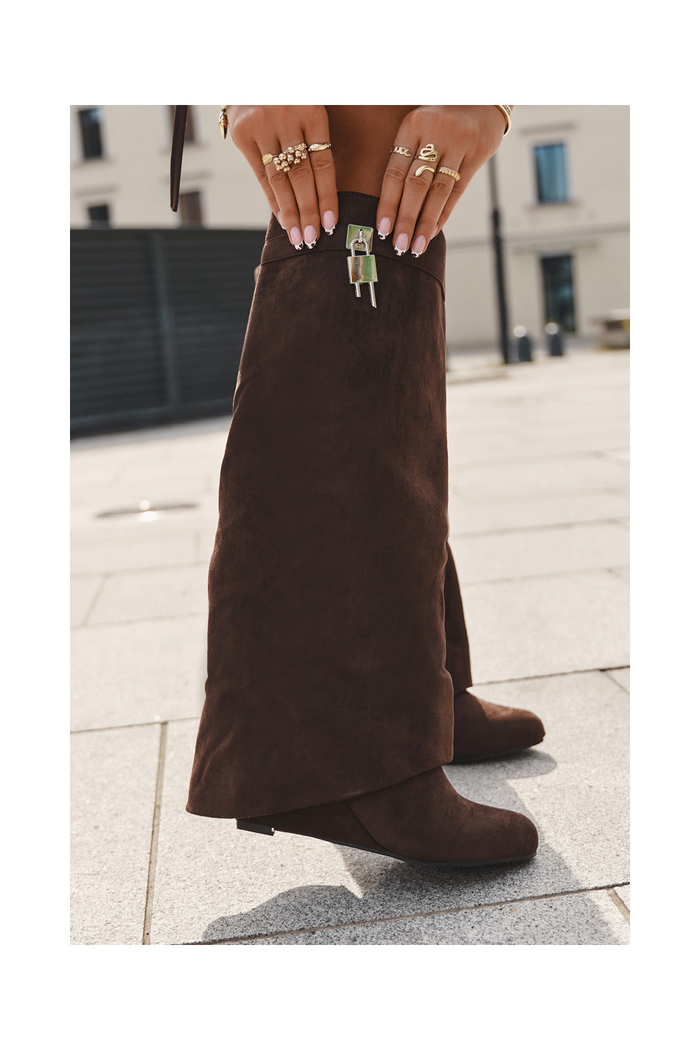 dámské dlouhé boty s popruhy I stříbrné barvym Detalem Czekoladowe Korivelle