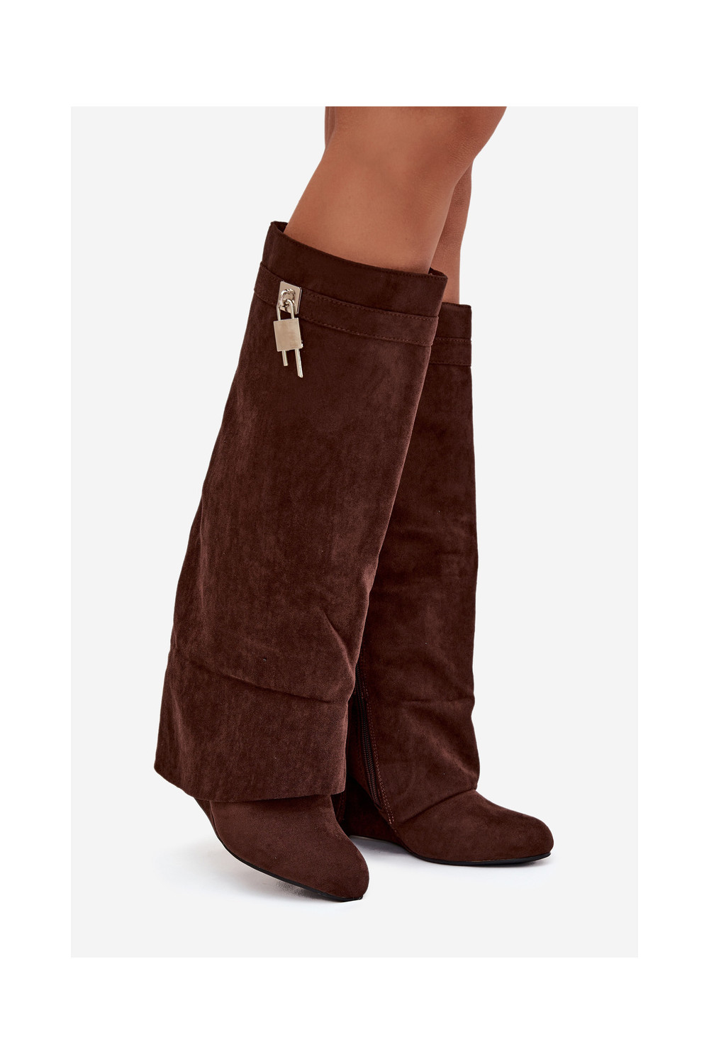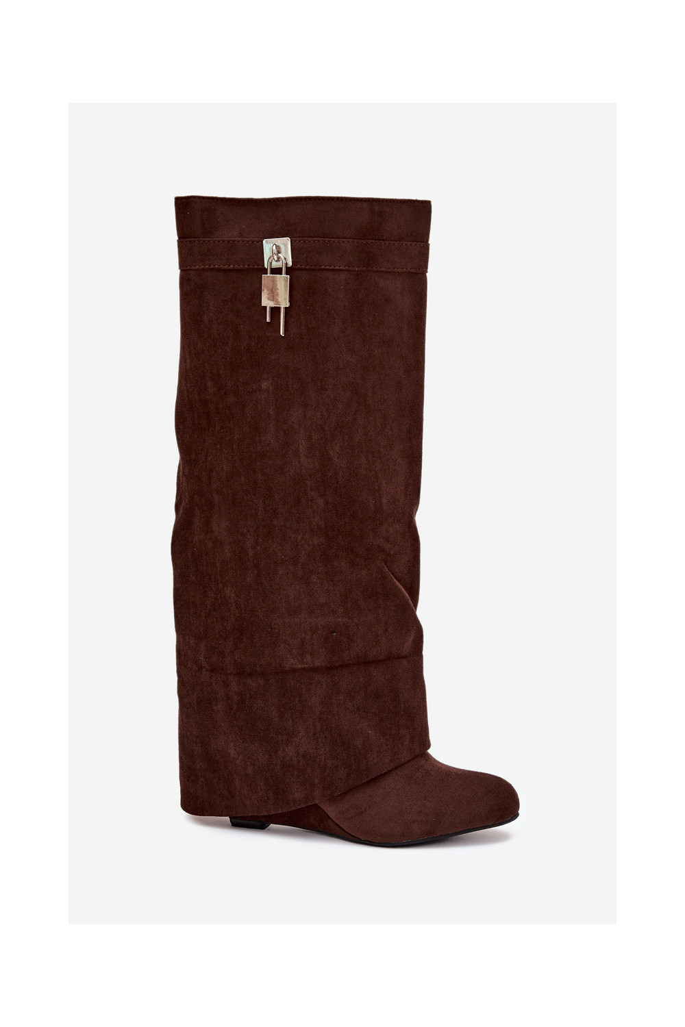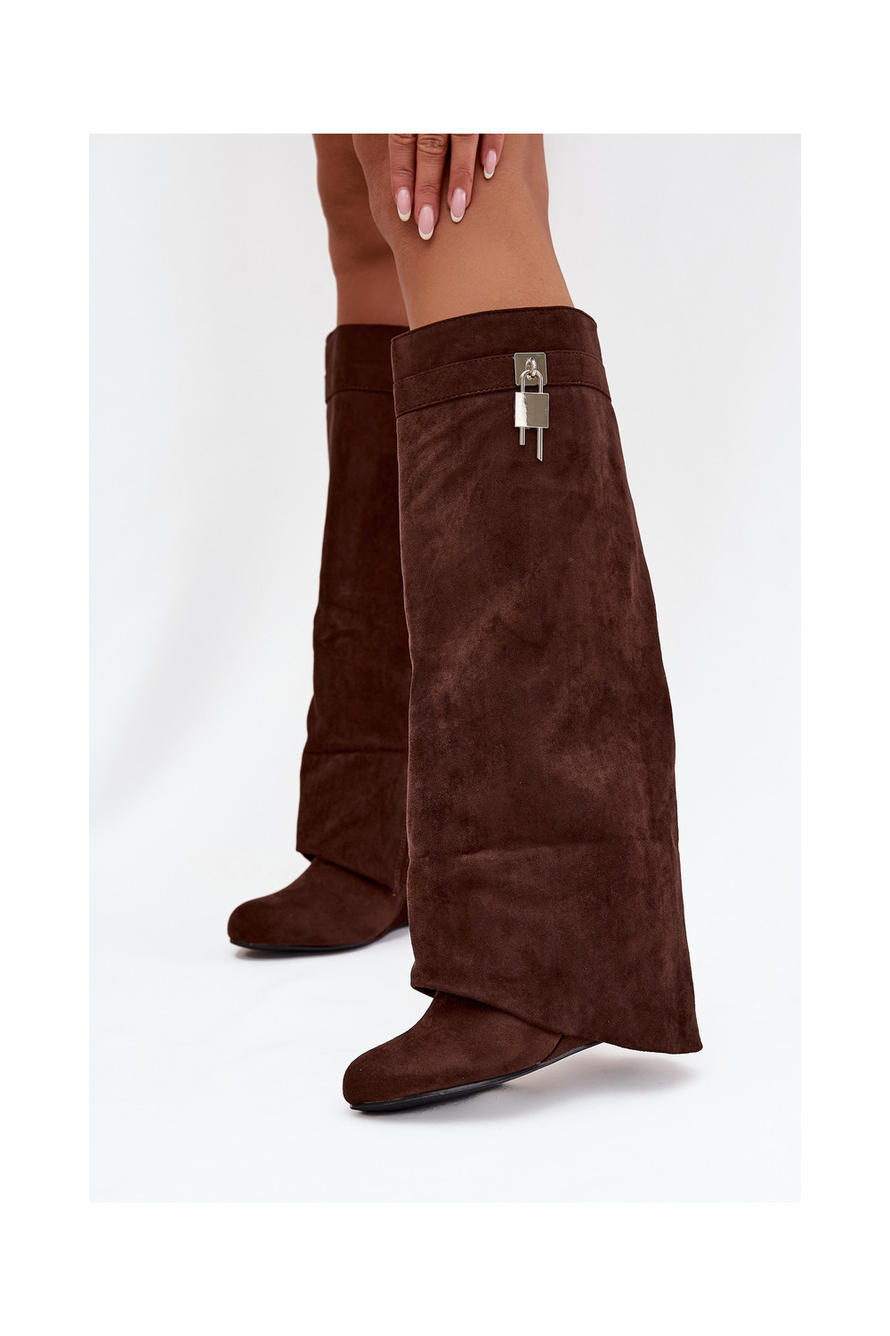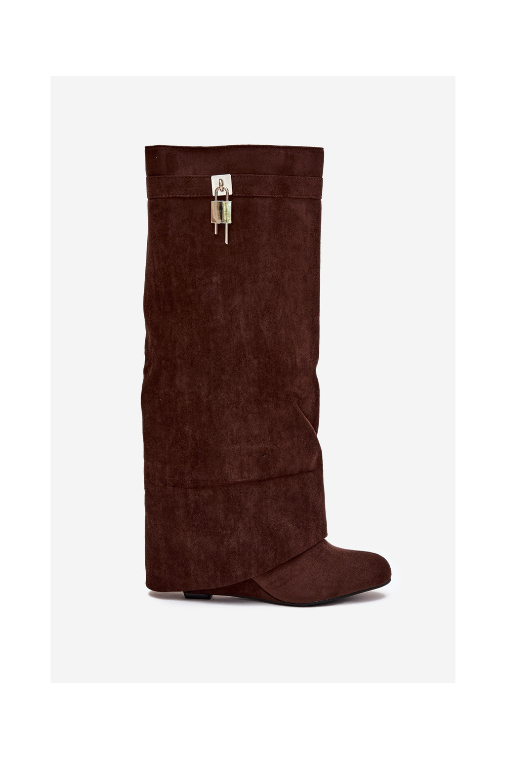 dámské dlouhé boty s popruhy I stříbrné barvym Detalem Czekoladowe Korivelle