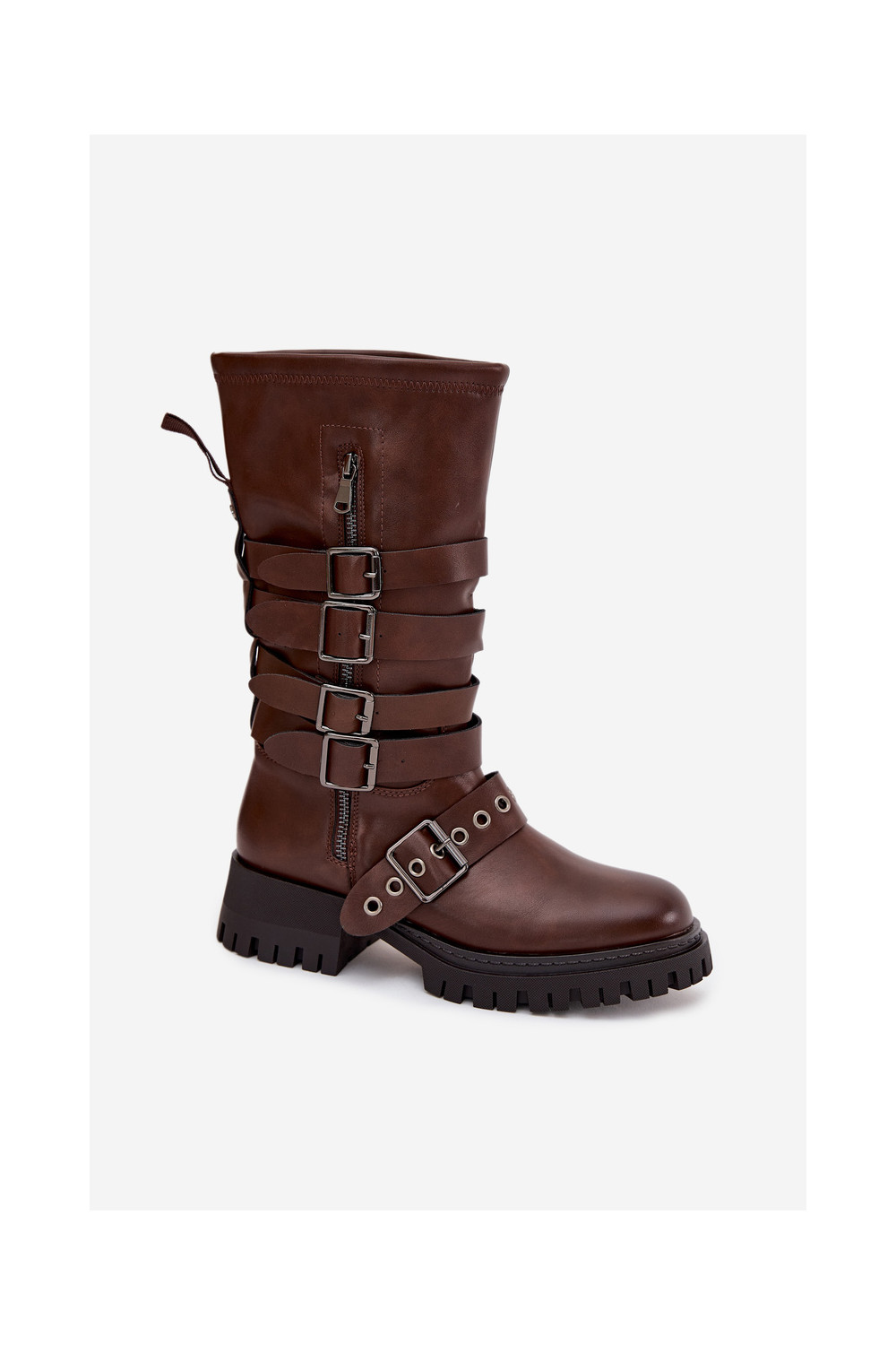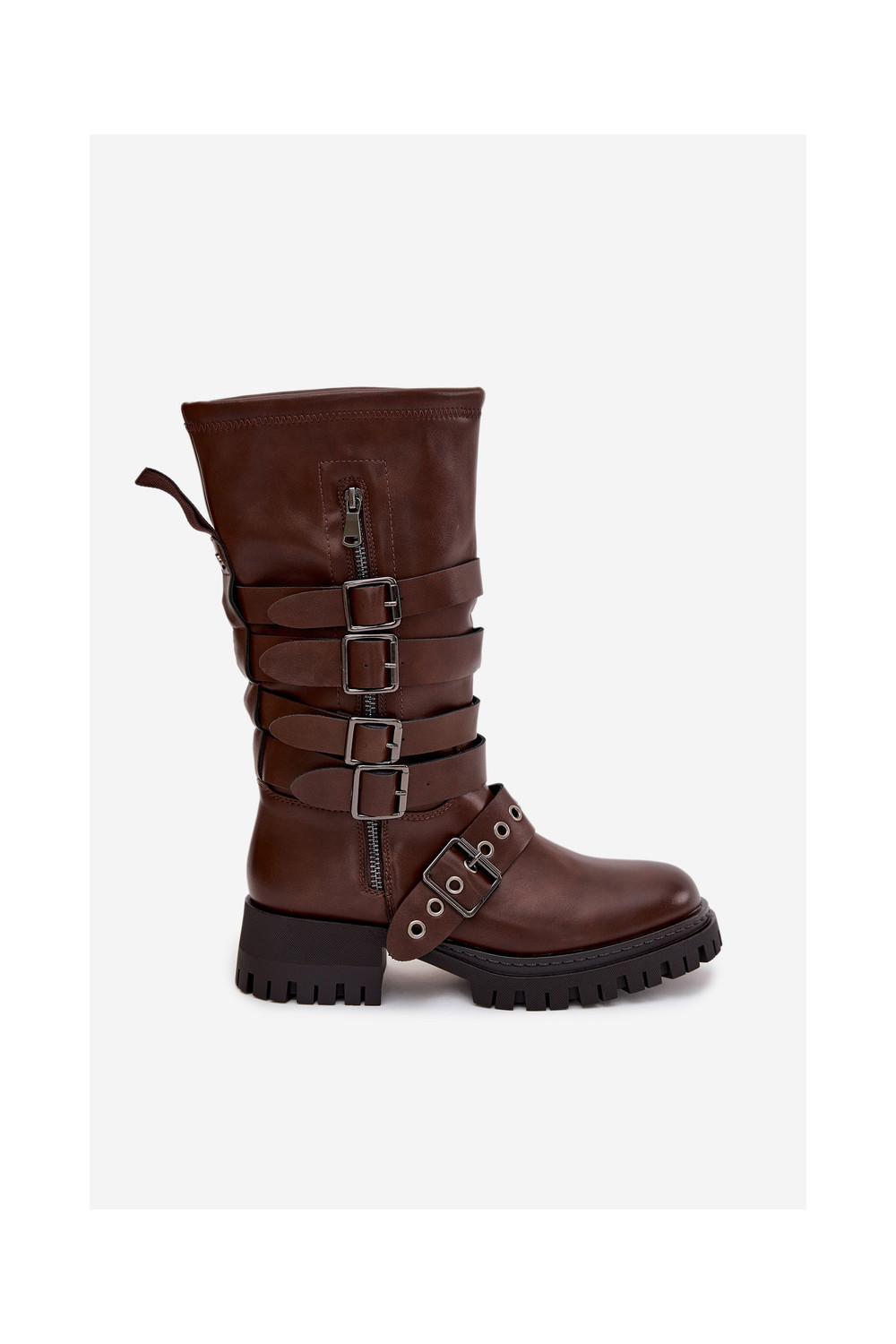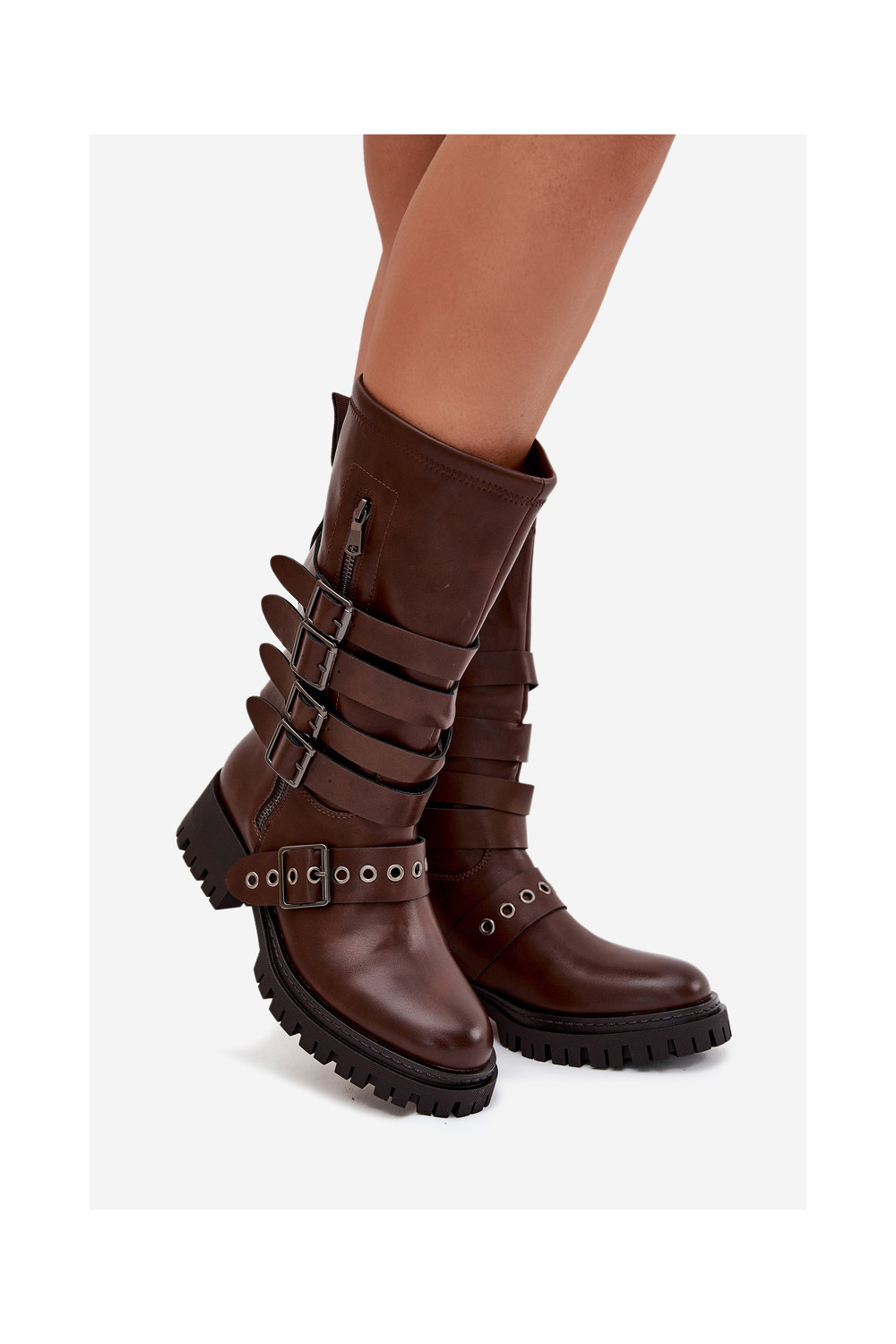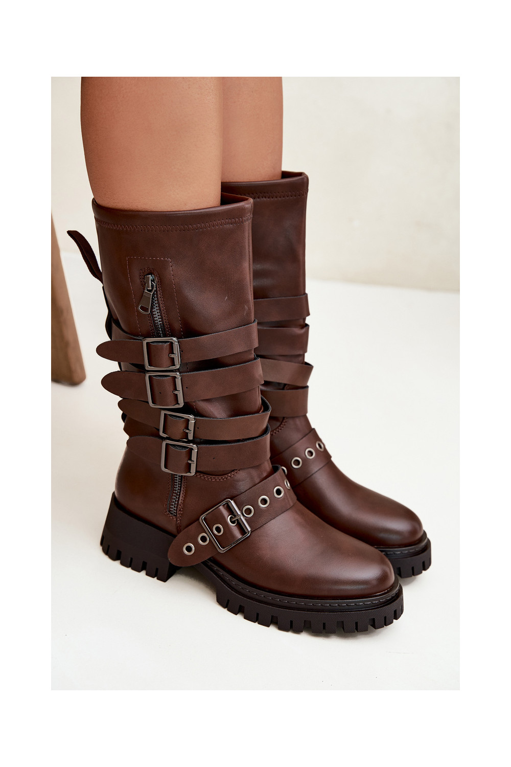 zateplené dámské dlouhé boty s pruhy I s přezkamimi hnědá Ivaline