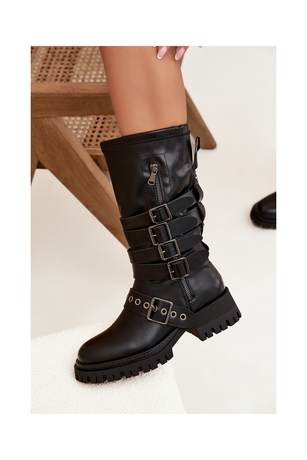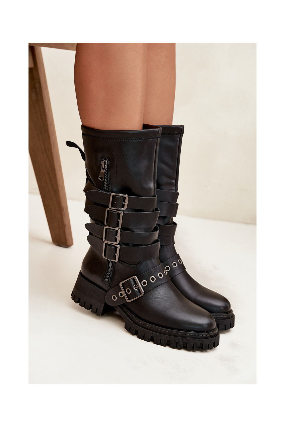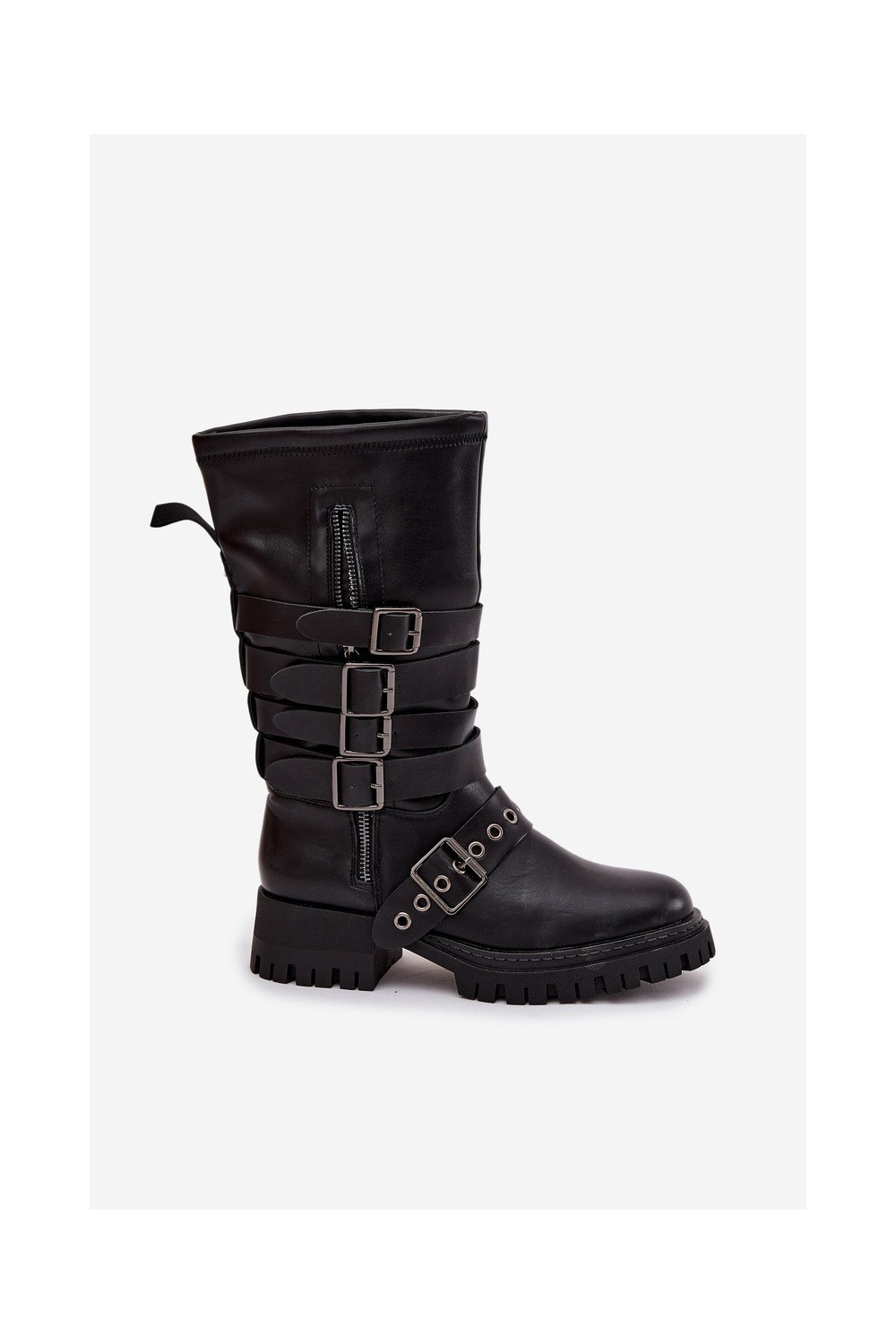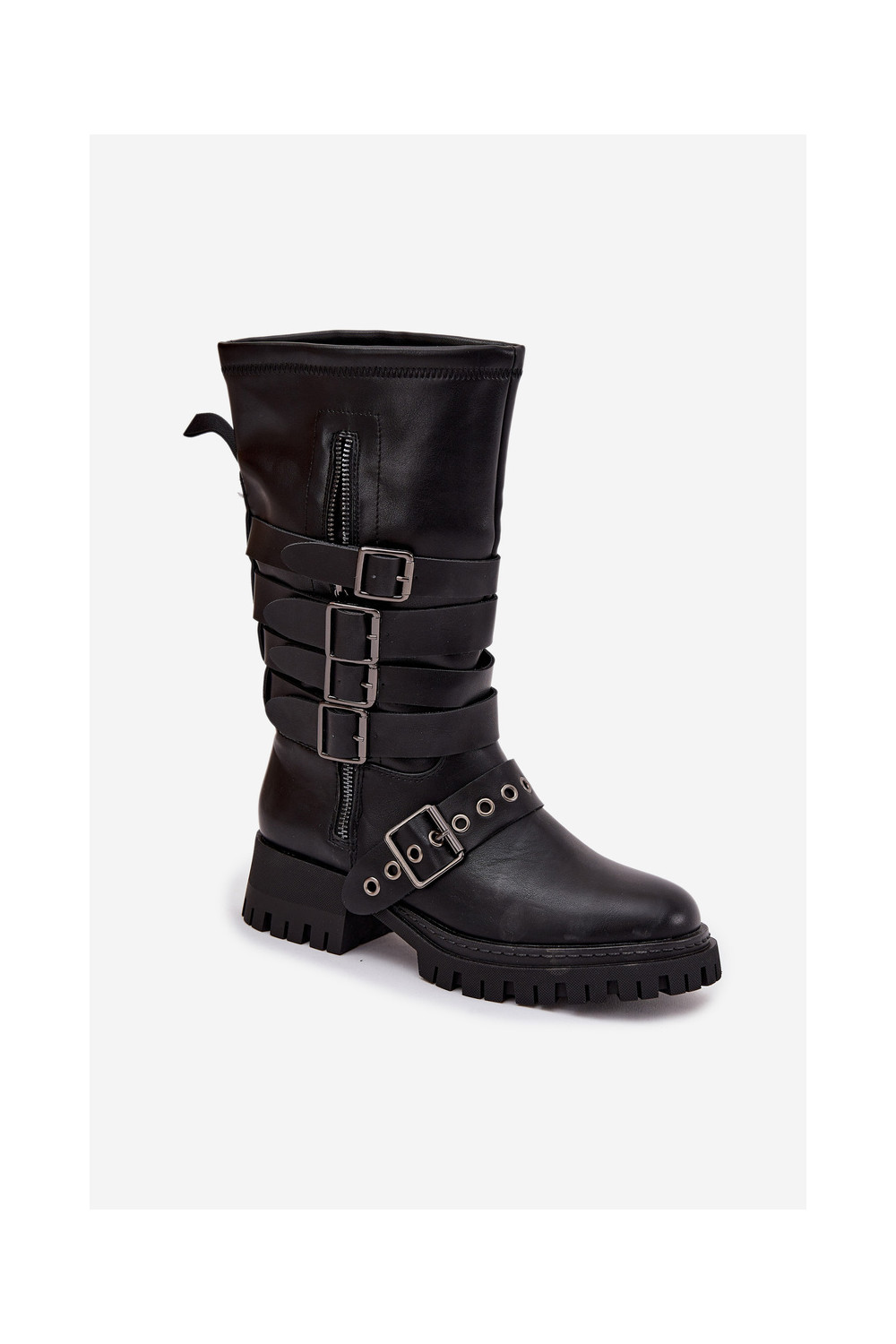 zateplené dámské dlouhé boty s pruhy I s přezkamimi Černé Ivaline