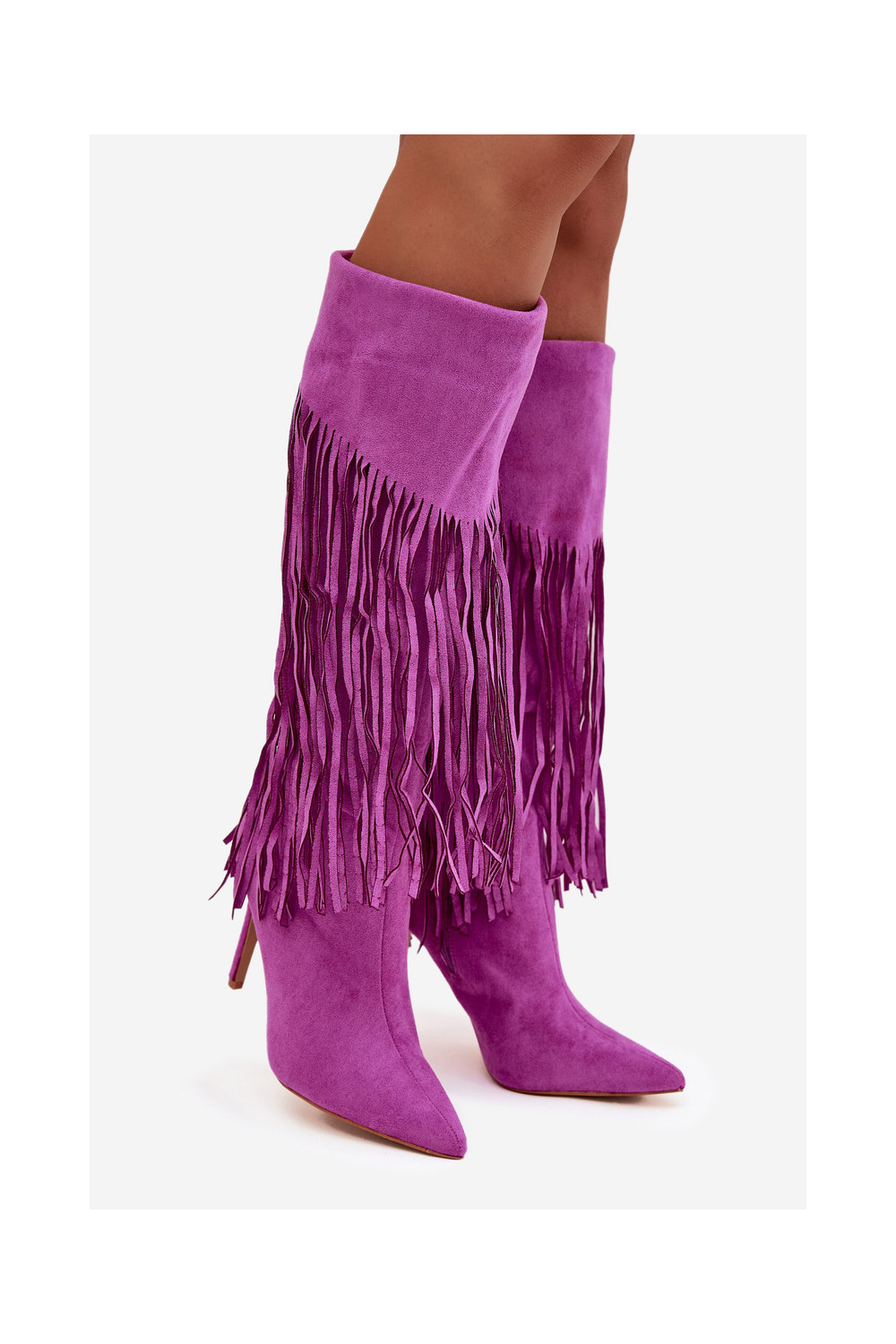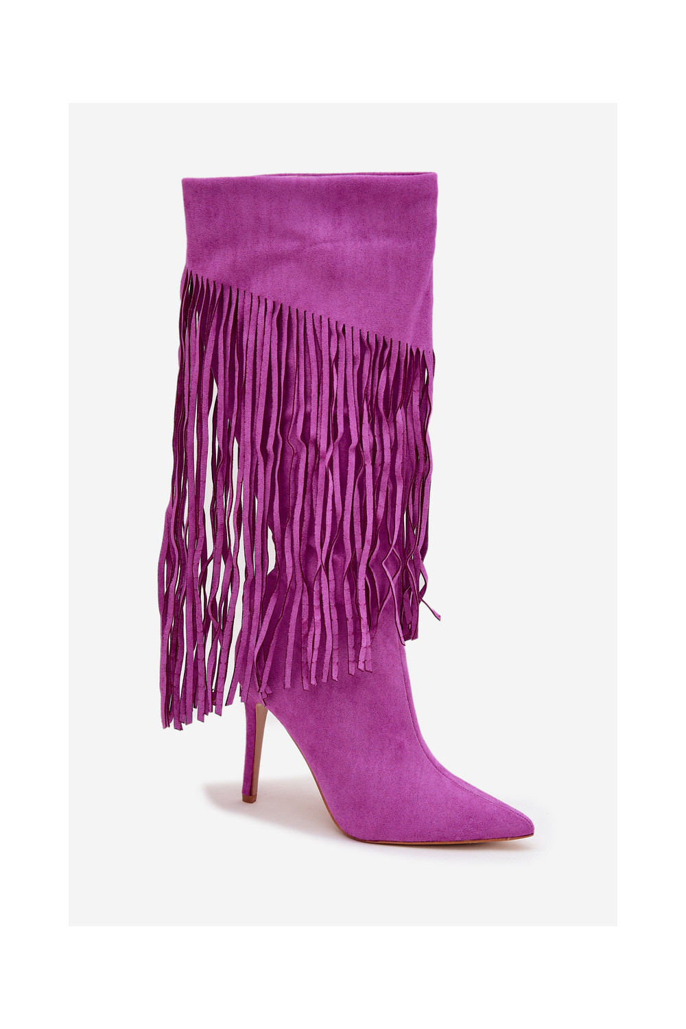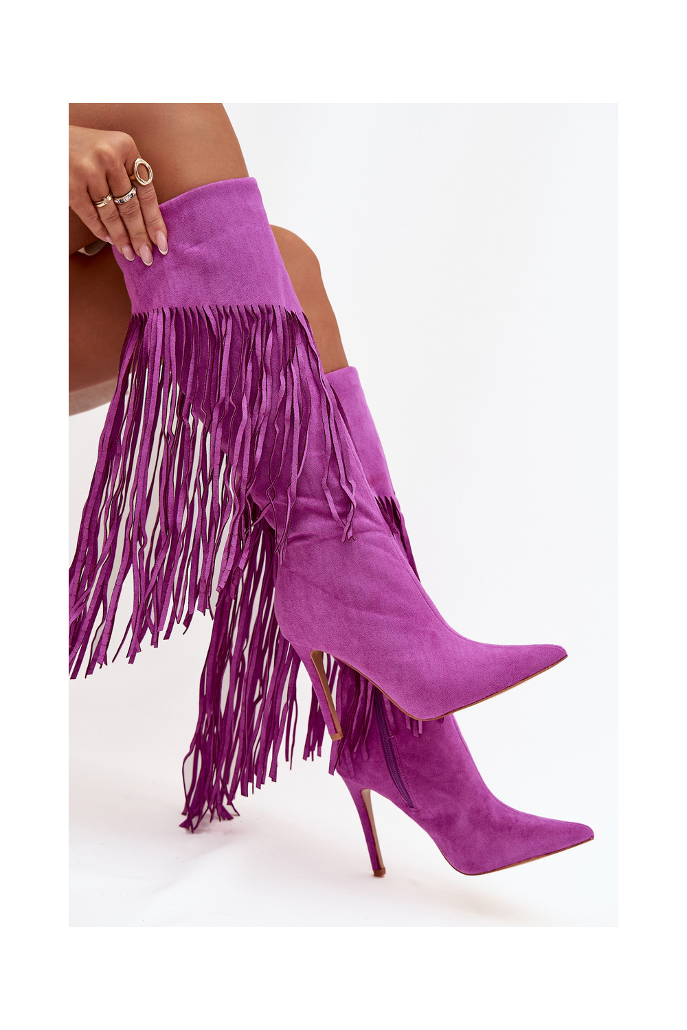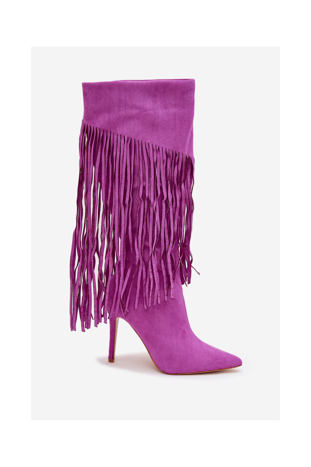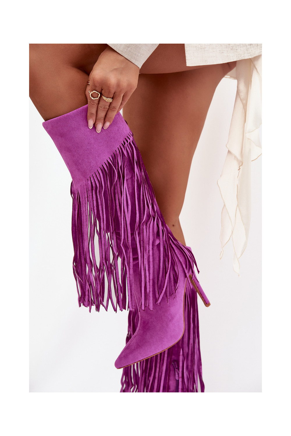 dámské dlouhé boty s tenkými podpatky se střapci Barva fialová Isalune