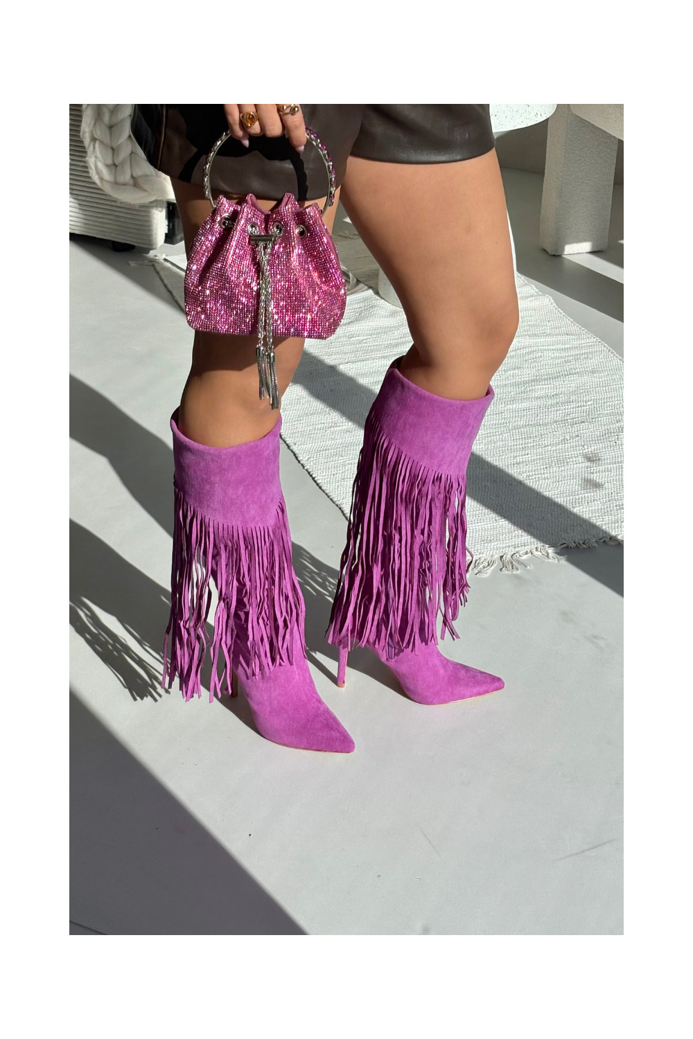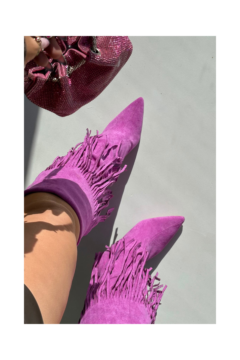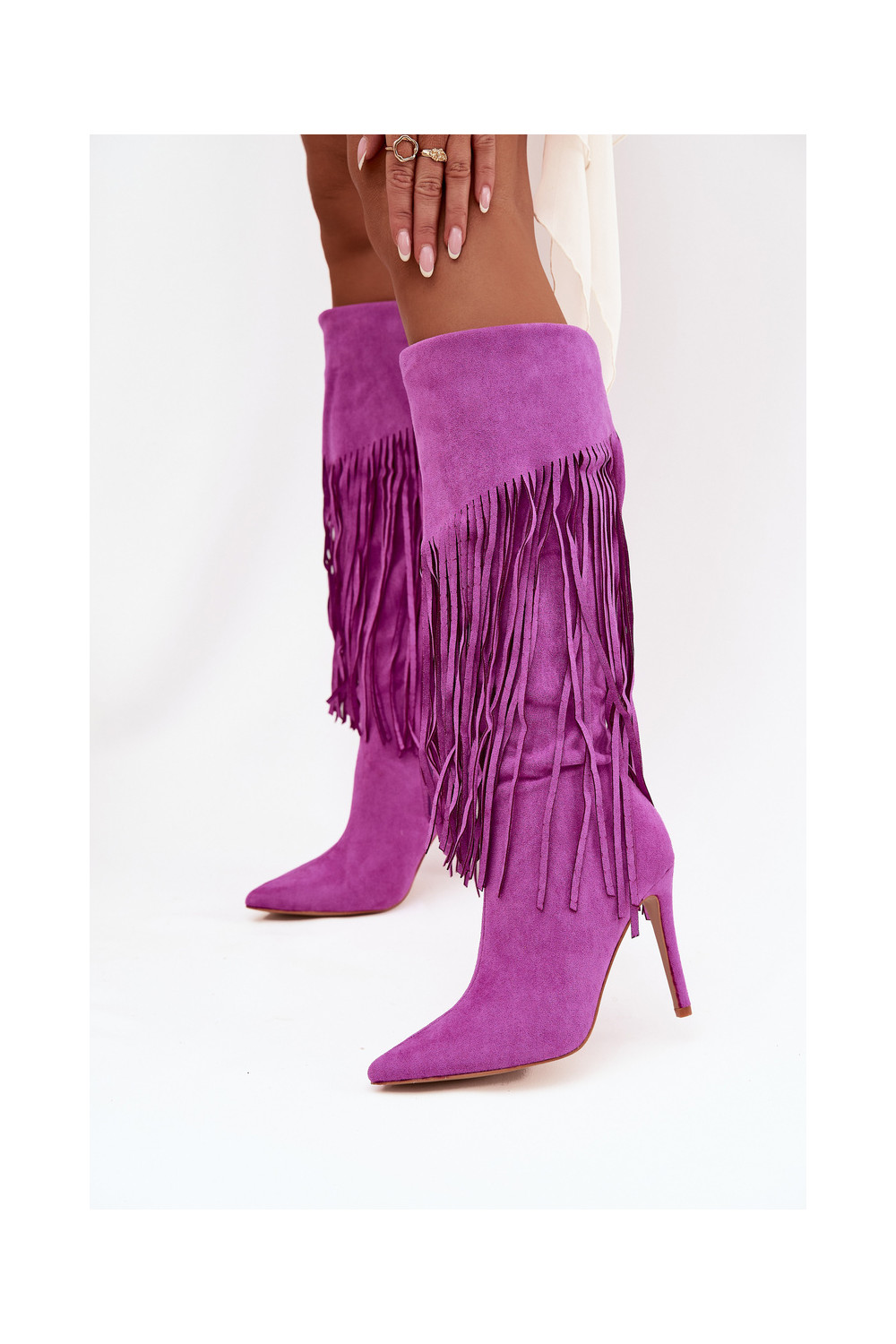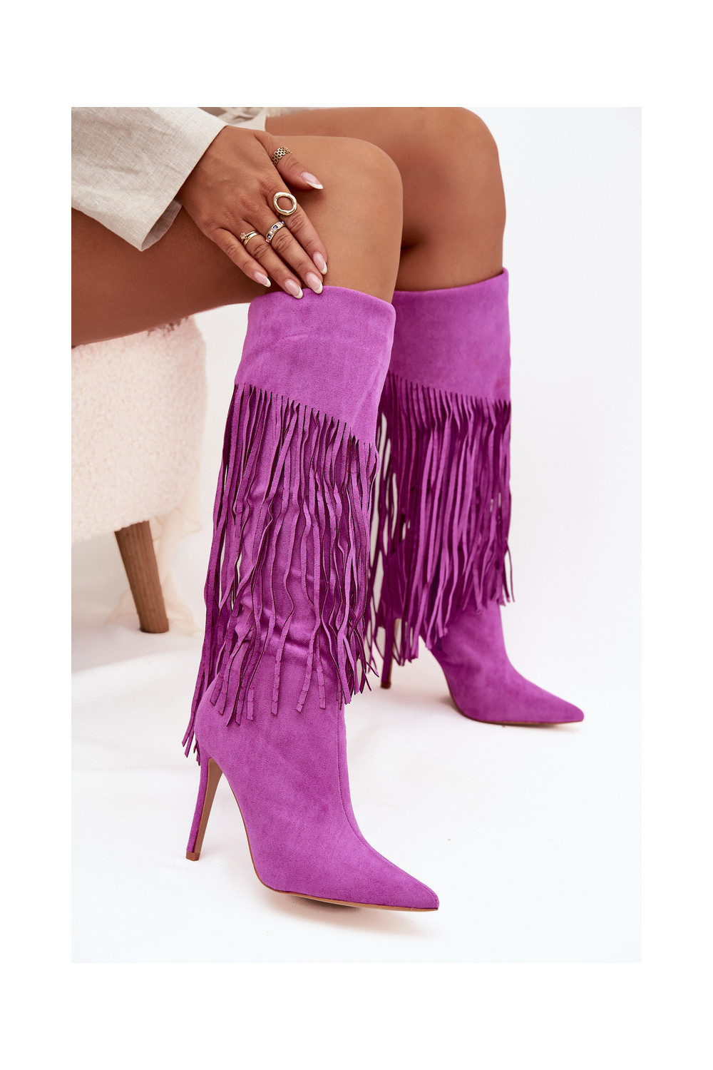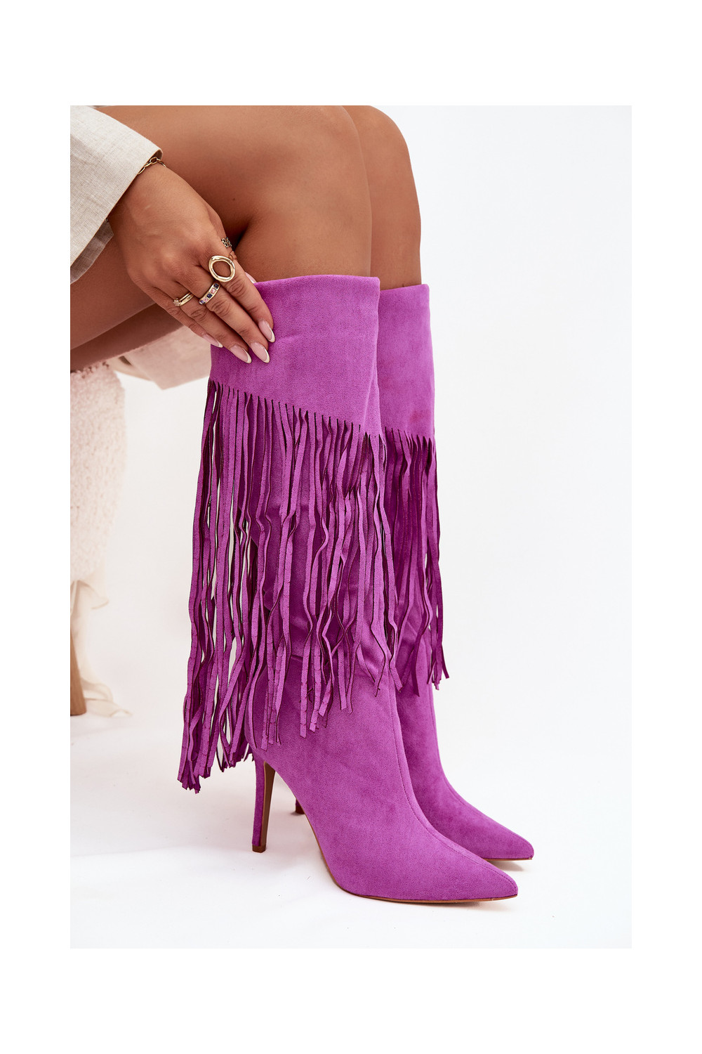 dámské dlouhé boty s tenkými podpatky se střapci Barva fialová Isalune