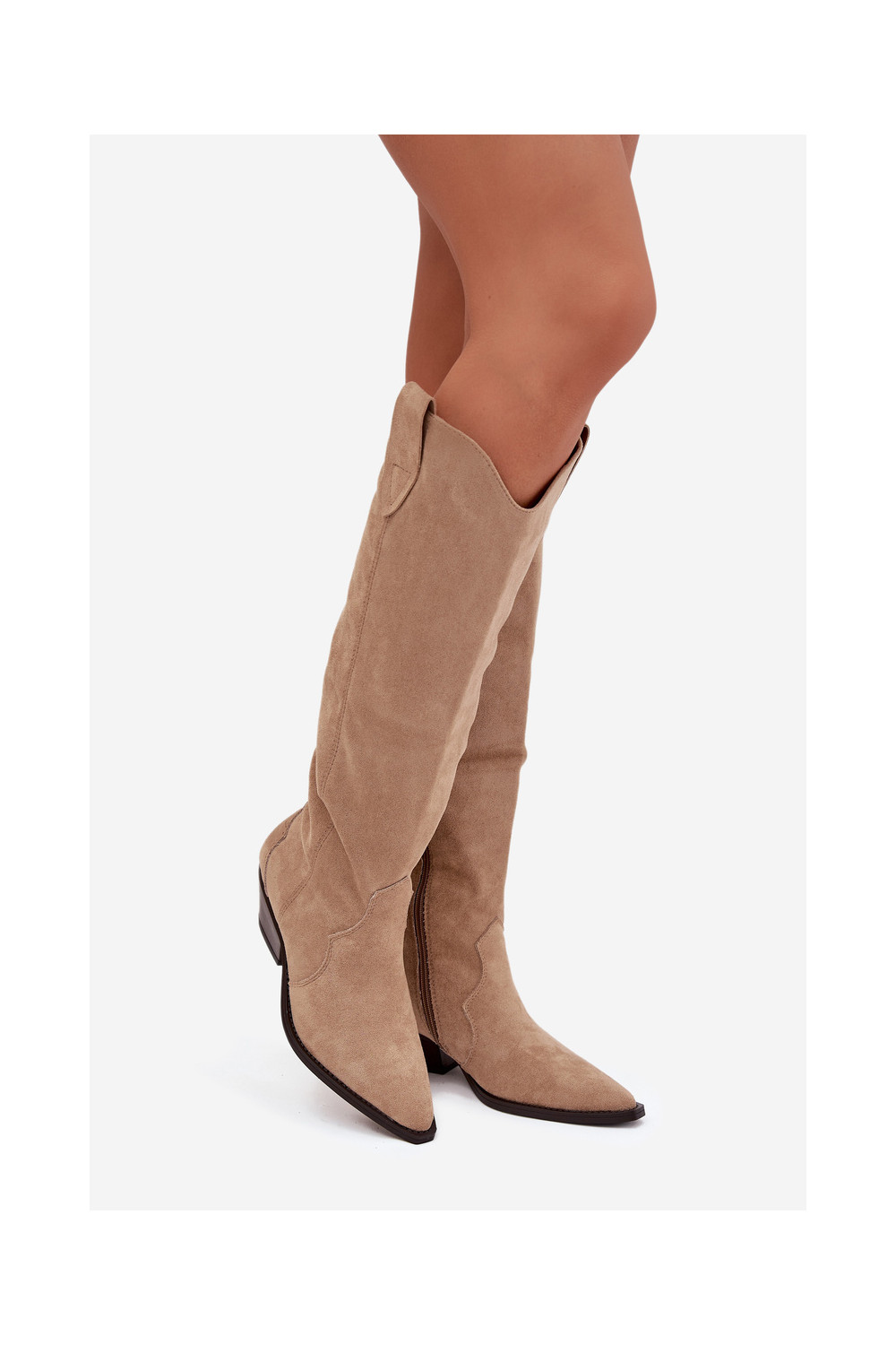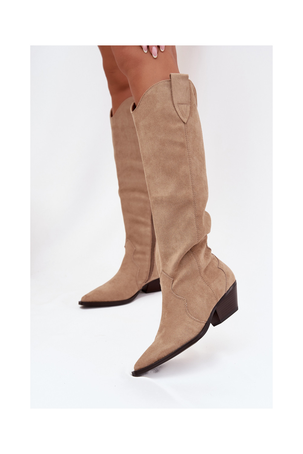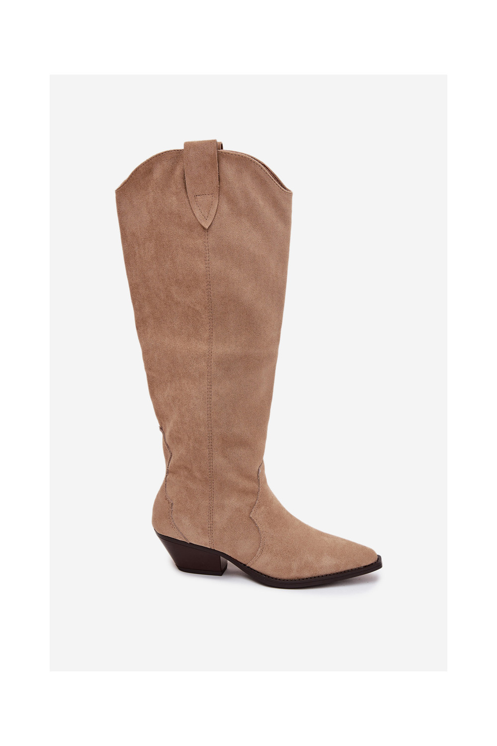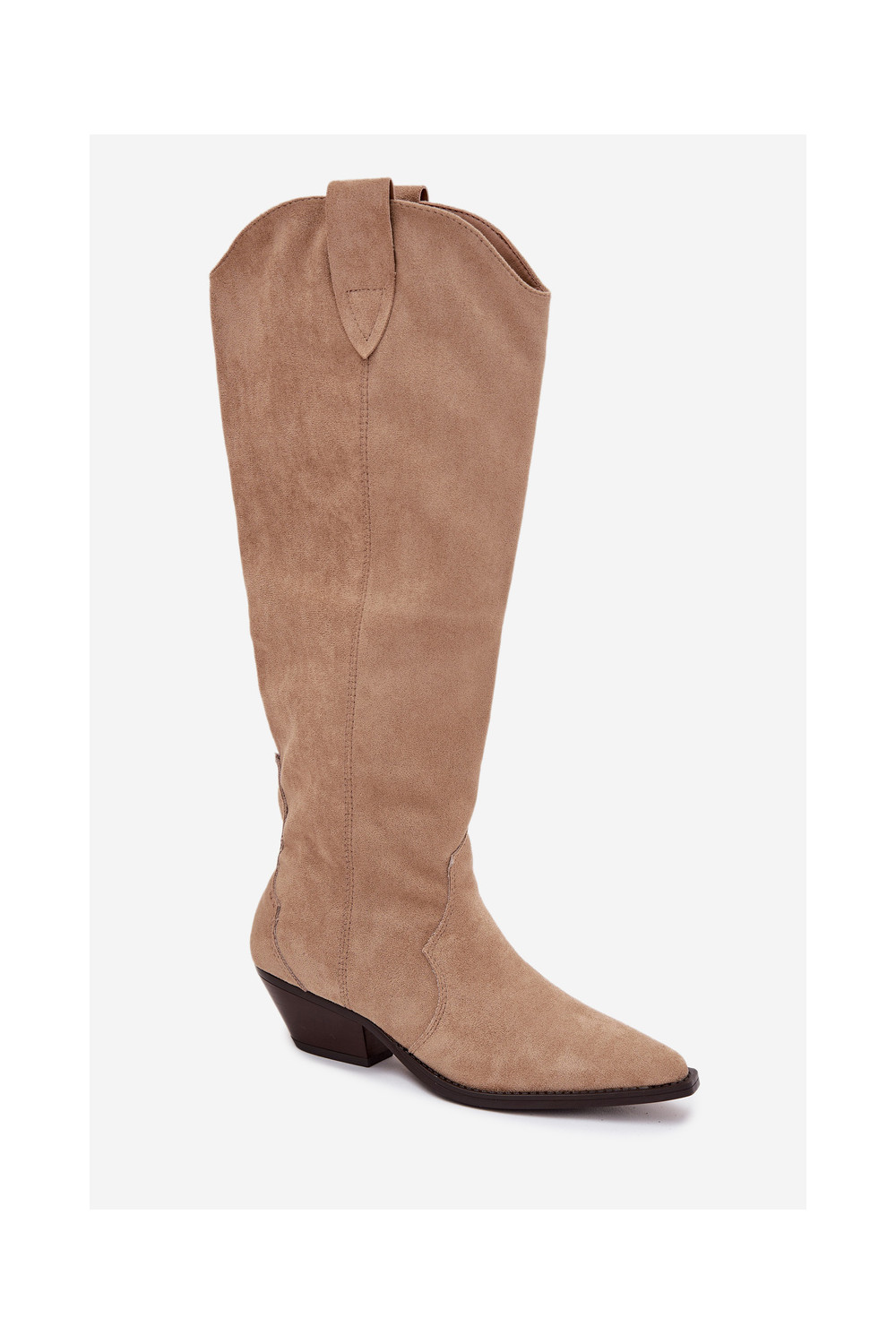 zateplené dlouhé boty kovbojský styl s podpatky Z z eko semišeu béžové Jovianne