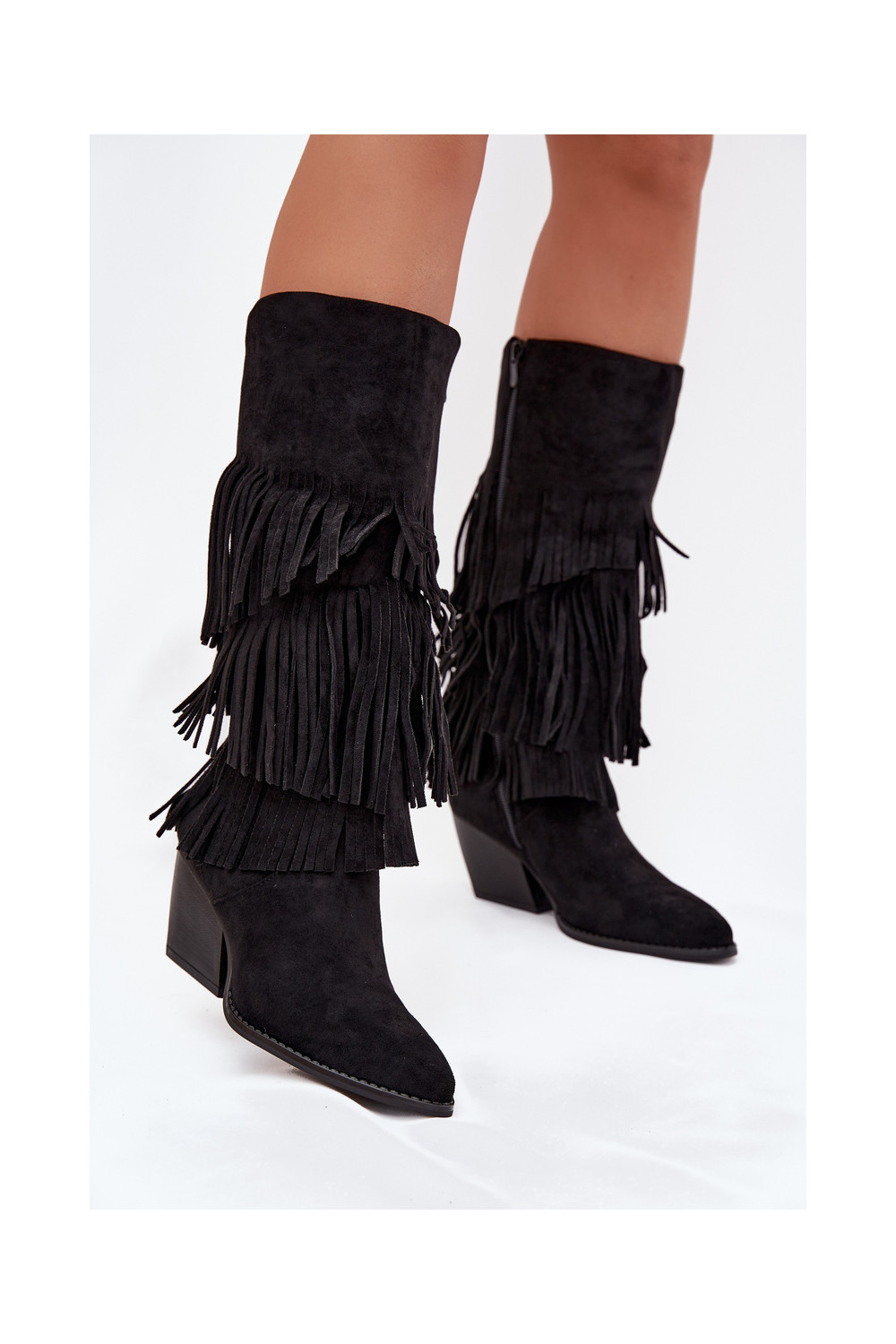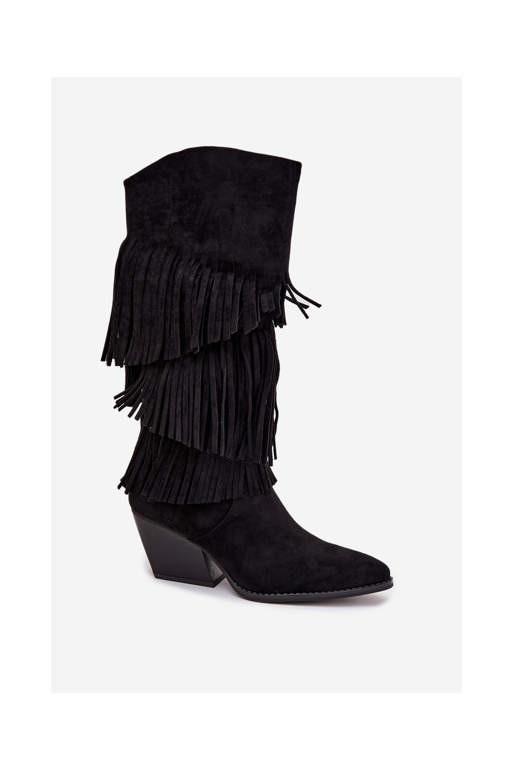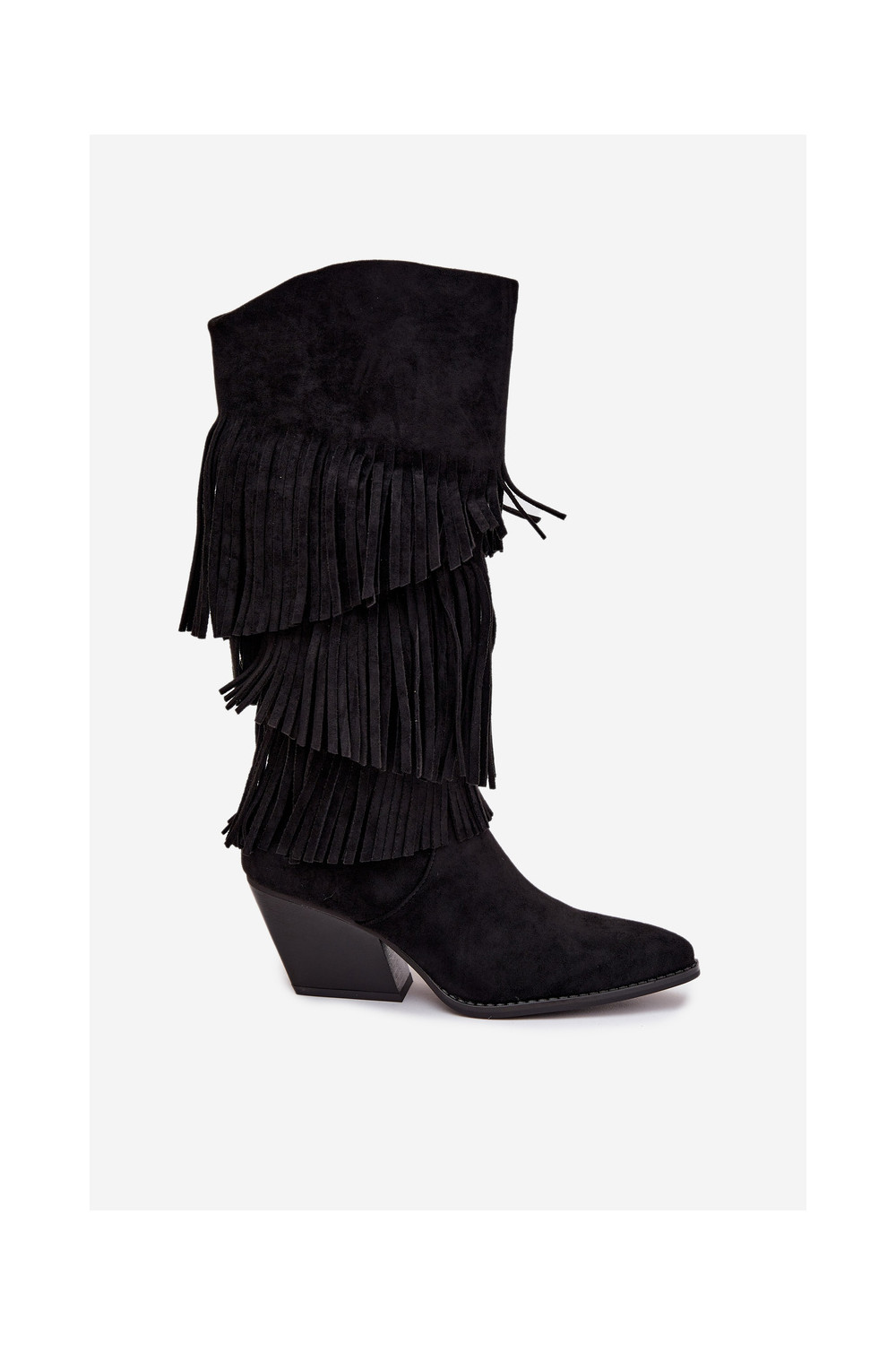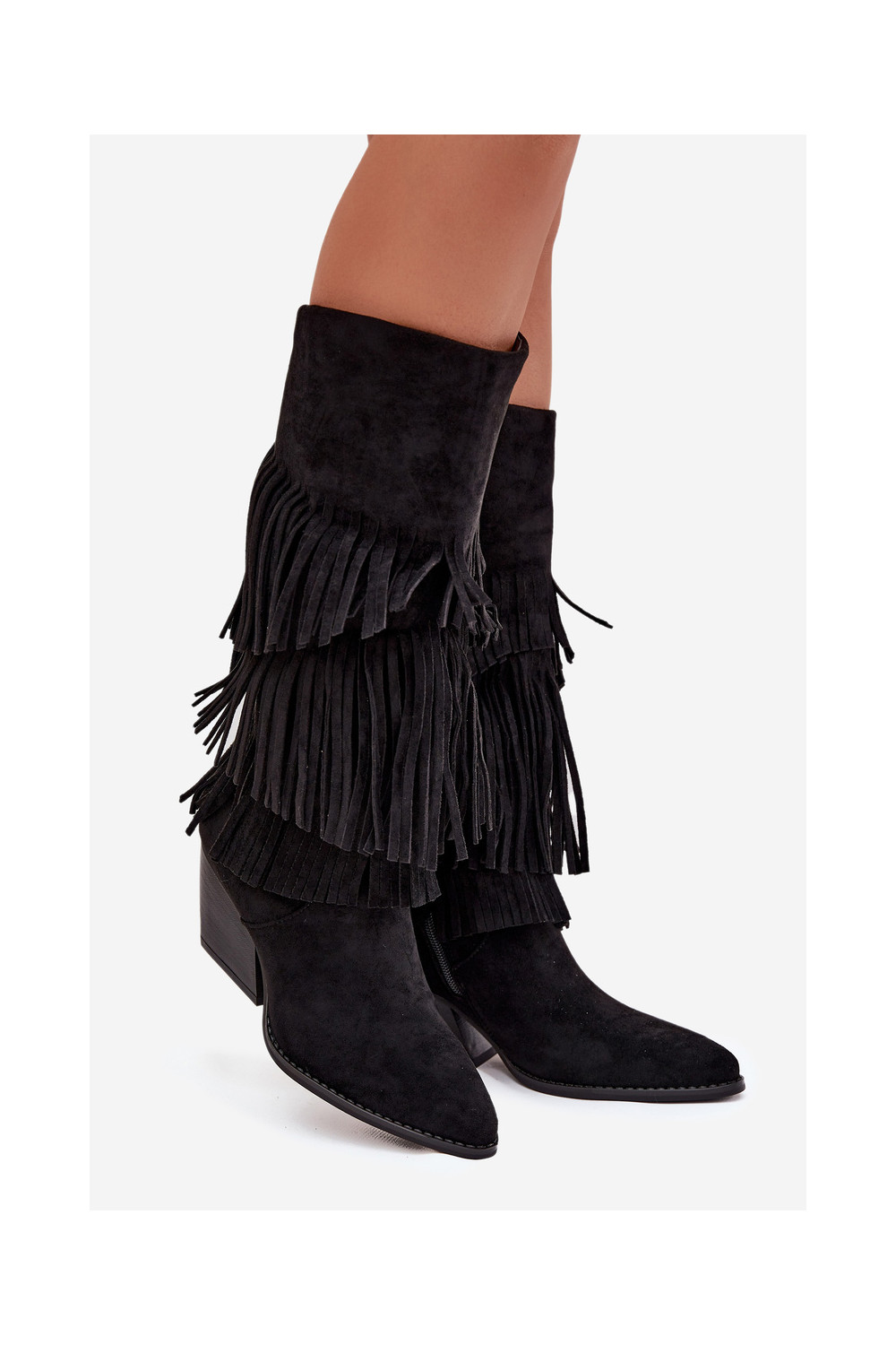 zateplené dlouhé boty kovbojský styl se střapci Černé Brivina