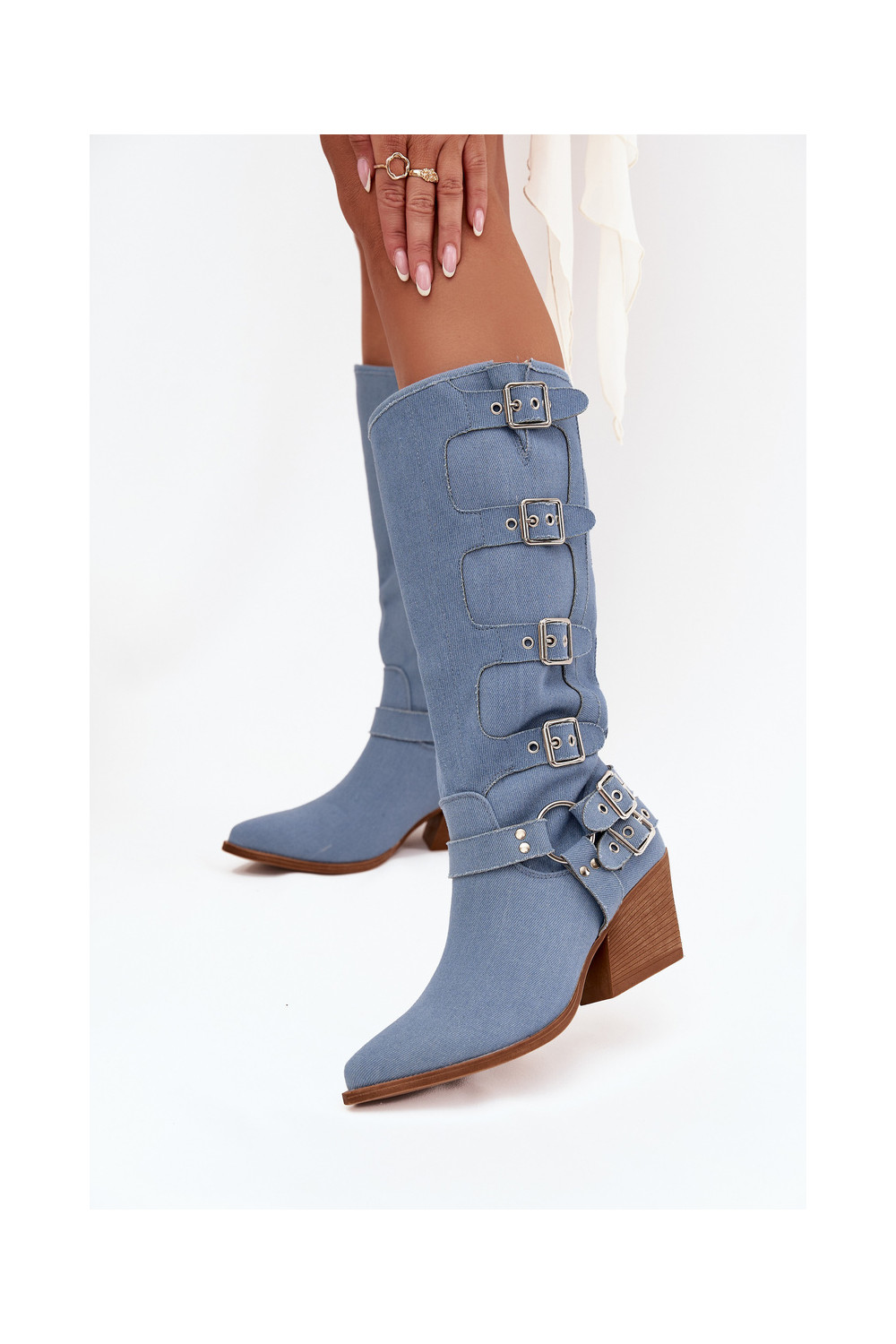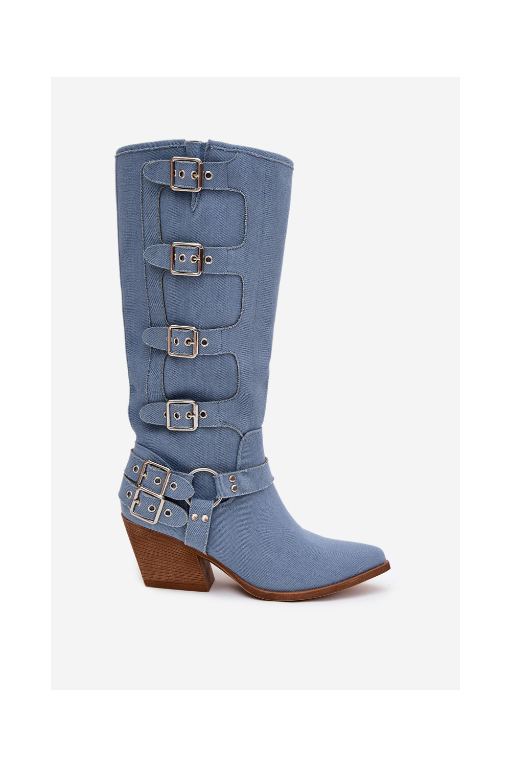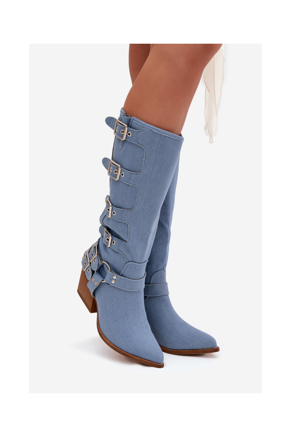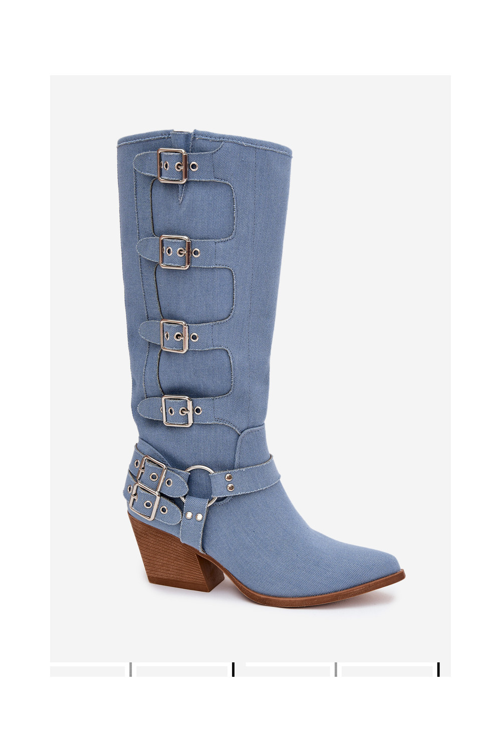 dlouhé boty kovbojský styl s podpatky s přezkami Džínový materiál Fivelle