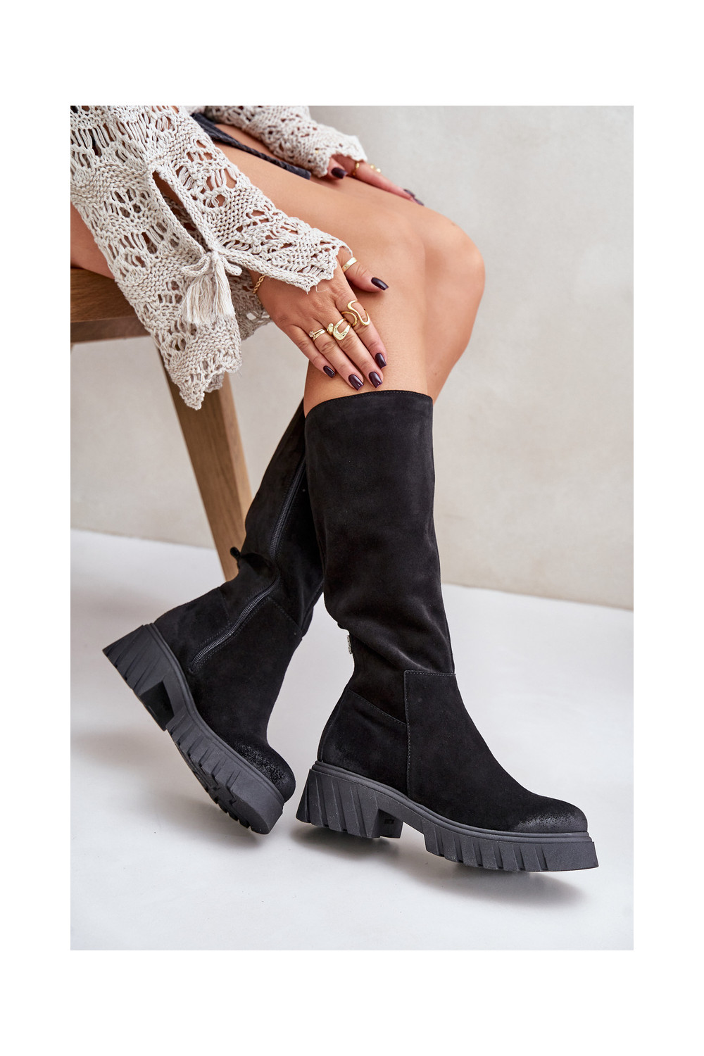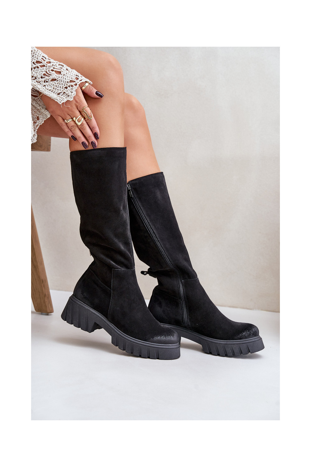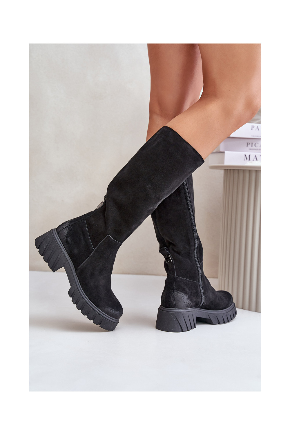 Zazoo 70145 ze semiše dlouhé boty zateplené Černé