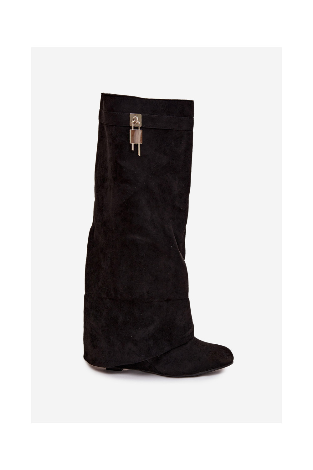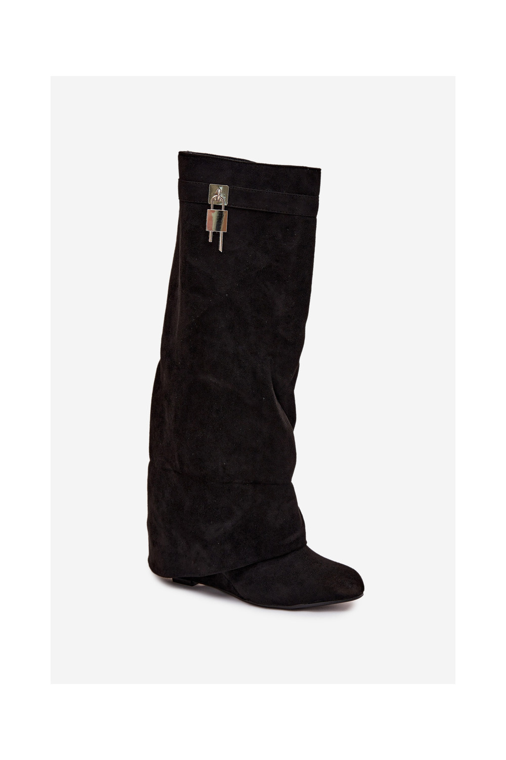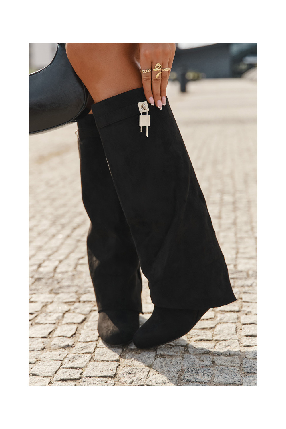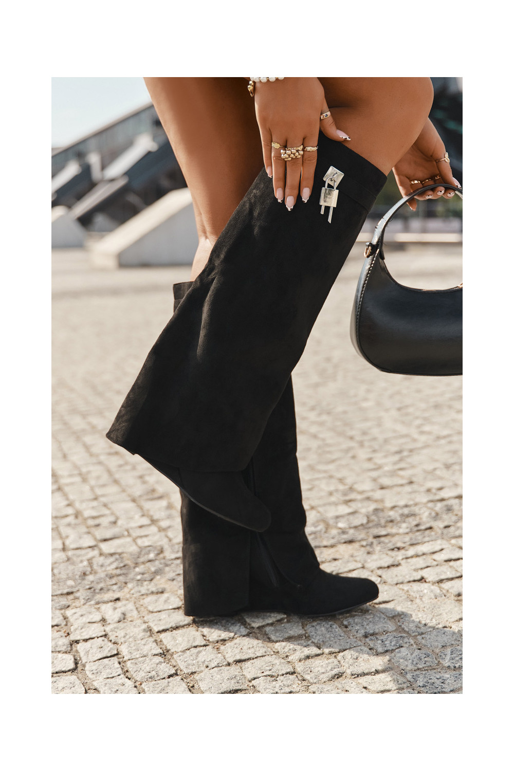dámské dlouhé boty s popruhy I stříbrné barvym Detalem Černé Korivelle