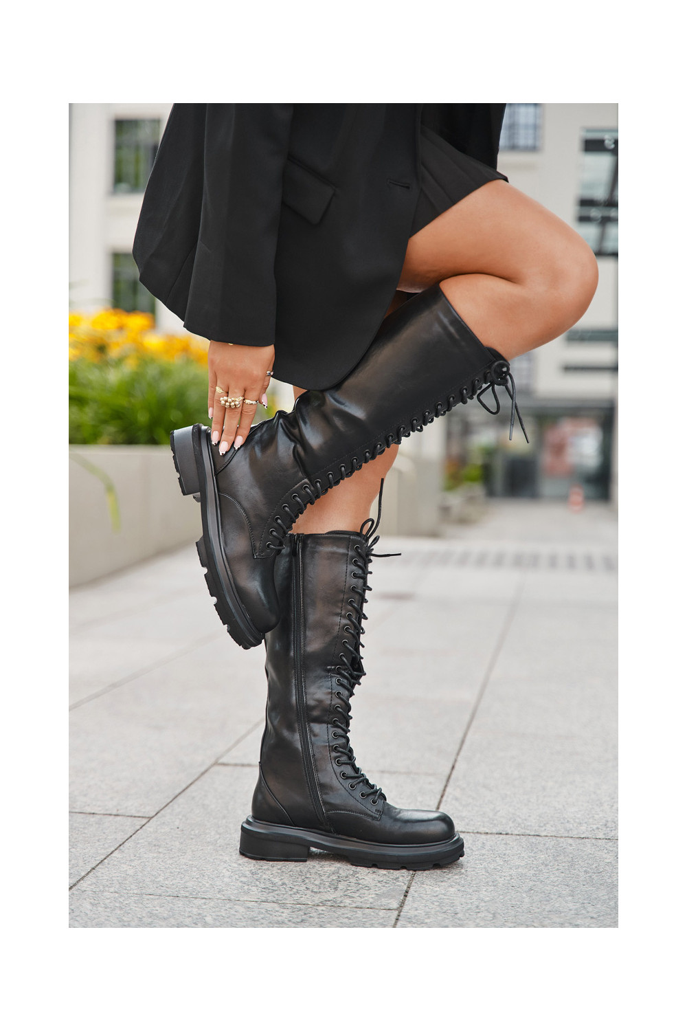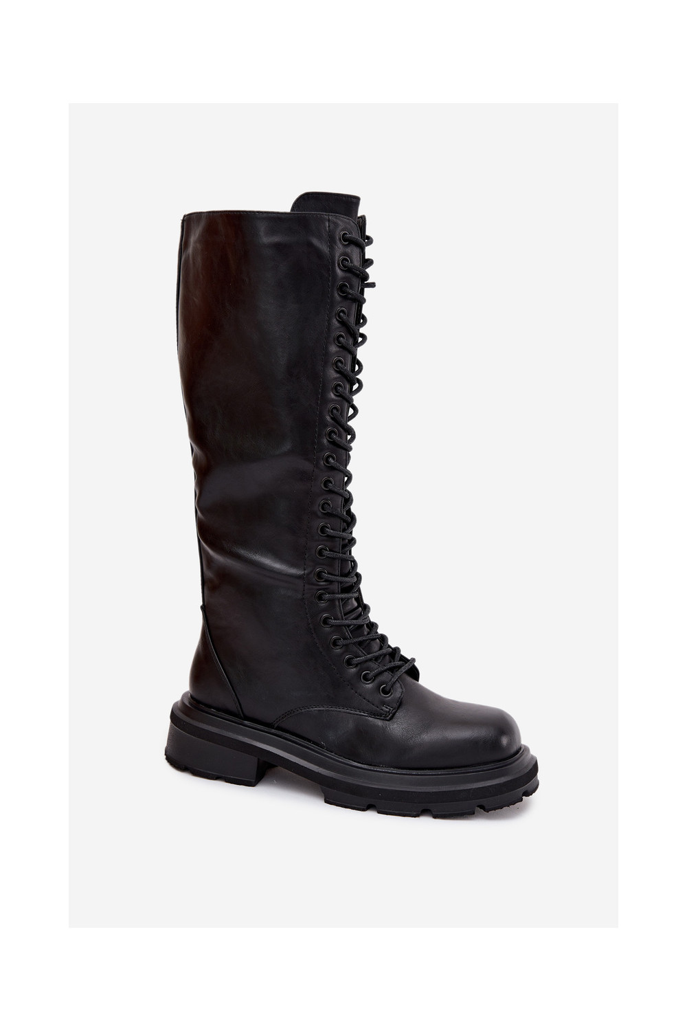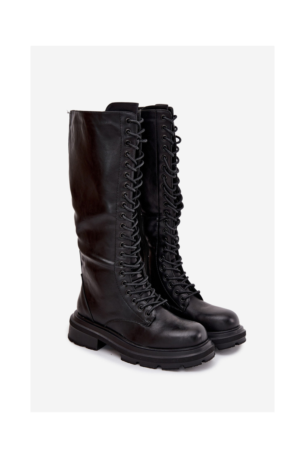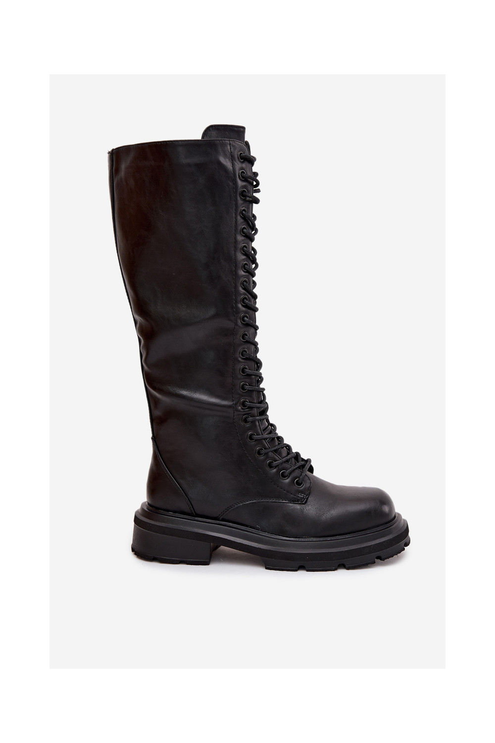 dlouhé boty Šněrovací boty zateplené Eko Černé Selvina