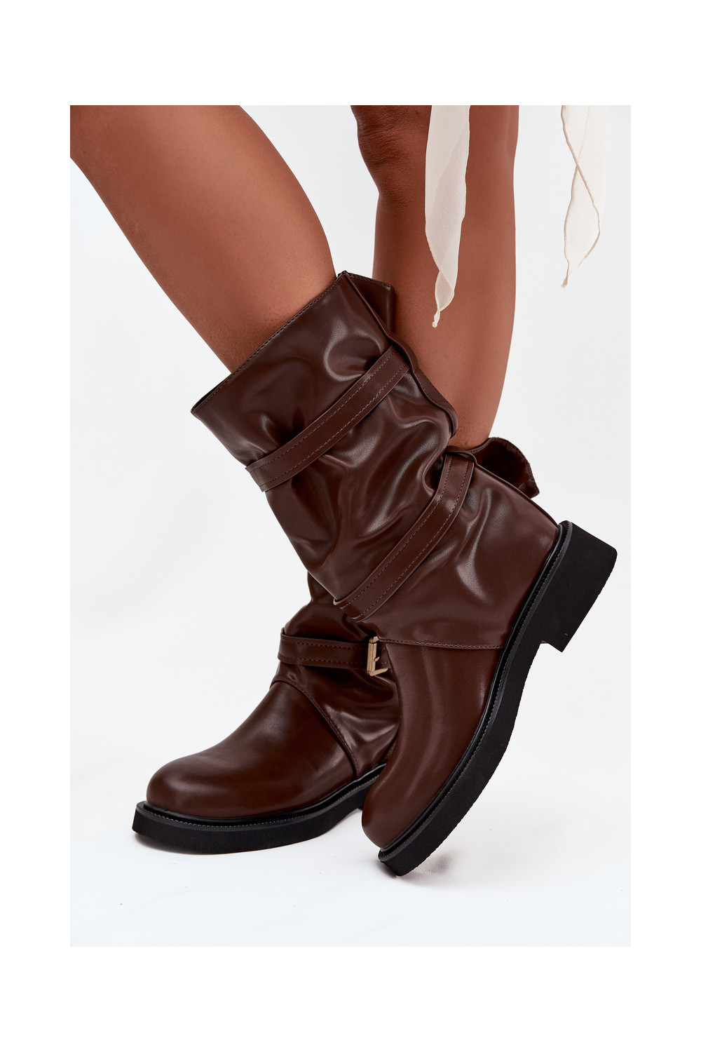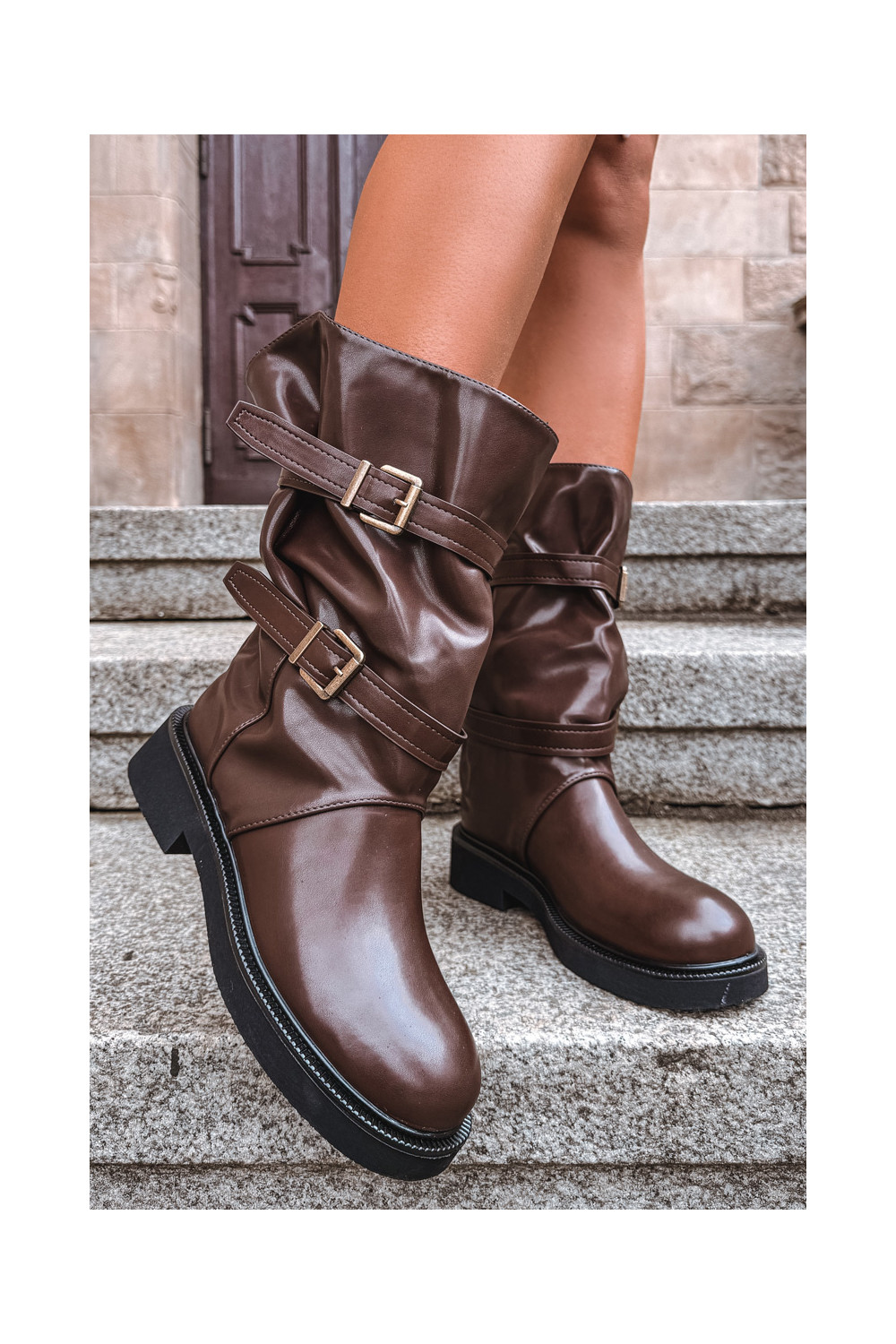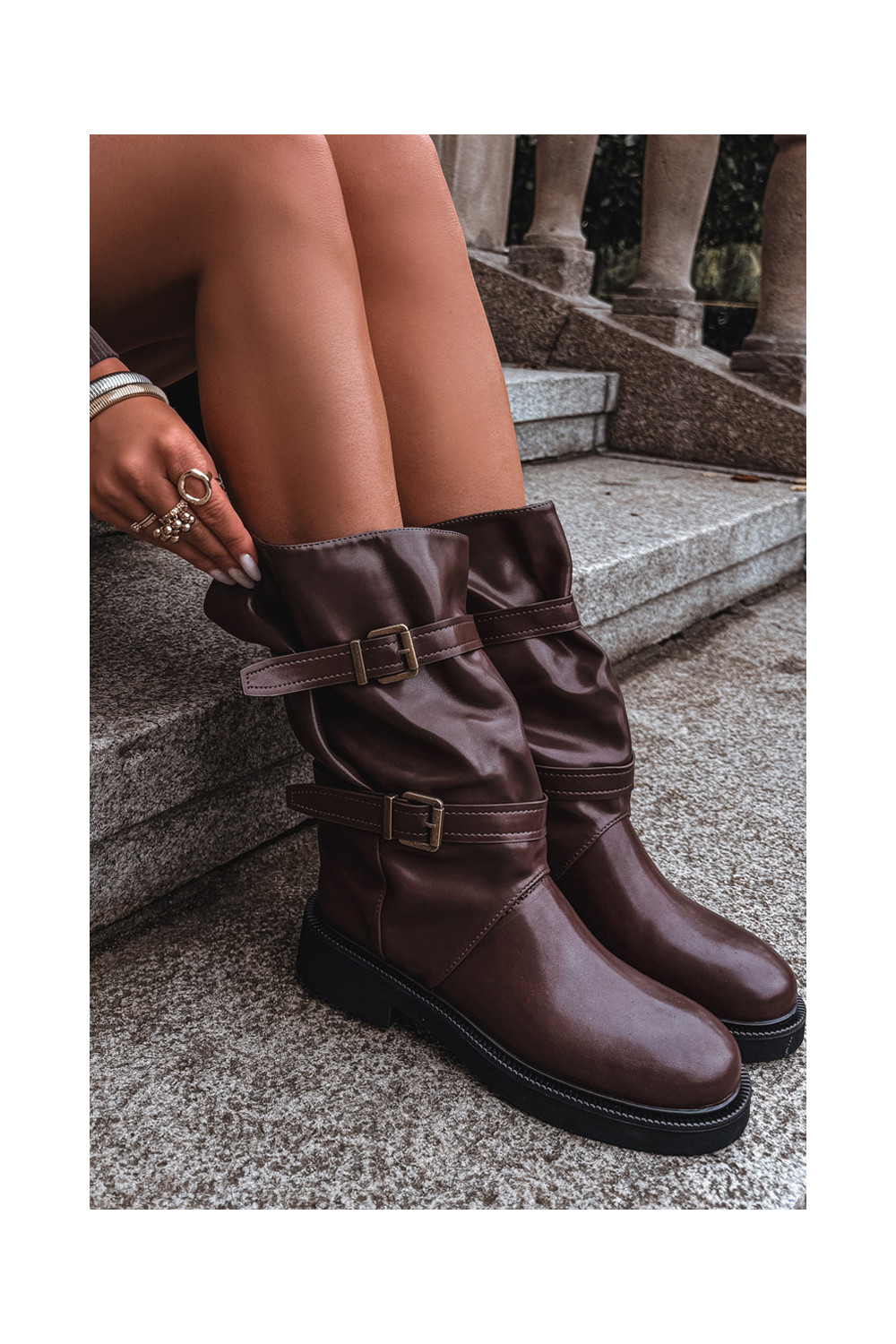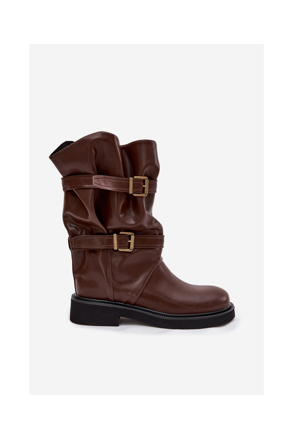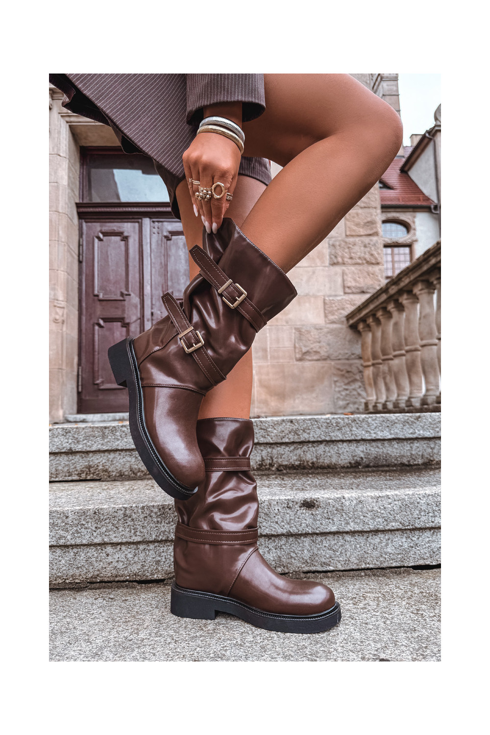 dámské dlouhé boty Do Połowy Łyski s pruhy I s přezkamimi hnědá Halvessa