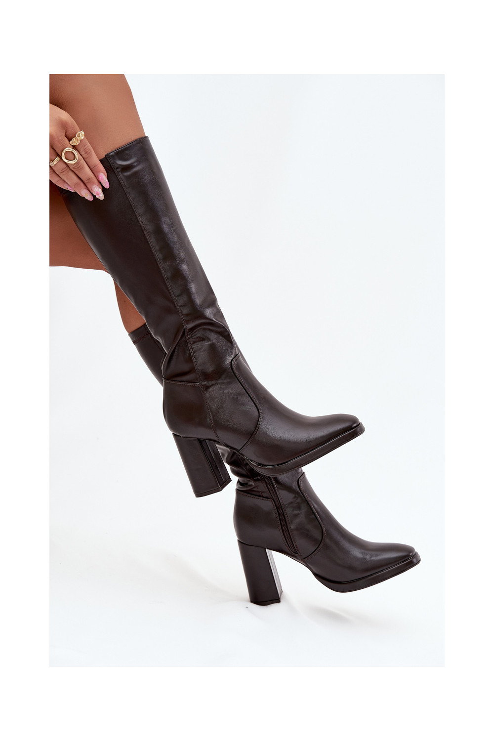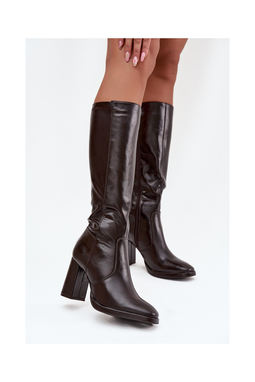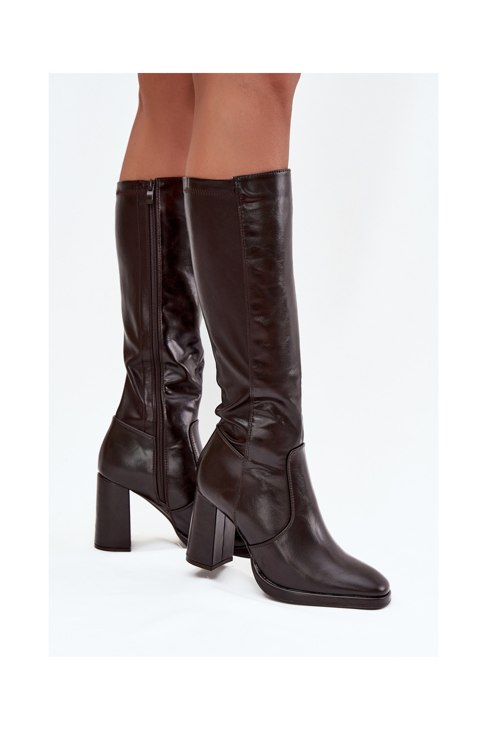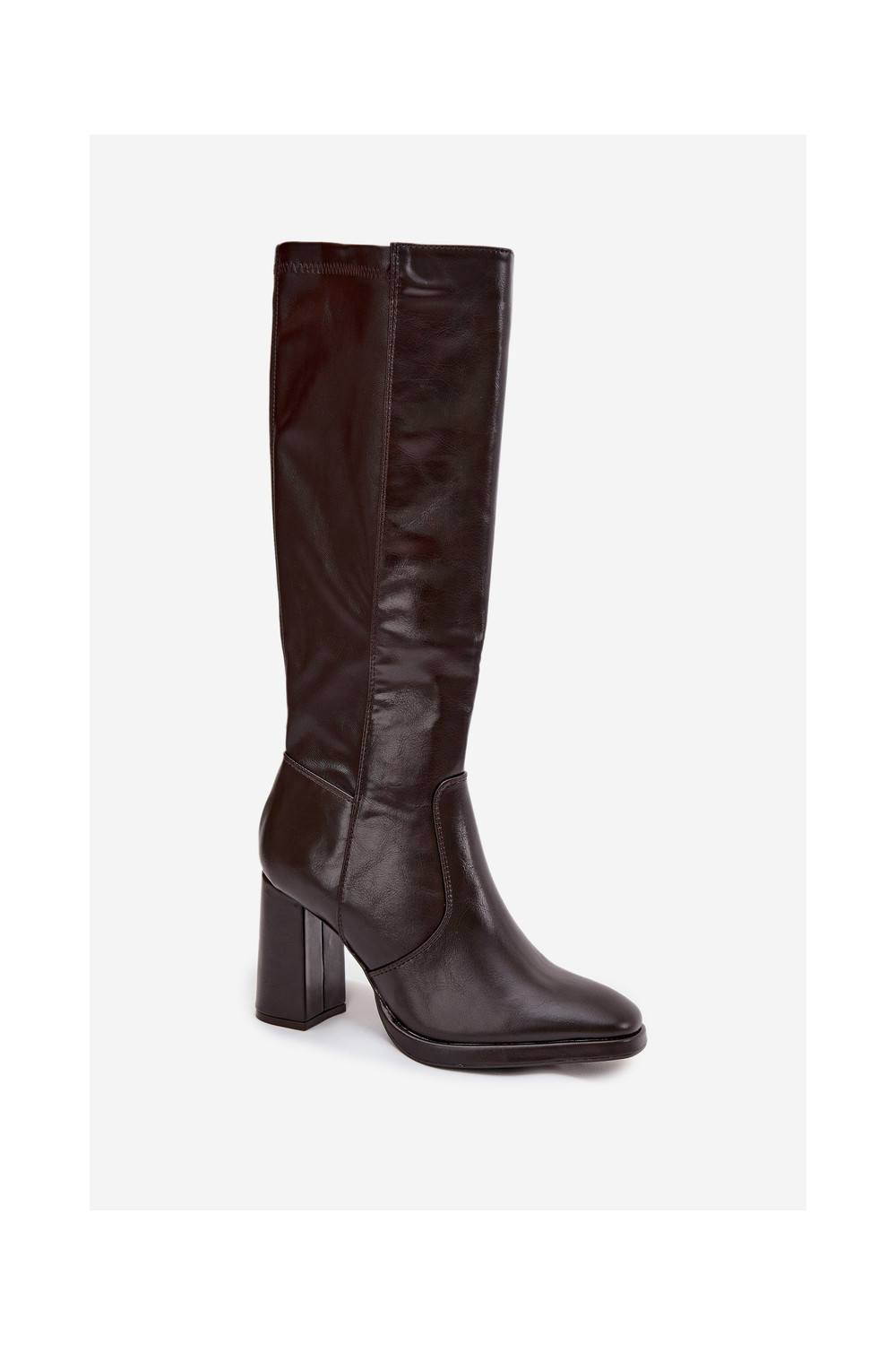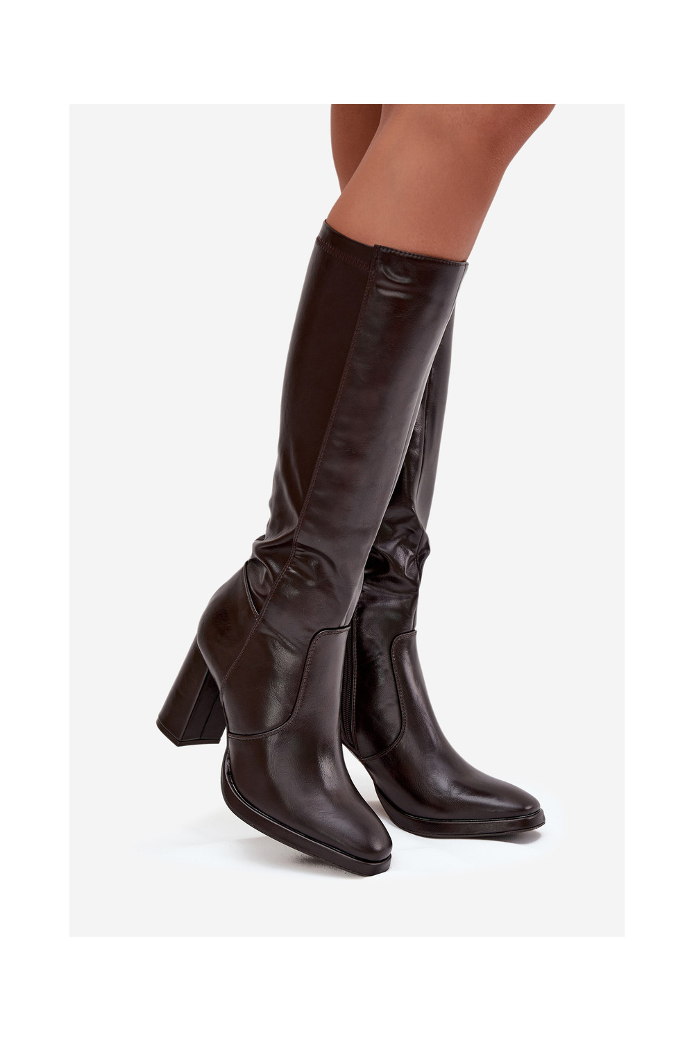 dámské dlouhé boty s podpatky z ekologické kůže zateplené vínová Lyvella