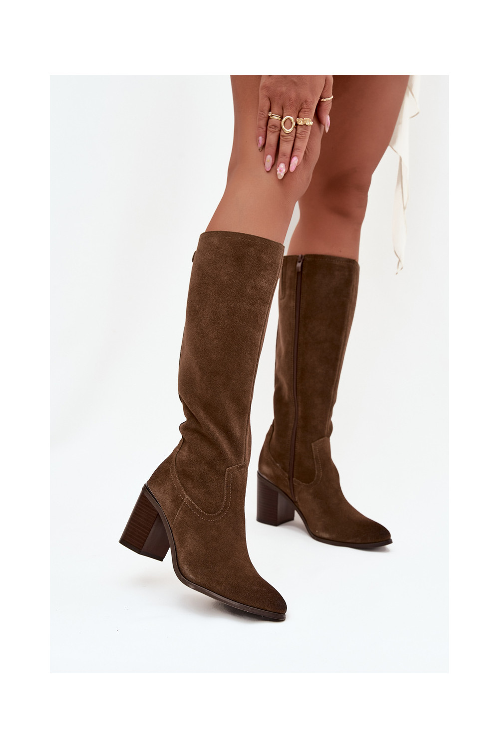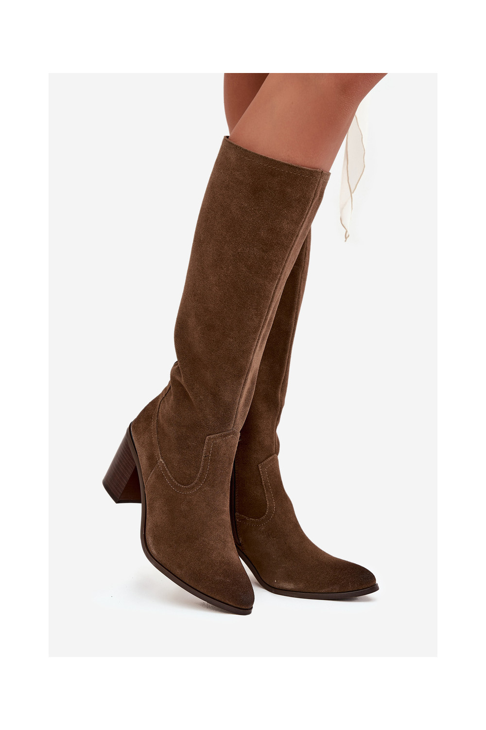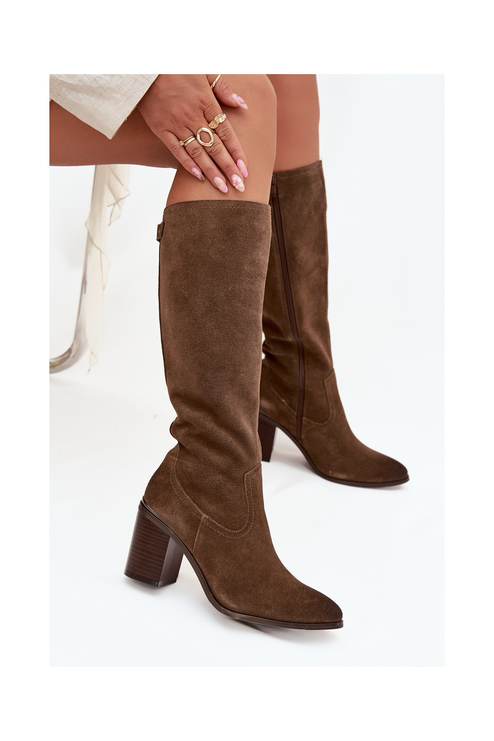 dámské dlouhé boty Z Naturalnego Zamszu zateplené Obcas Słupek Sergio Leone KZ25668-S zelené