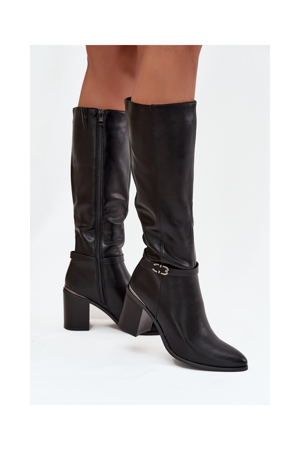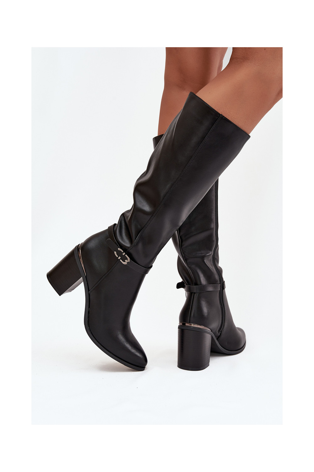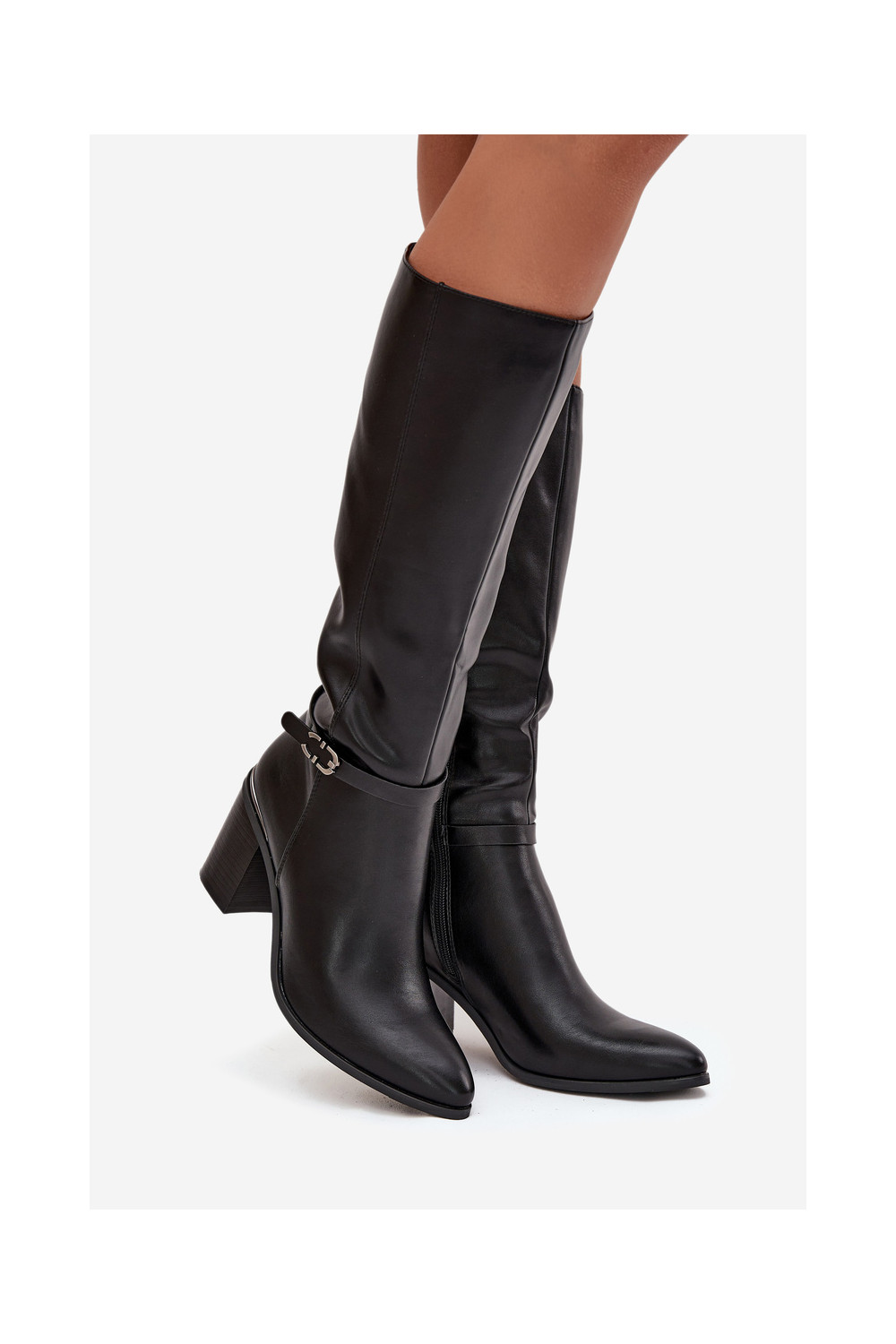 Stylové dlouhé boty zateplené s podpatky s přezkami Sergio Leone KZ25738 Černé