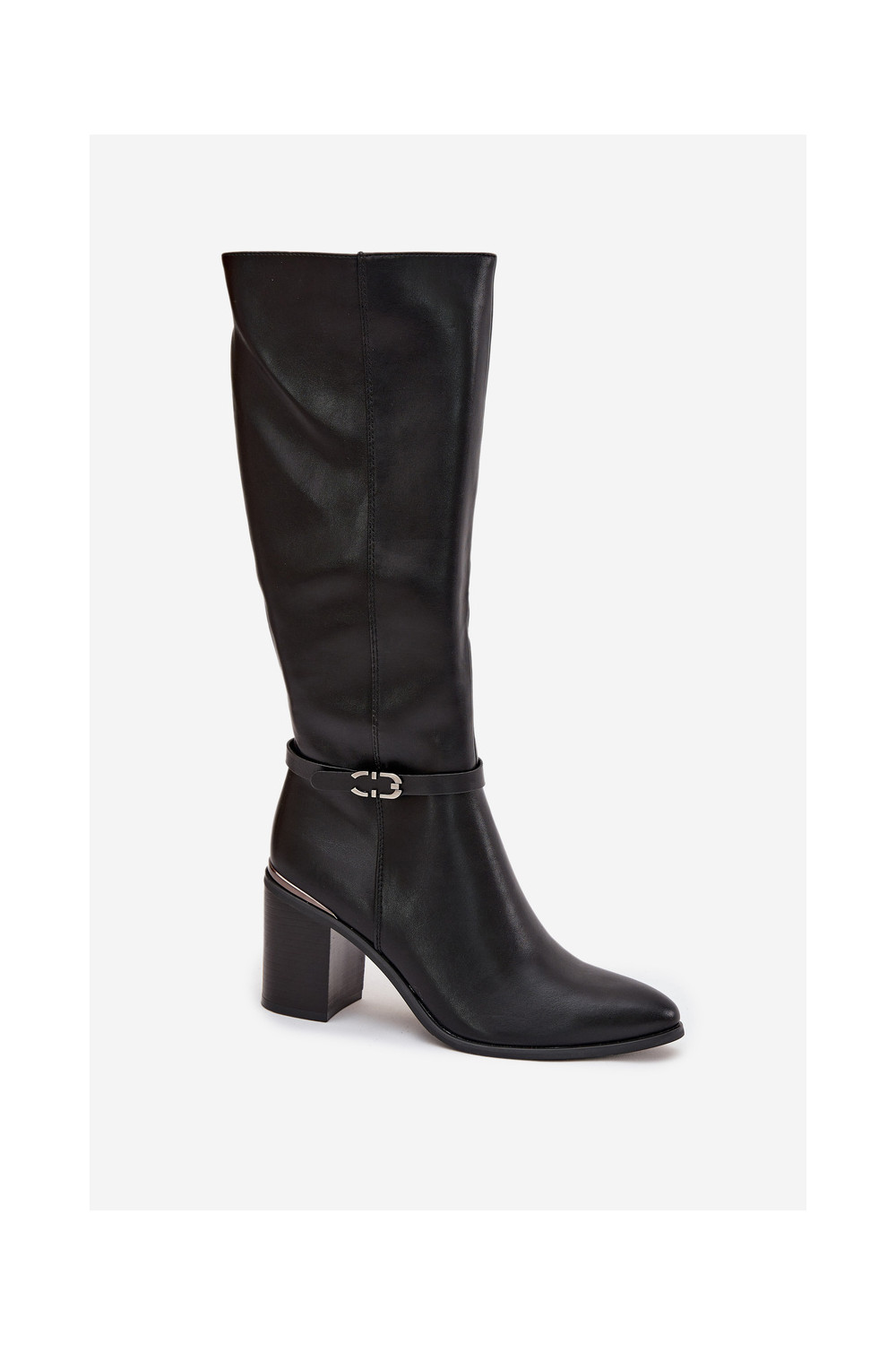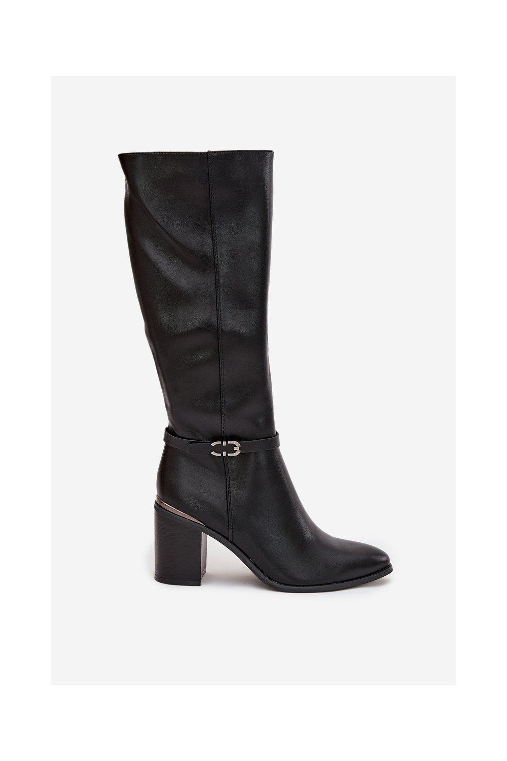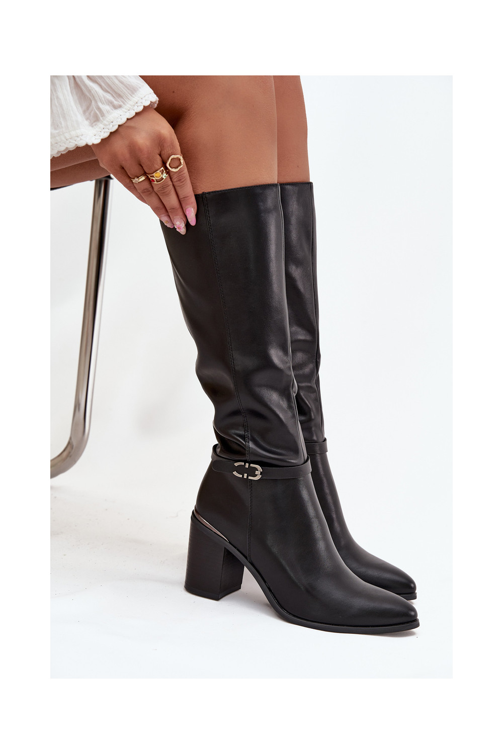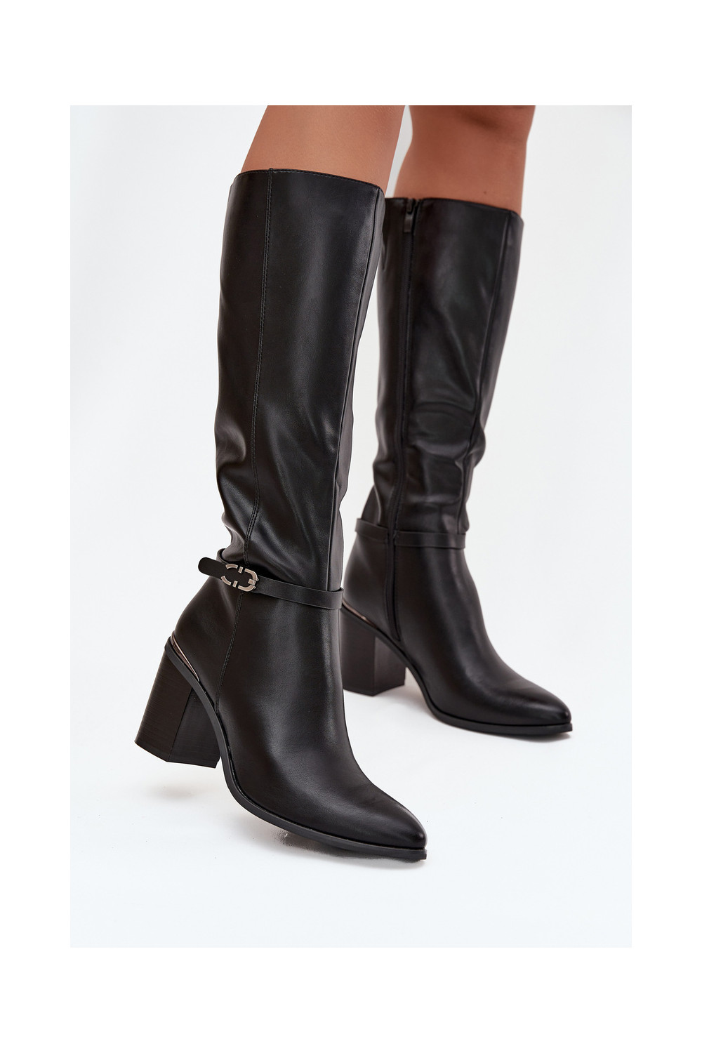 Stylové dlouhé boty zateplené s podpatky s přezkami Sergio Leone KZ25738 Černé