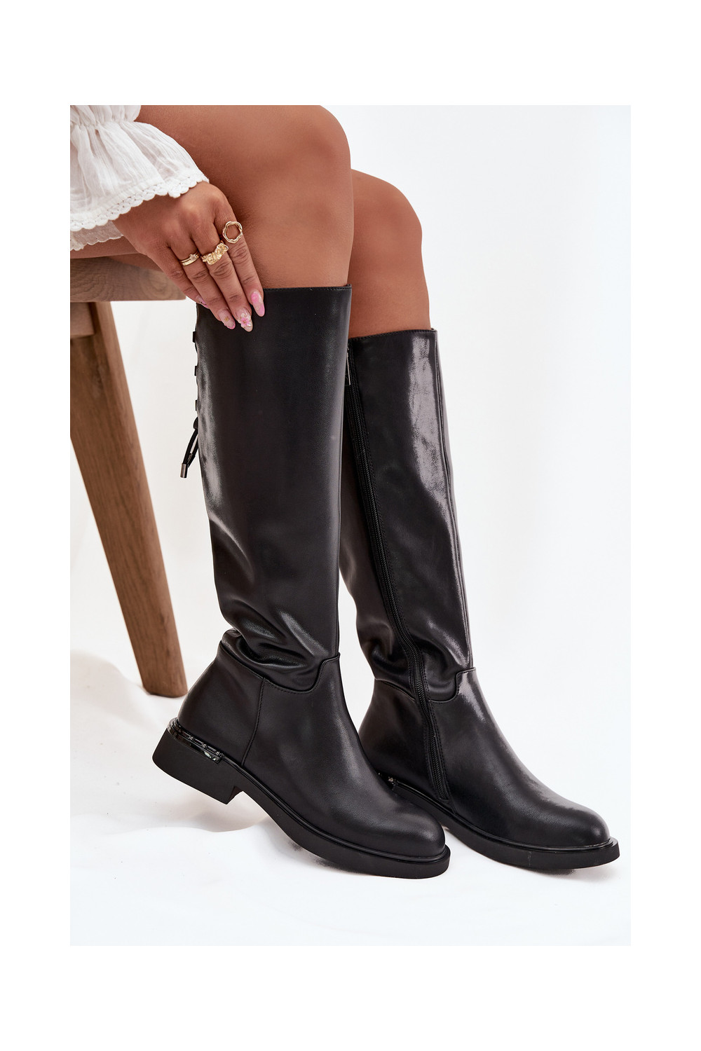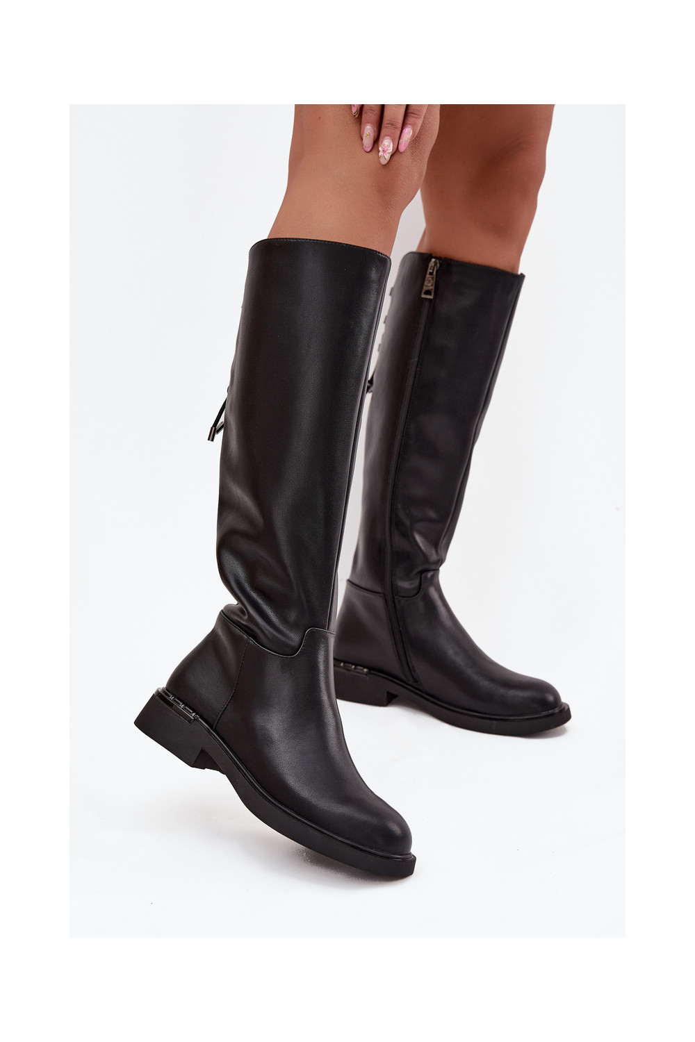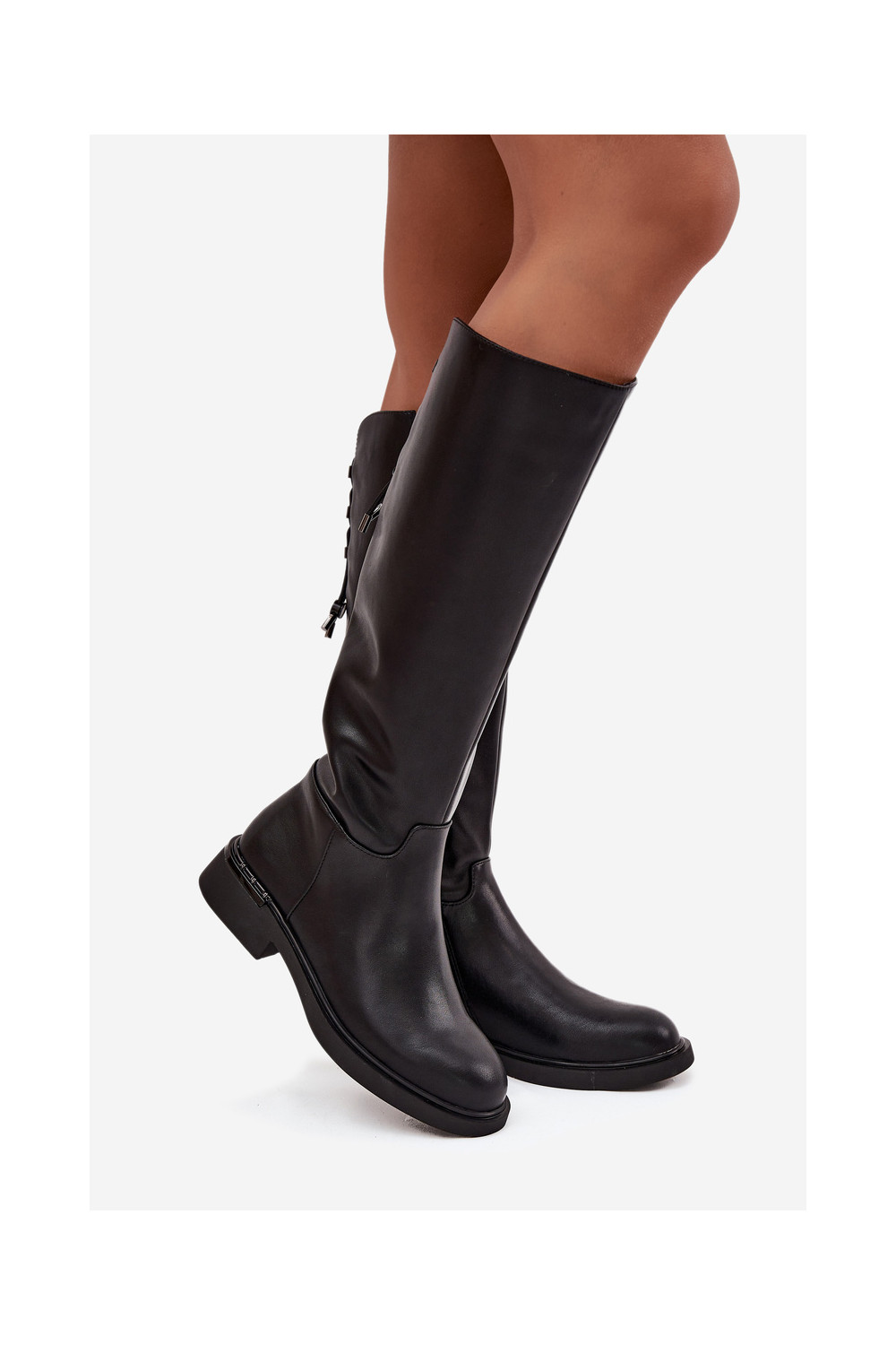 zateplené dámské dlouhé boty Z Naturalnej Skóry s širokými podpatky Vinceza 66822 Černé