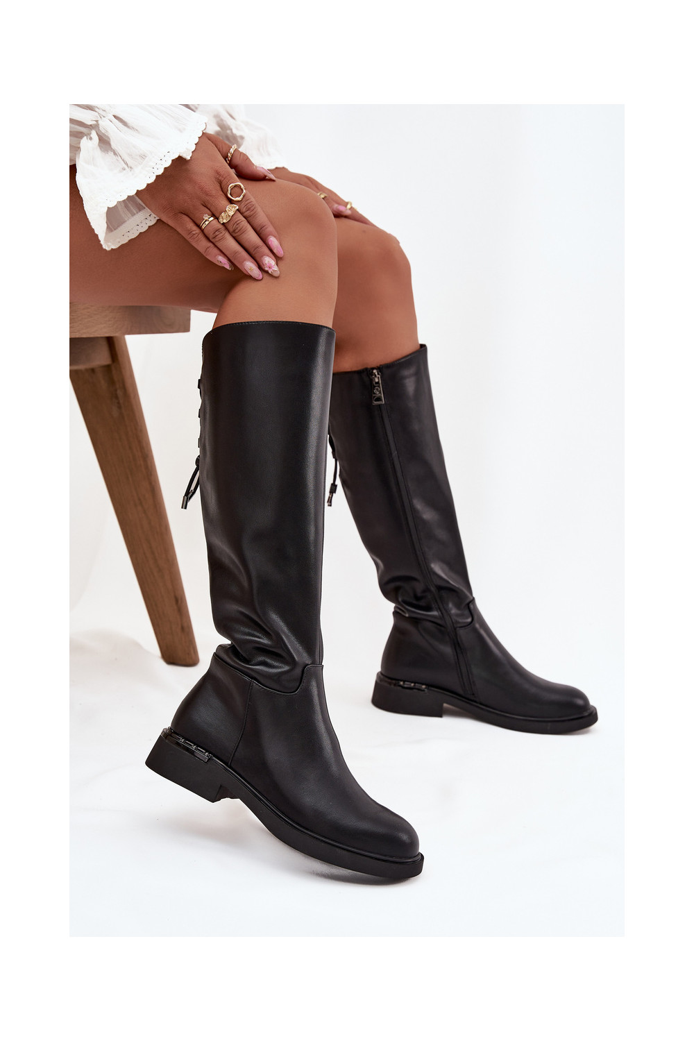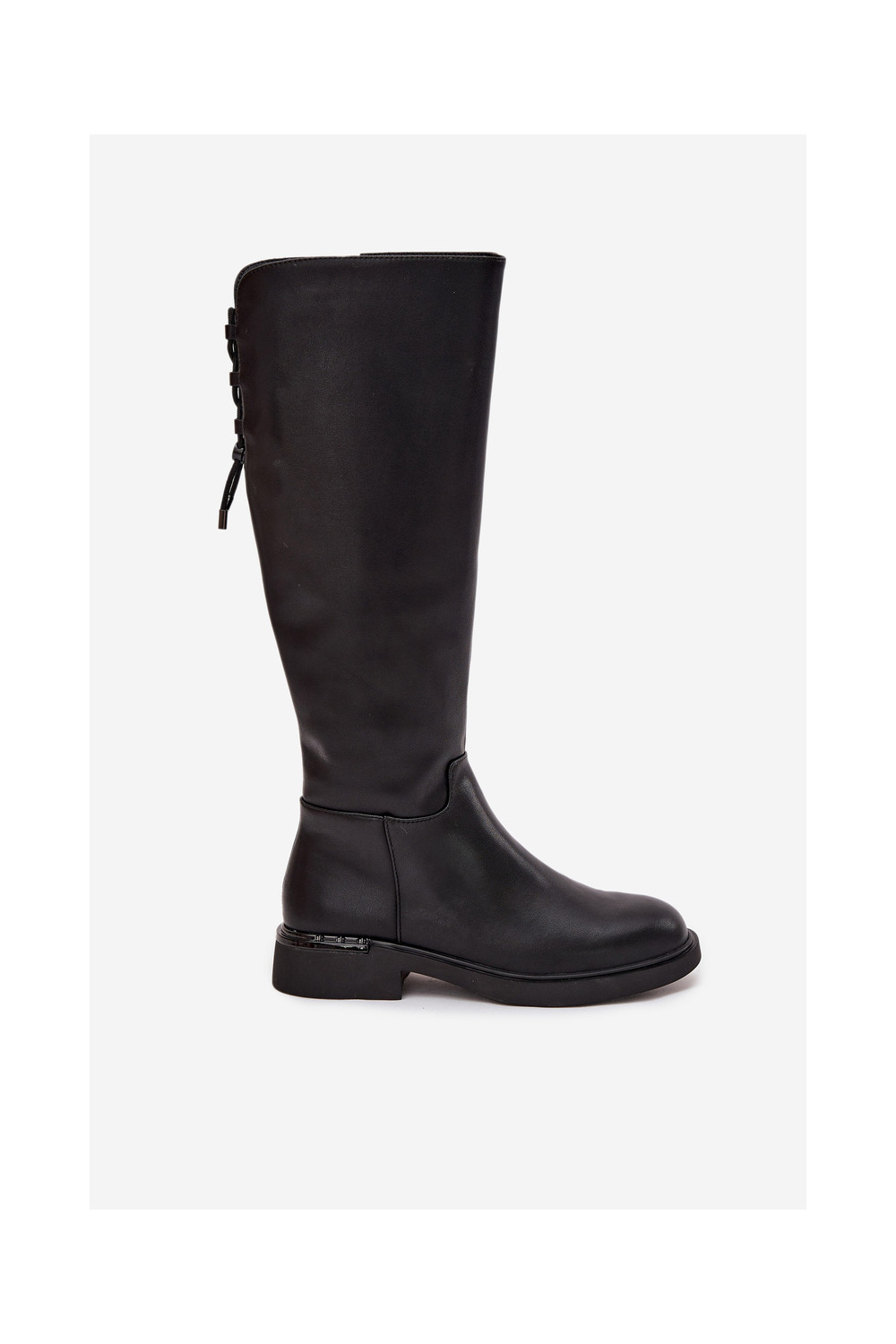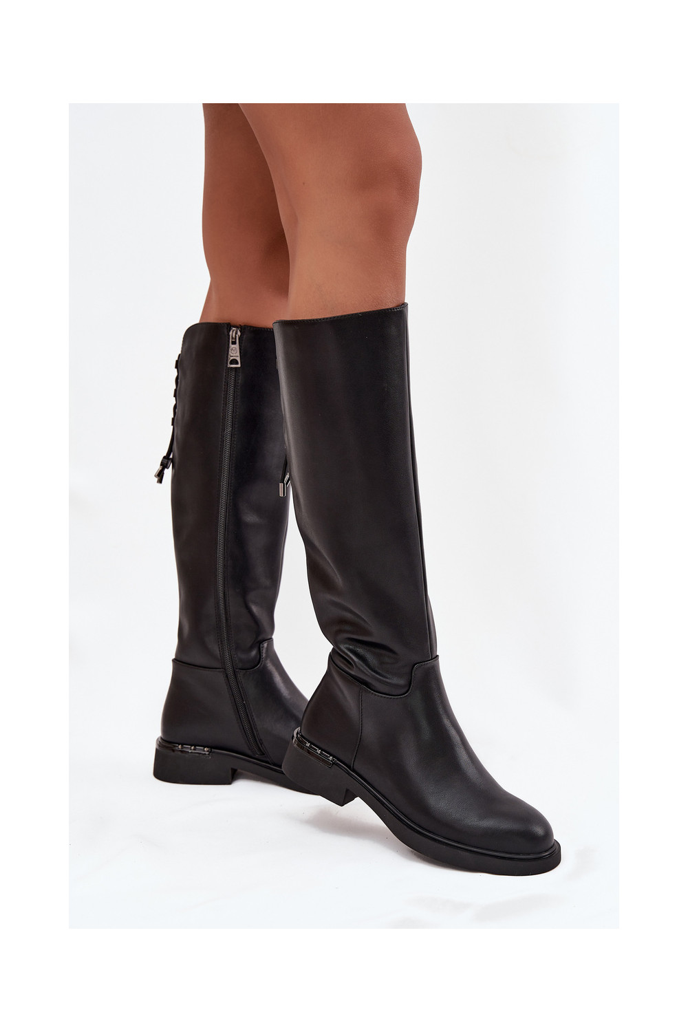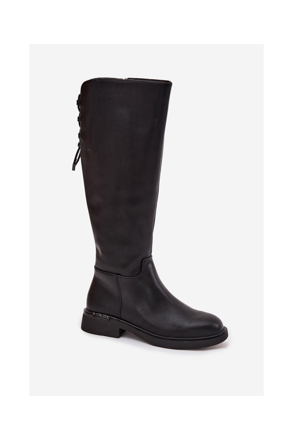 zateplené dámské dlouhé boty Z Naturalnej Skóry s širokými podpatky Vinceza 66822 Černé