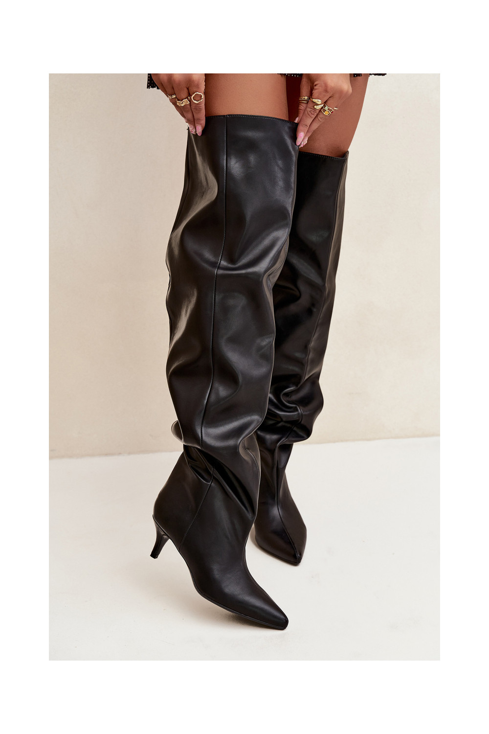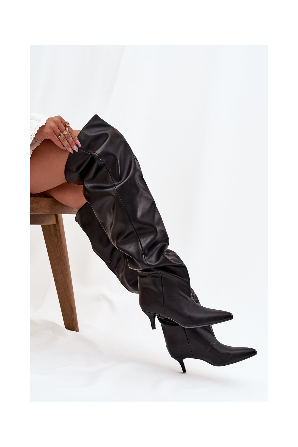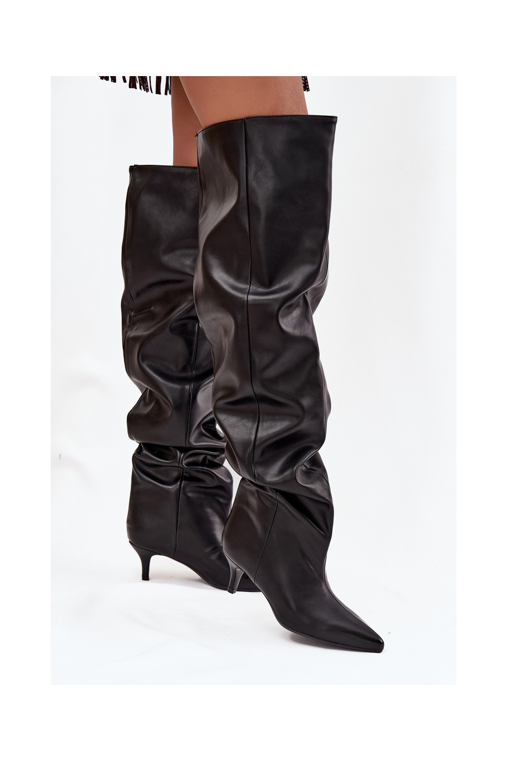 Slip-on vzor dámské dlouhé boty s tenkými podpatky Černé Ysolienne