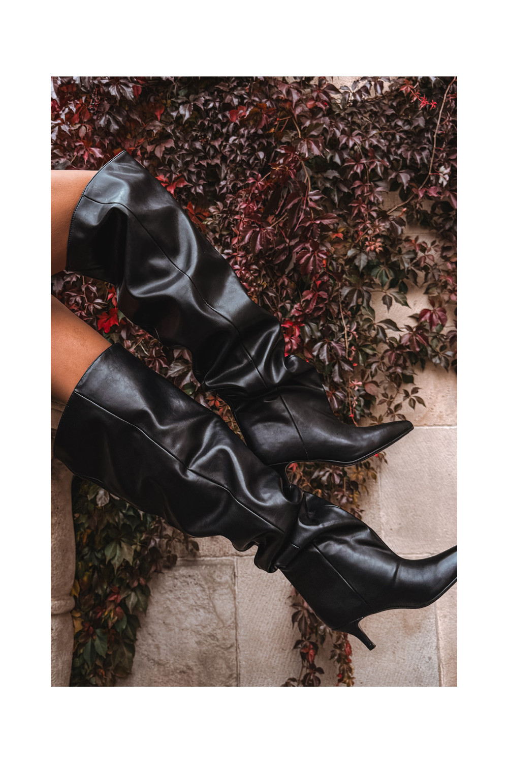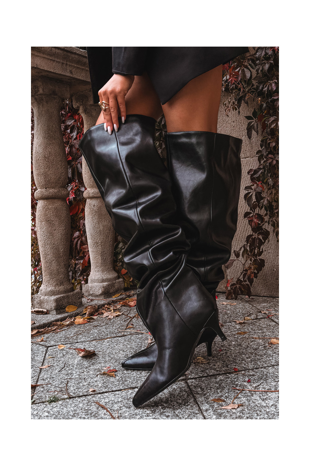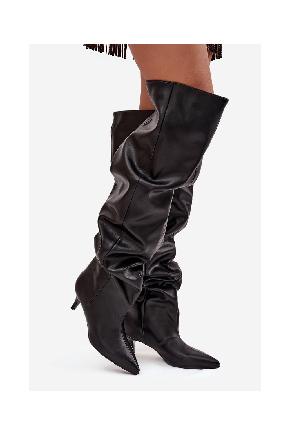Slip-on vzor dámské dlouhé boty s tenkými podpatky Černé Ysolienne
