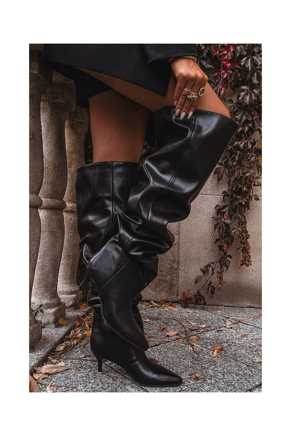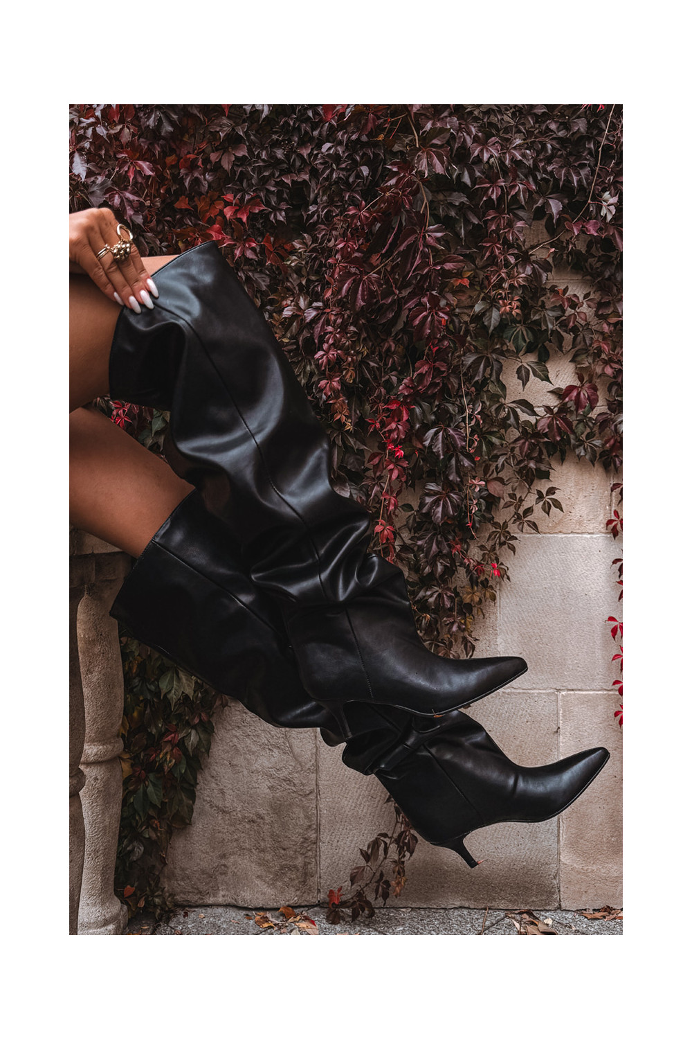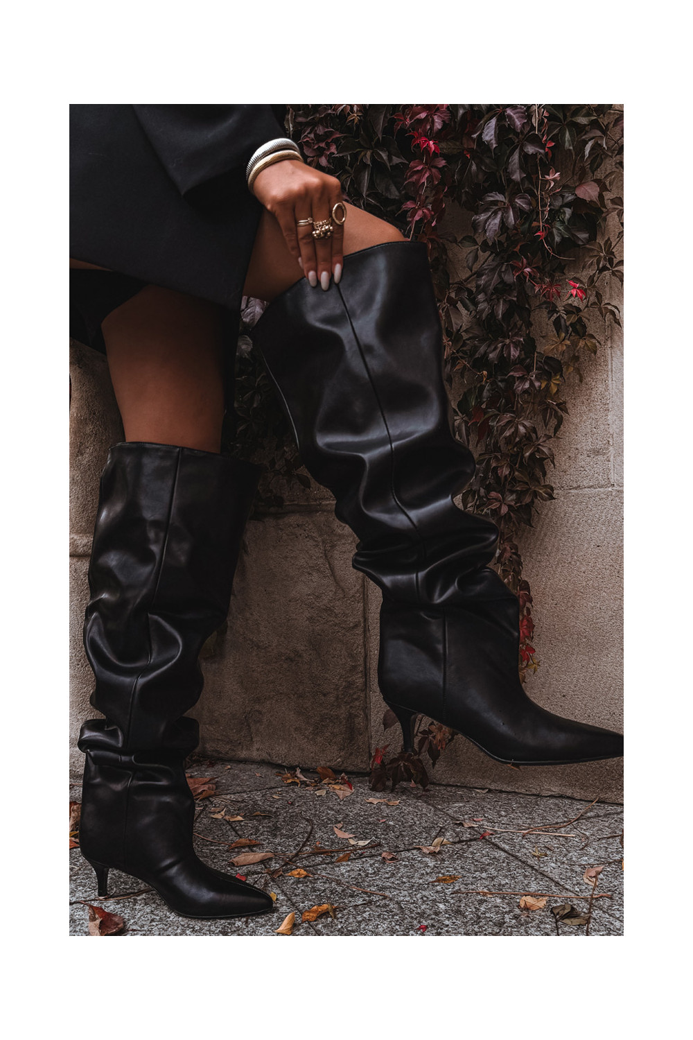 Slip-on vzor dámské dlouhé boty s tenkými podpatky Černé Ysolienne