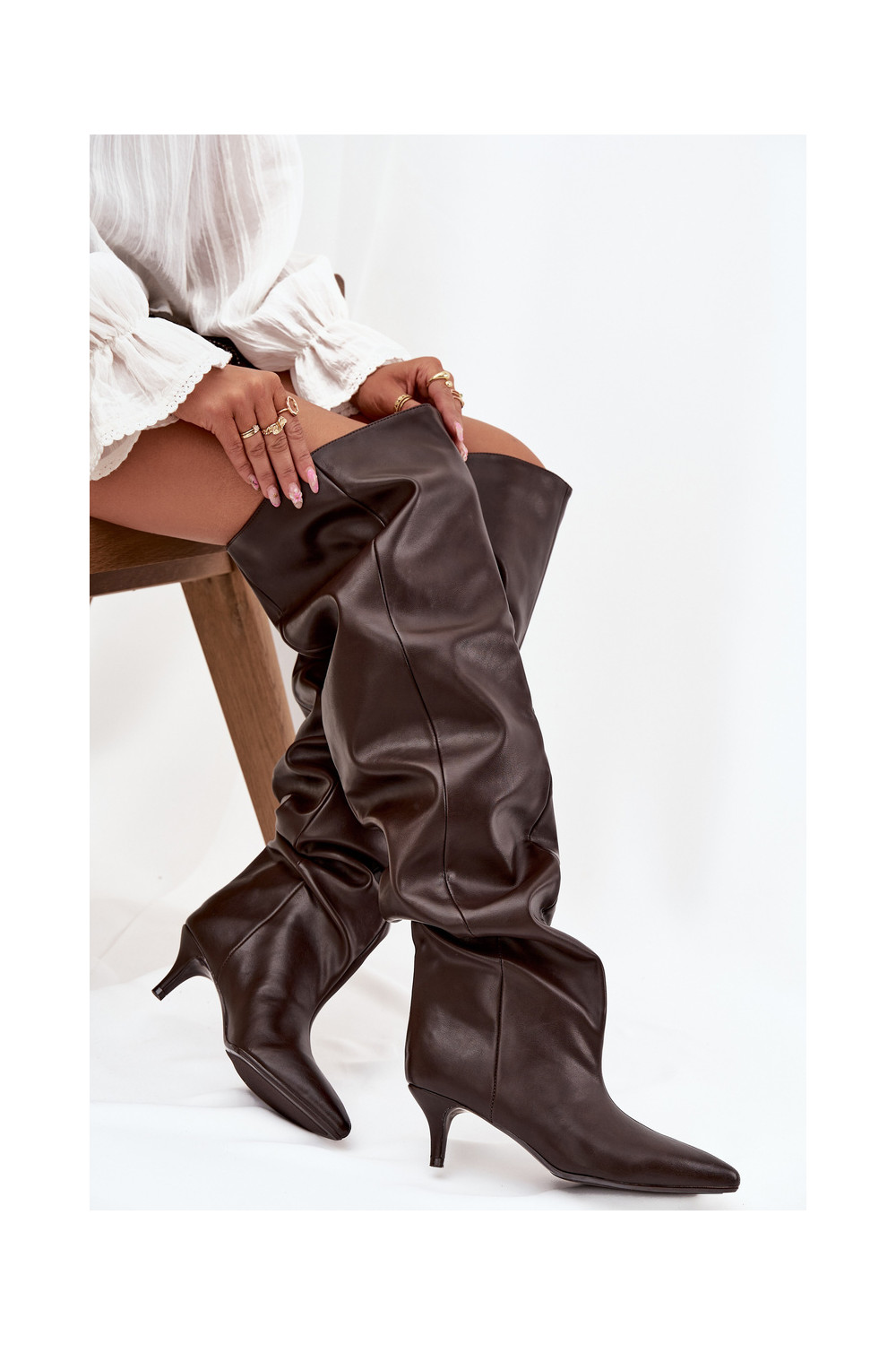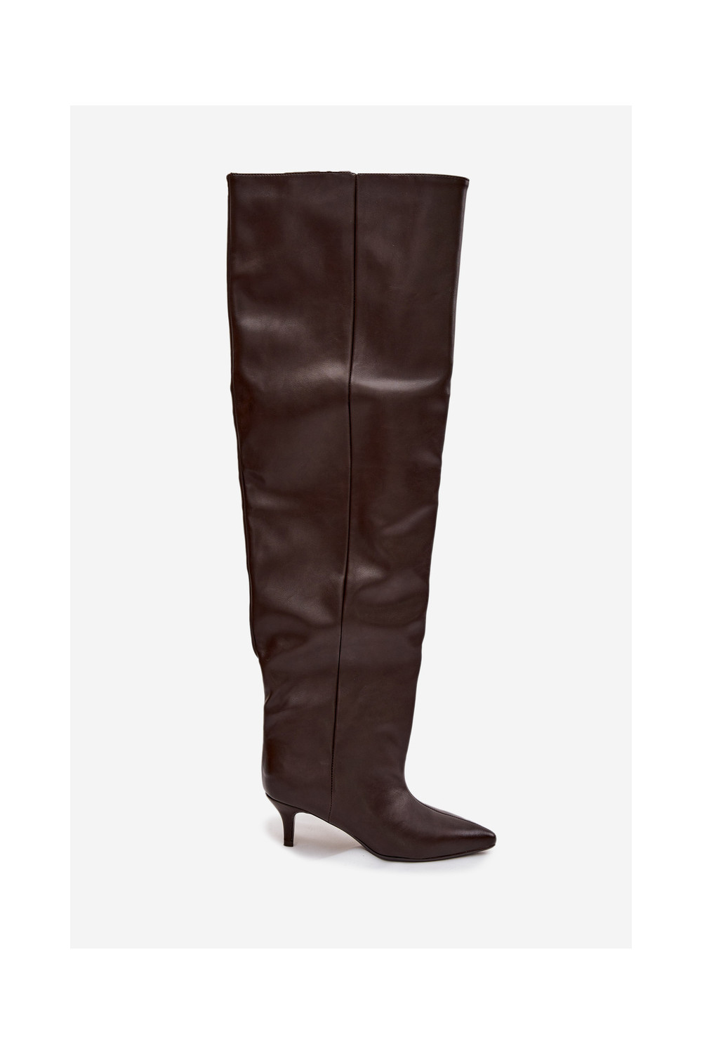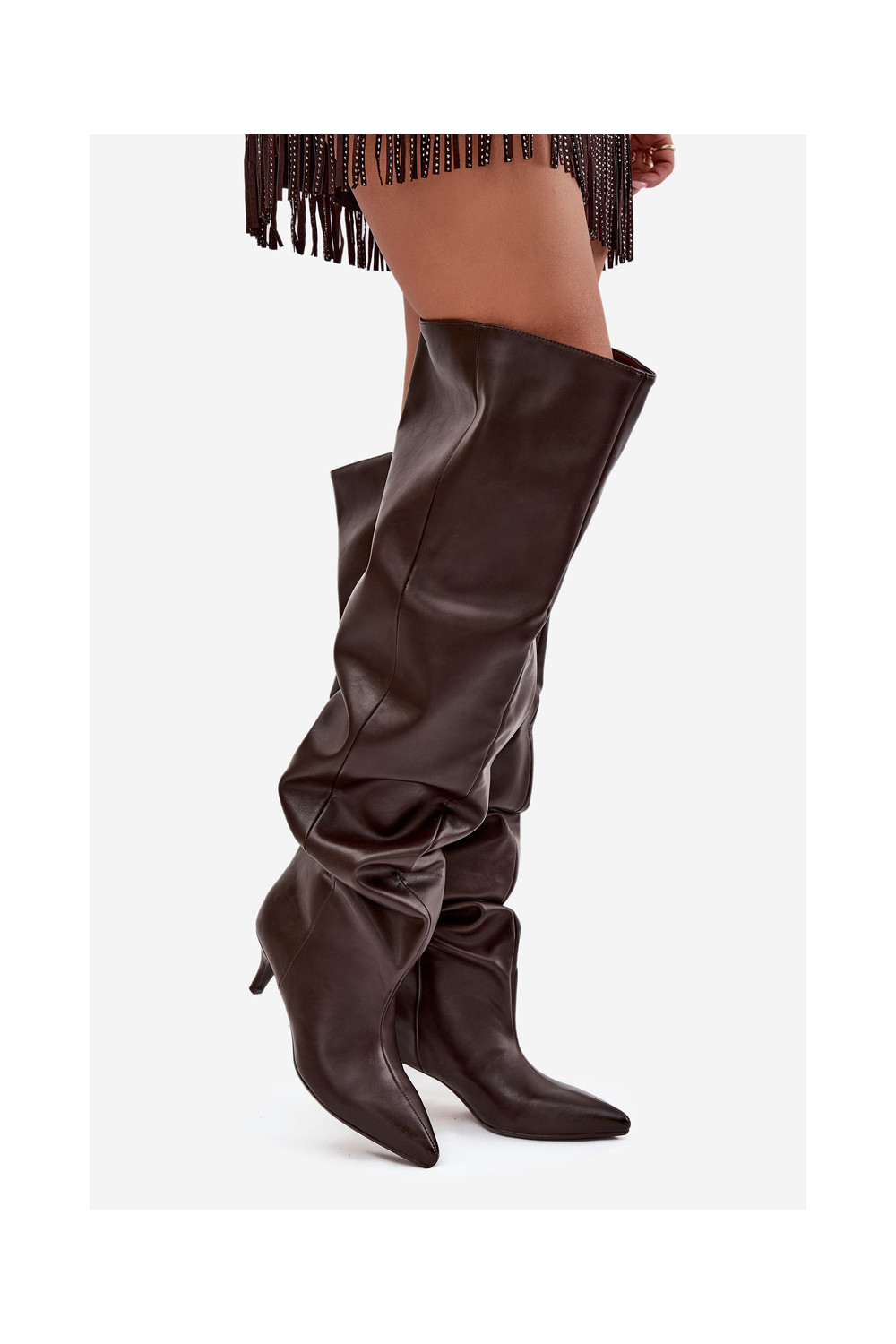 Slip-on vzor dámské dlouhé boty s tenkými podpatky Czekoladowe Ysolienne