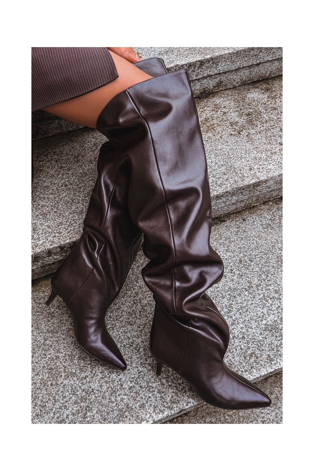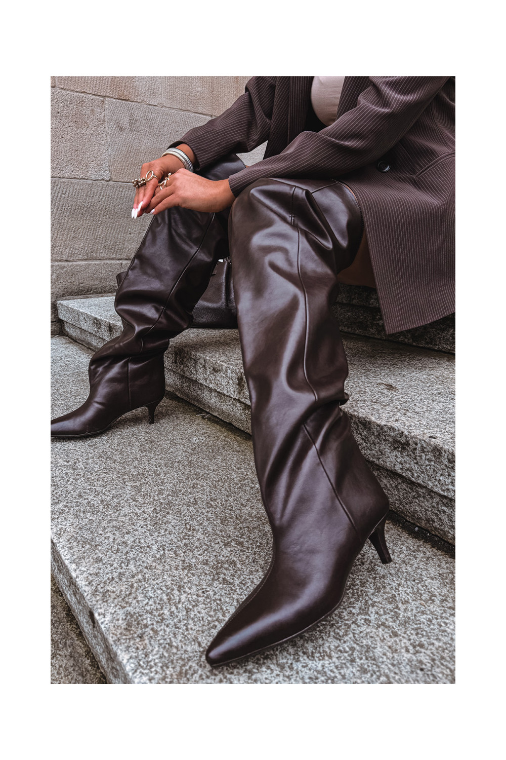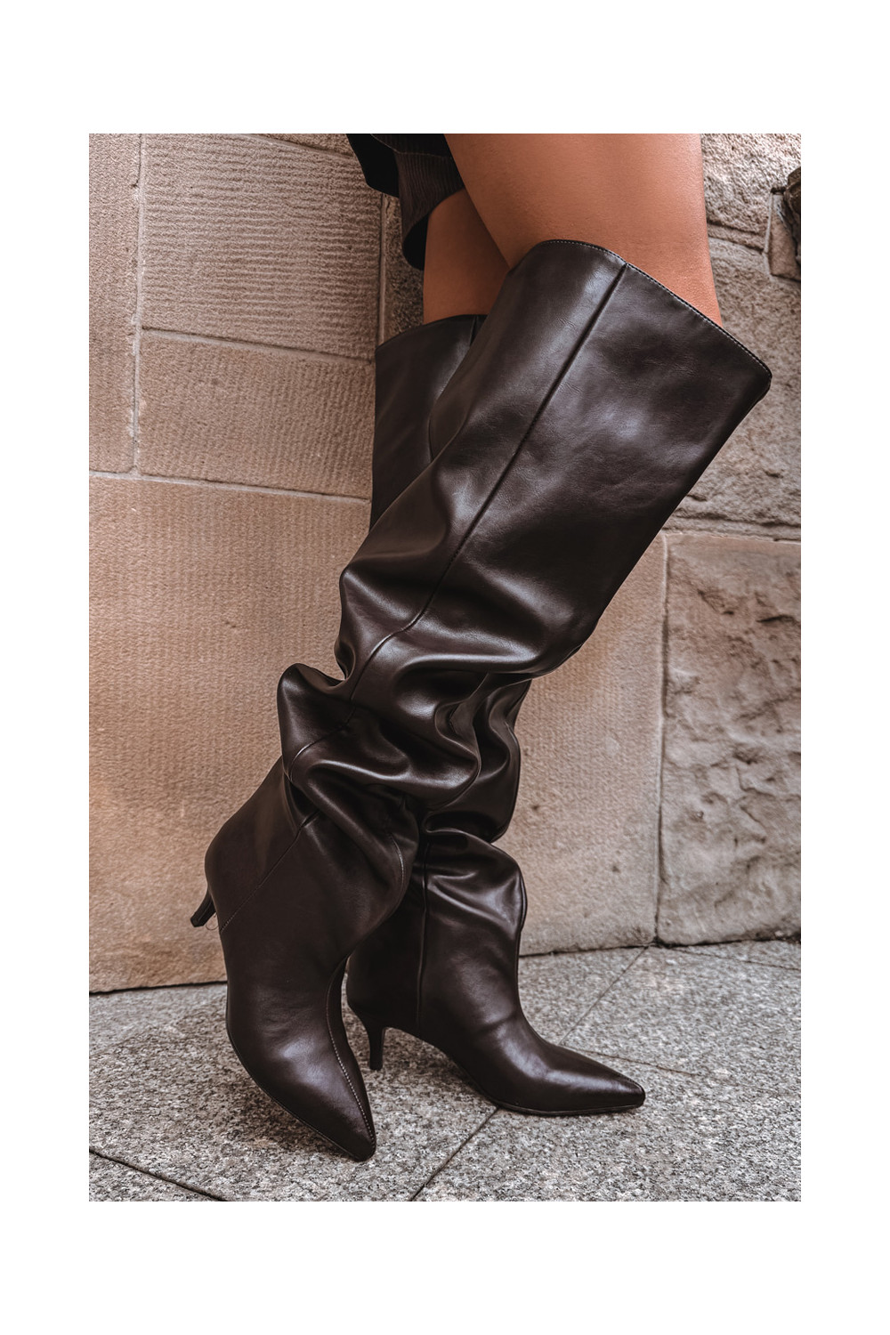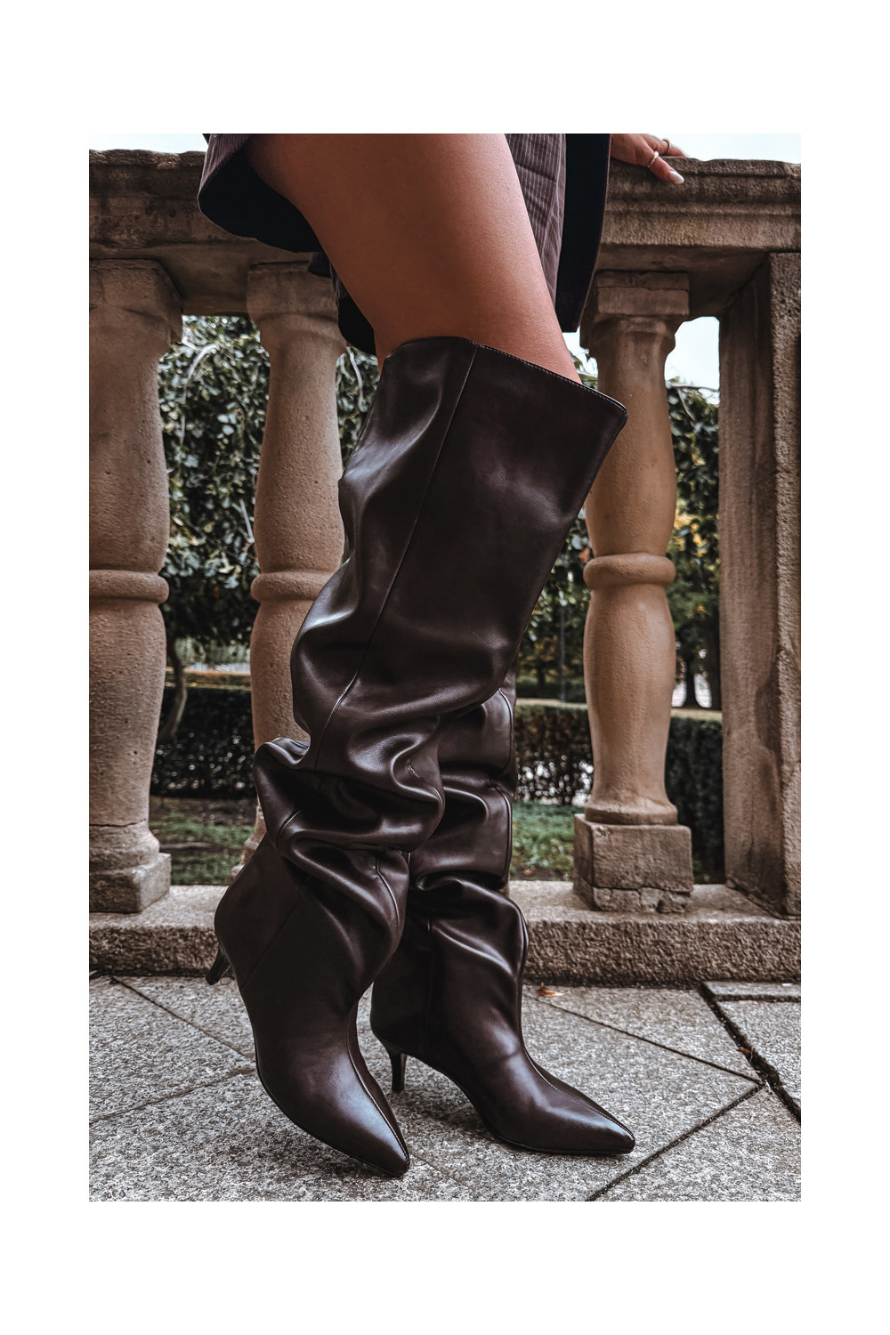 Slip-on vzor dámské dlouhé boty s tenkými podpatky Czekoladowe Ysolienne