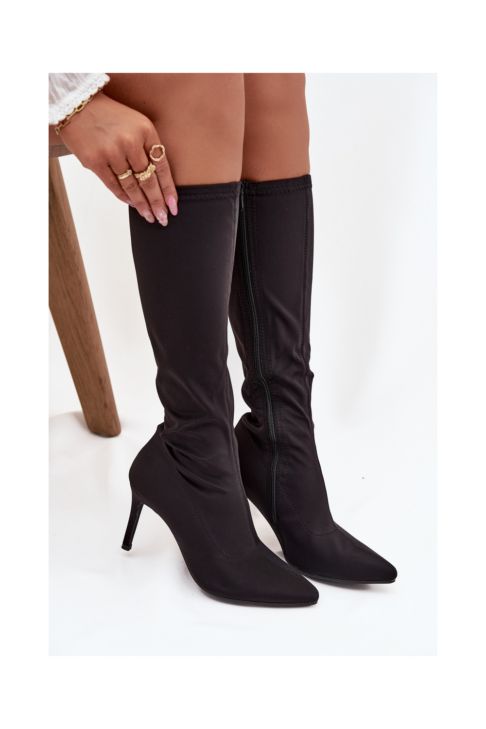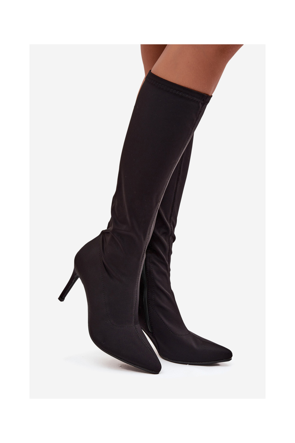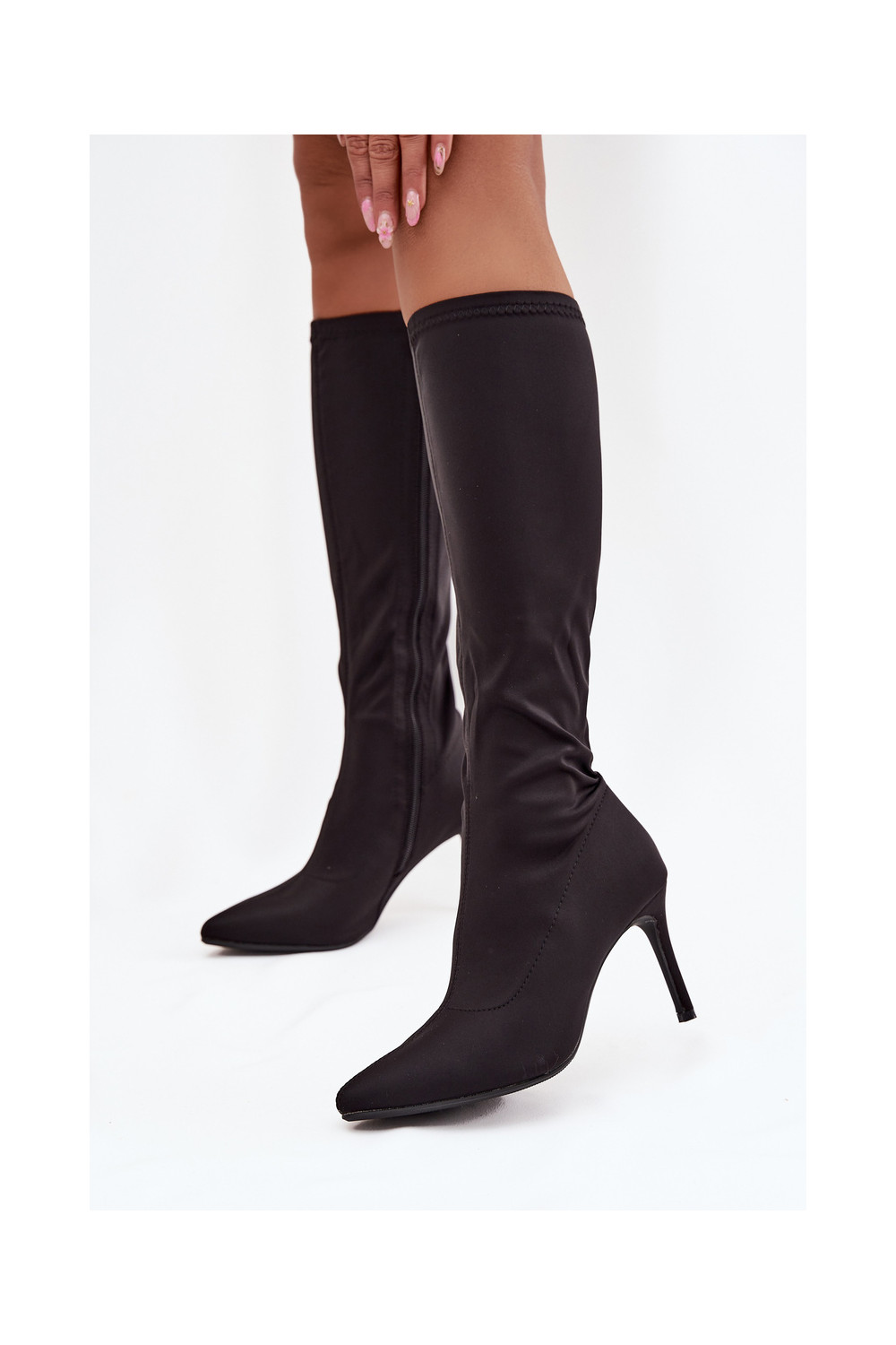 dámské dlouhé boty s tenkými podpatky S.Barski HY52-513 Černé
