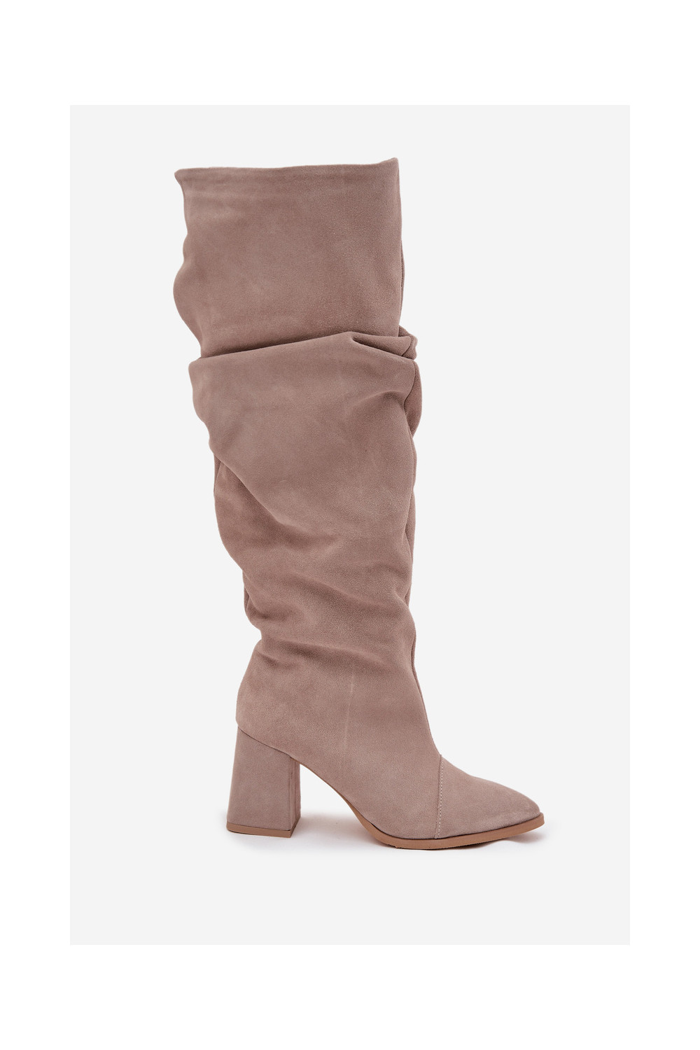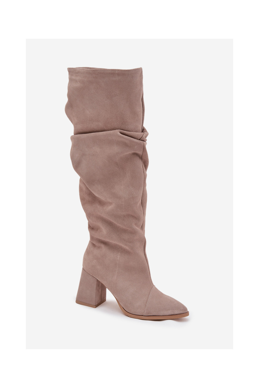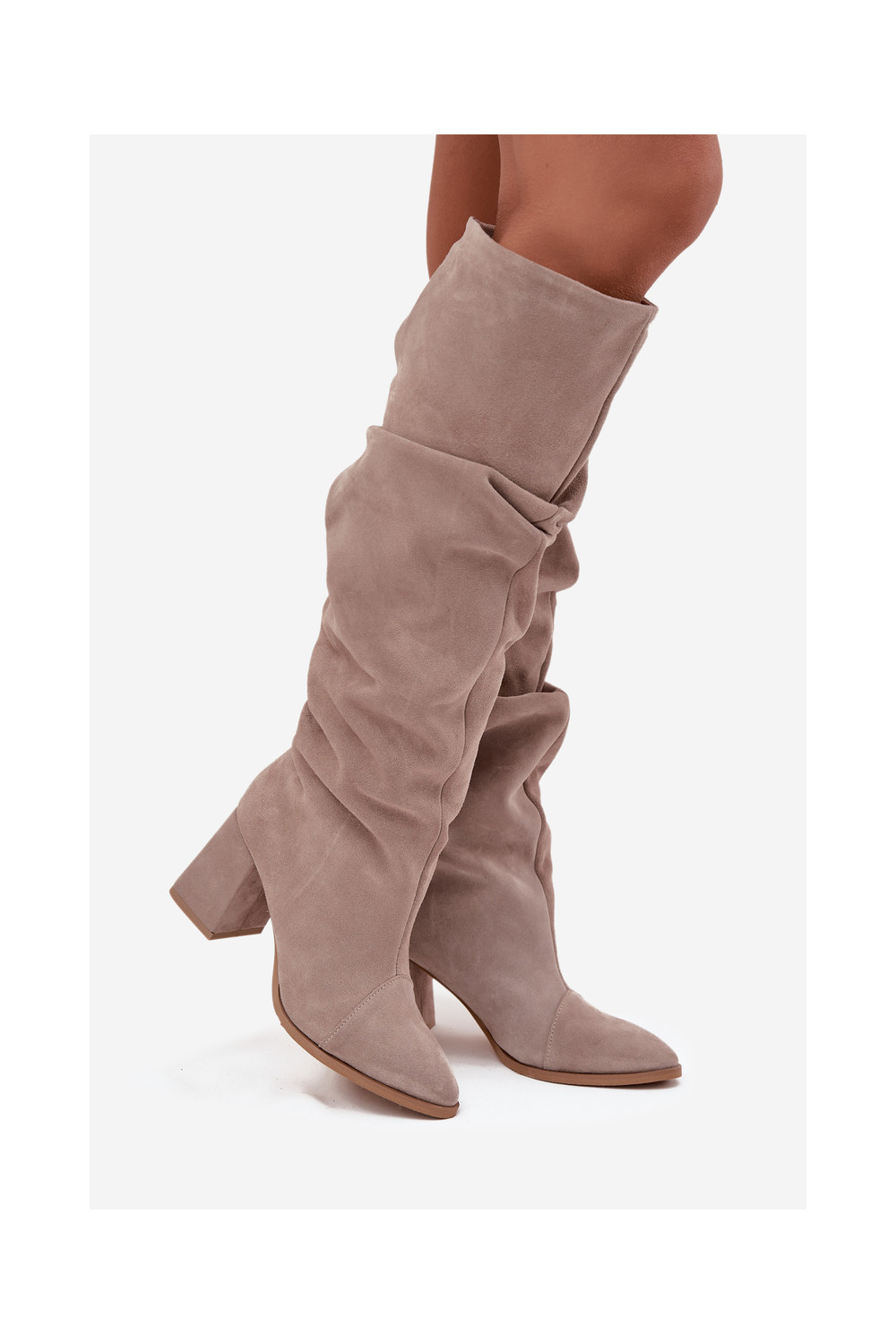 dlouhé boty Z Naturalnego Zamszu s podpatky zateplené Zazoo 4228 béžové
