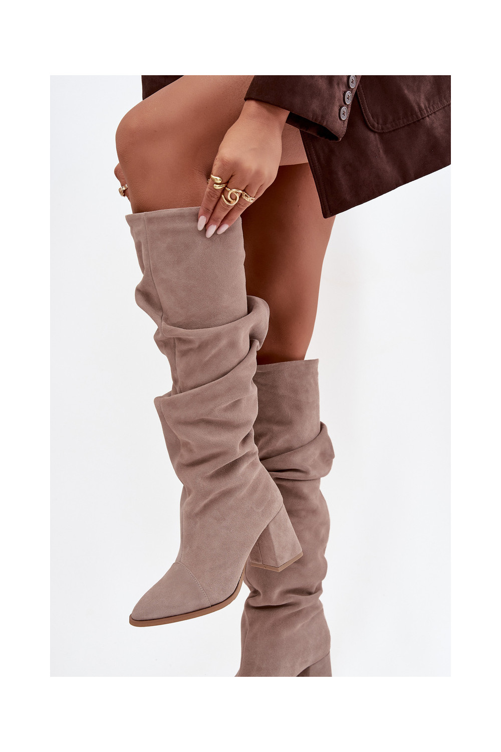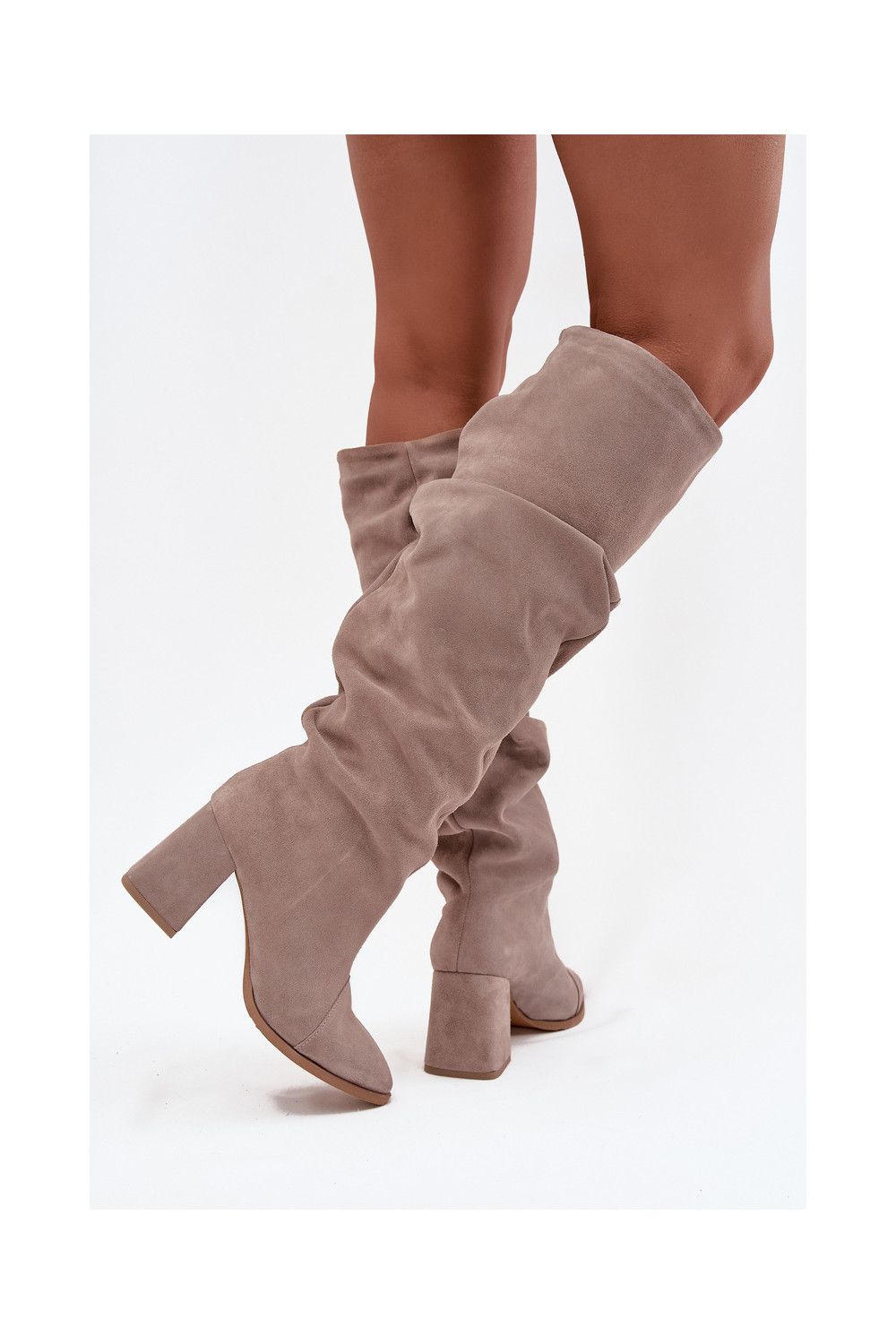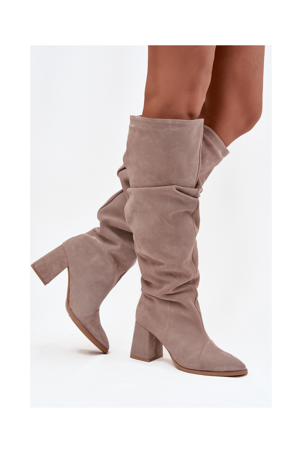 dlouhé boty Z Naturalnego Zamszu s podpatky zateplené Zazoo 4228 béžové