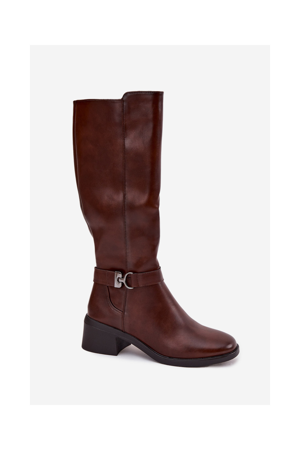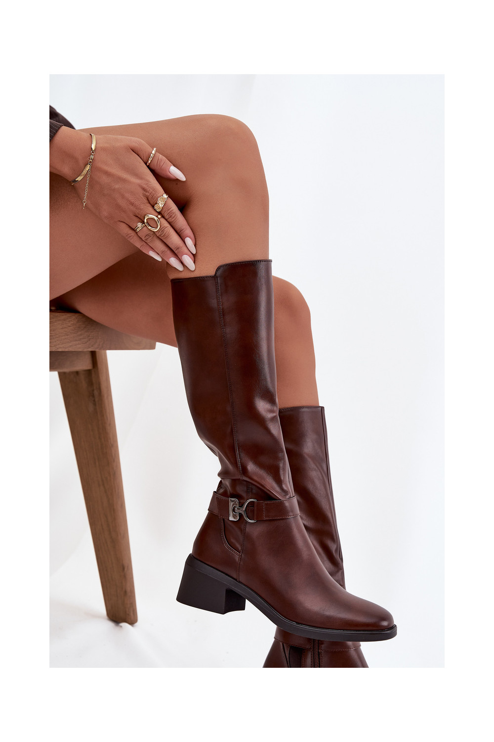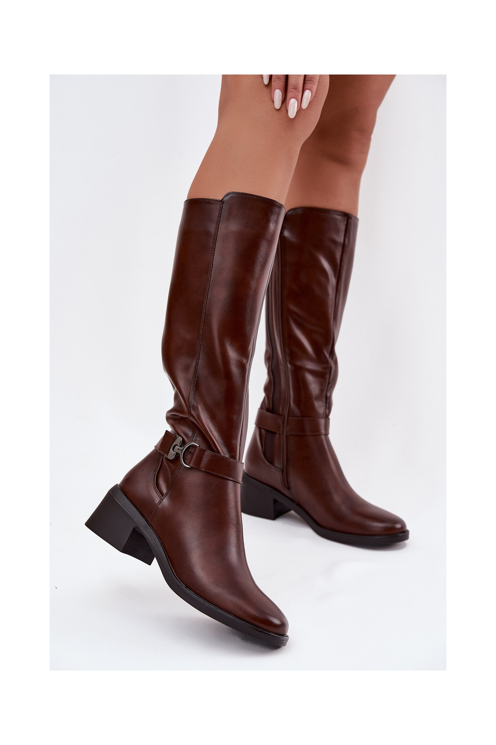zateplené dámské dlouhé boty s popruhy Sergio Leone KZ25826 hnědá