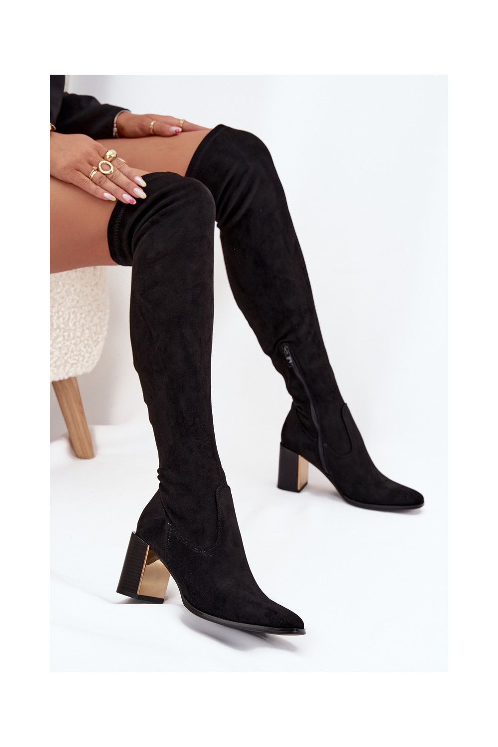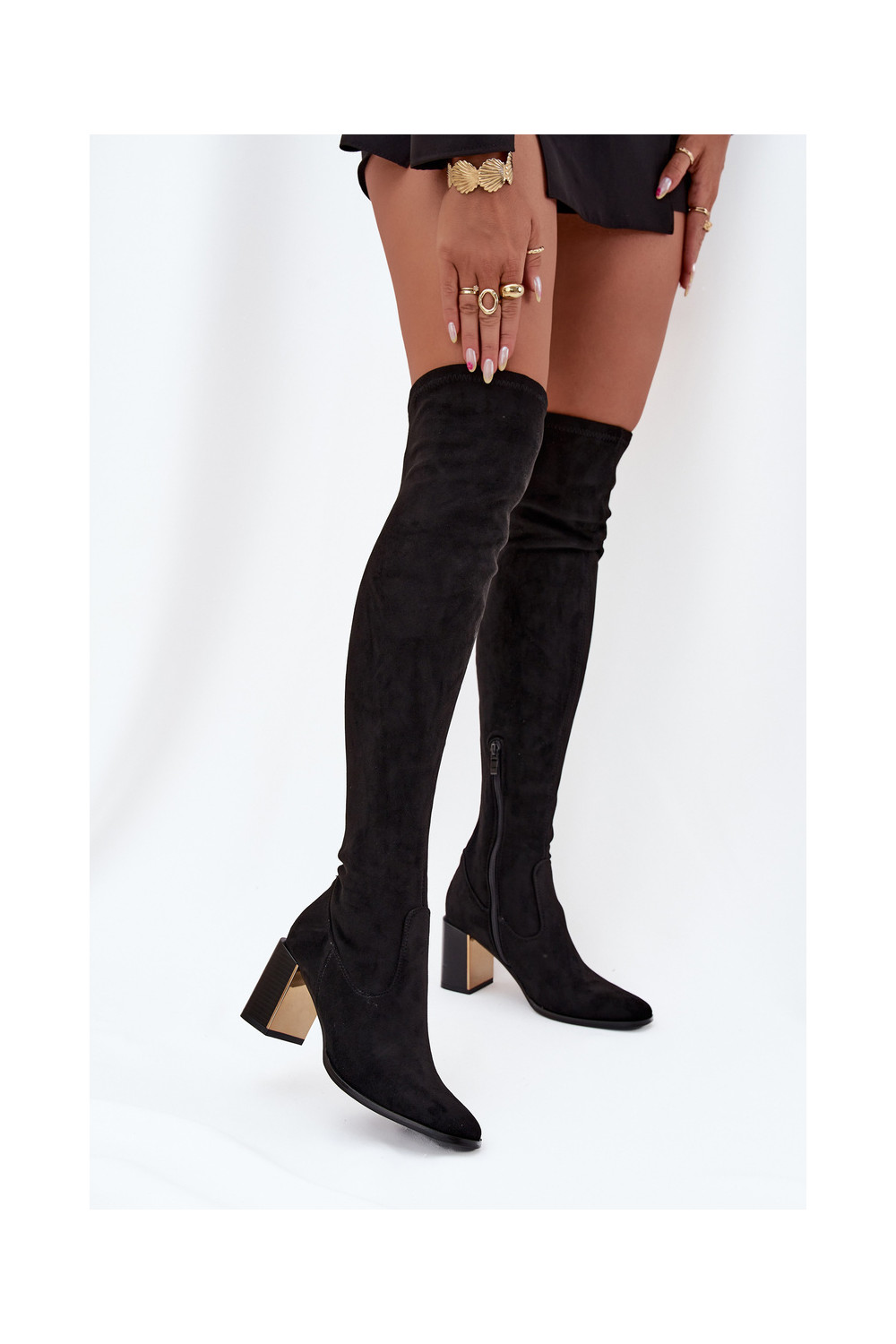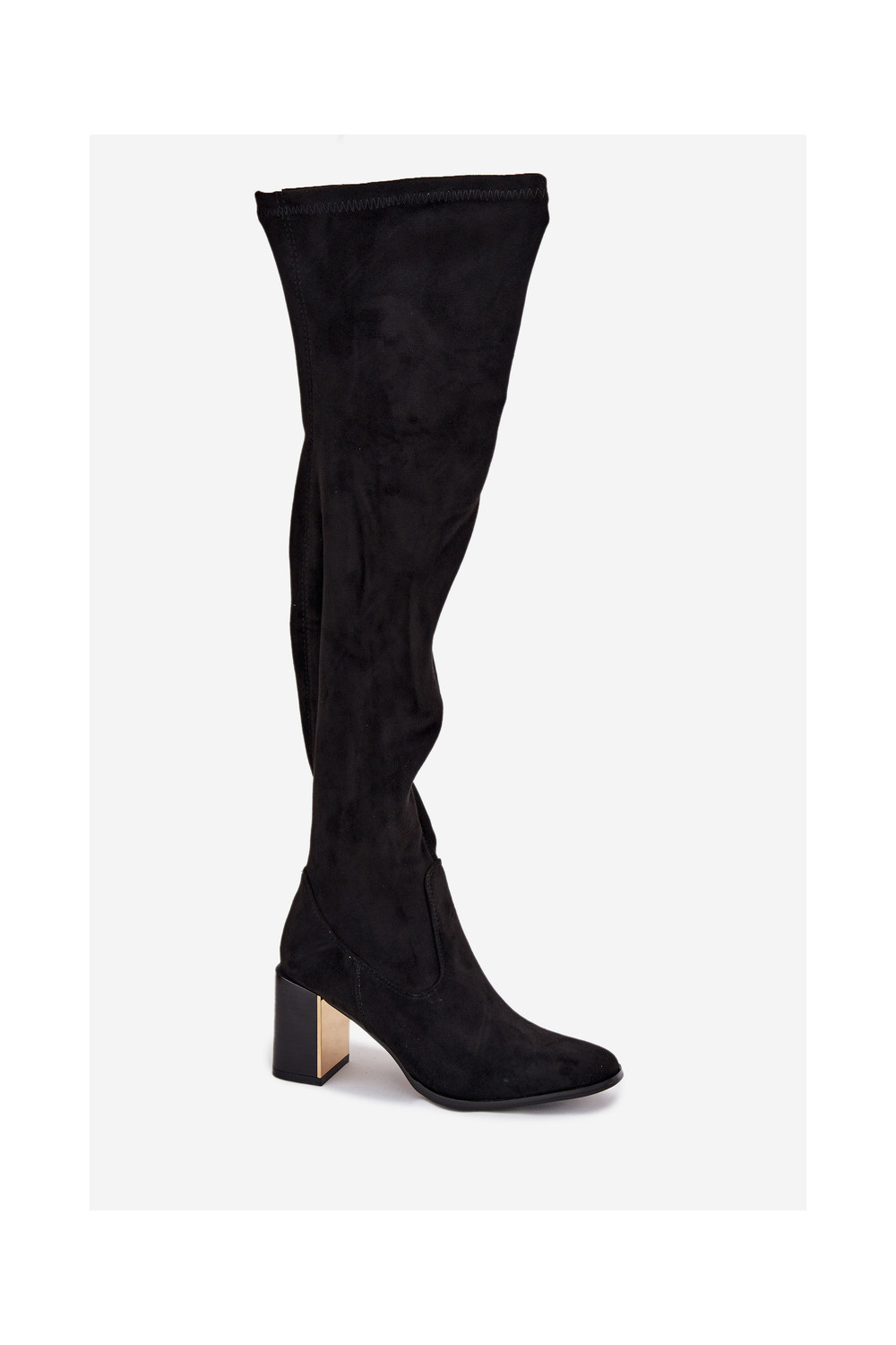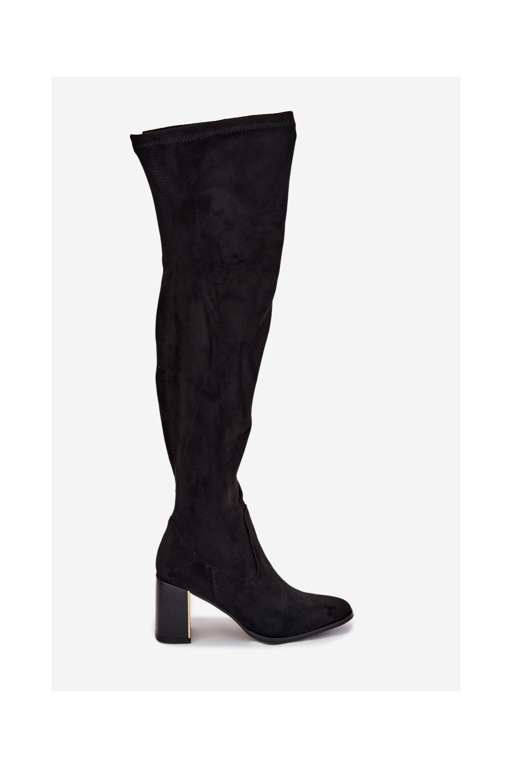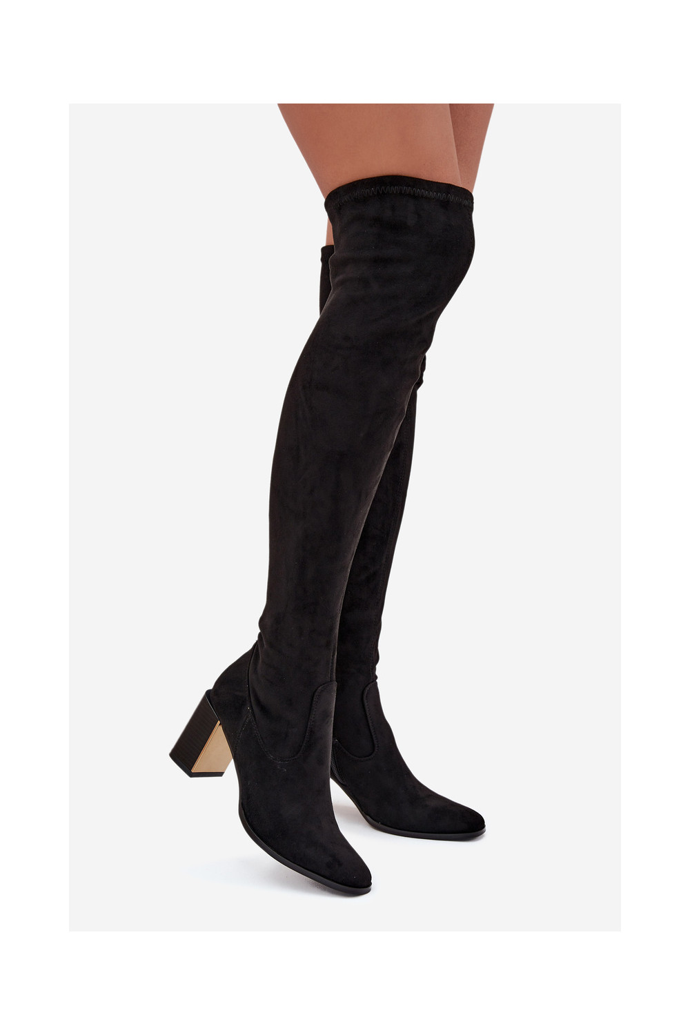 dámské dlouhé boty nad kolena s podpatky z eko semišeowe Černé Jelina