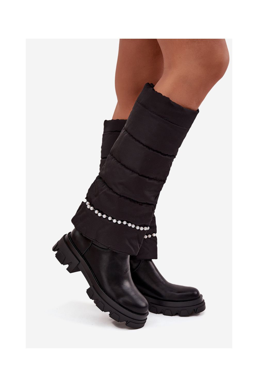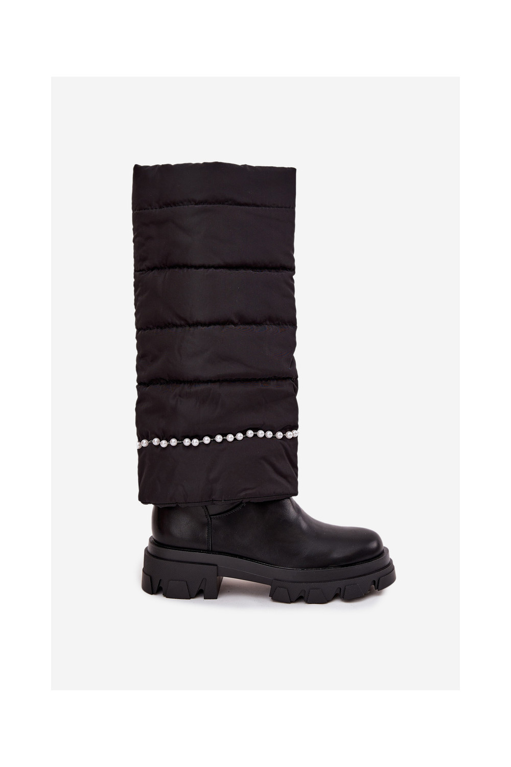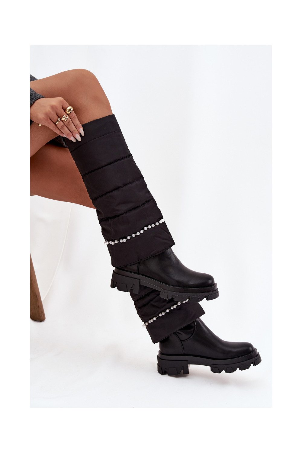 Teplé dlouhé kozačky s korálky Černé Irvette