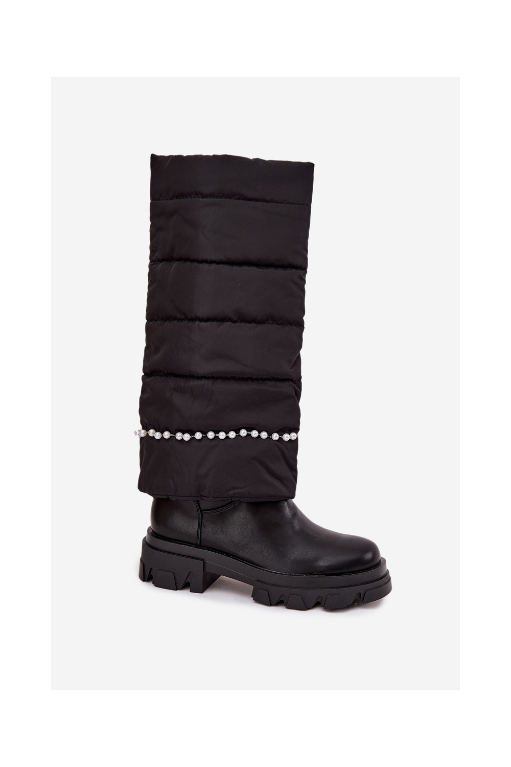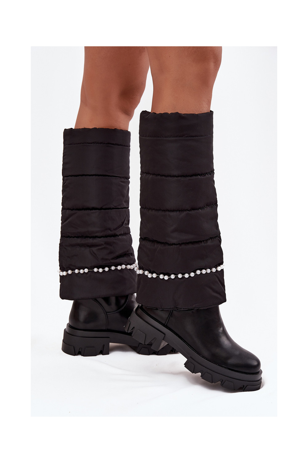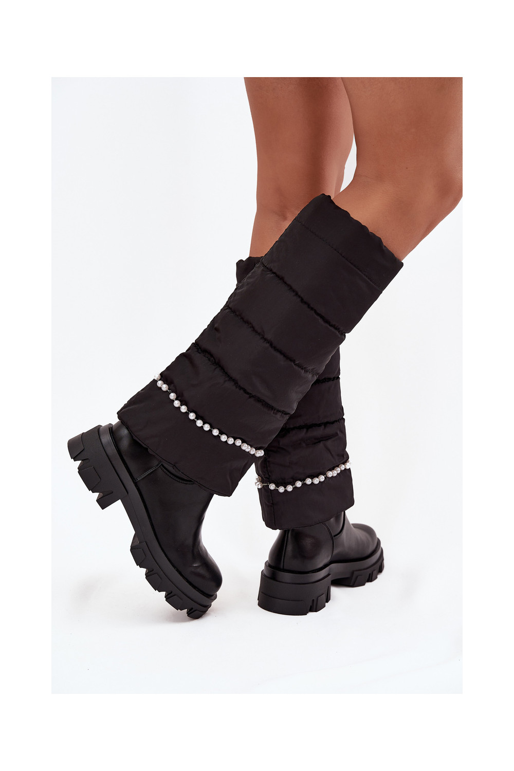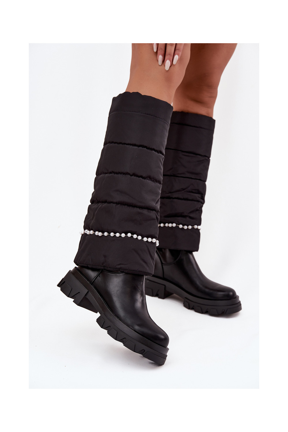 Teplé dlouhé kozačky s korálky Černé Irvette