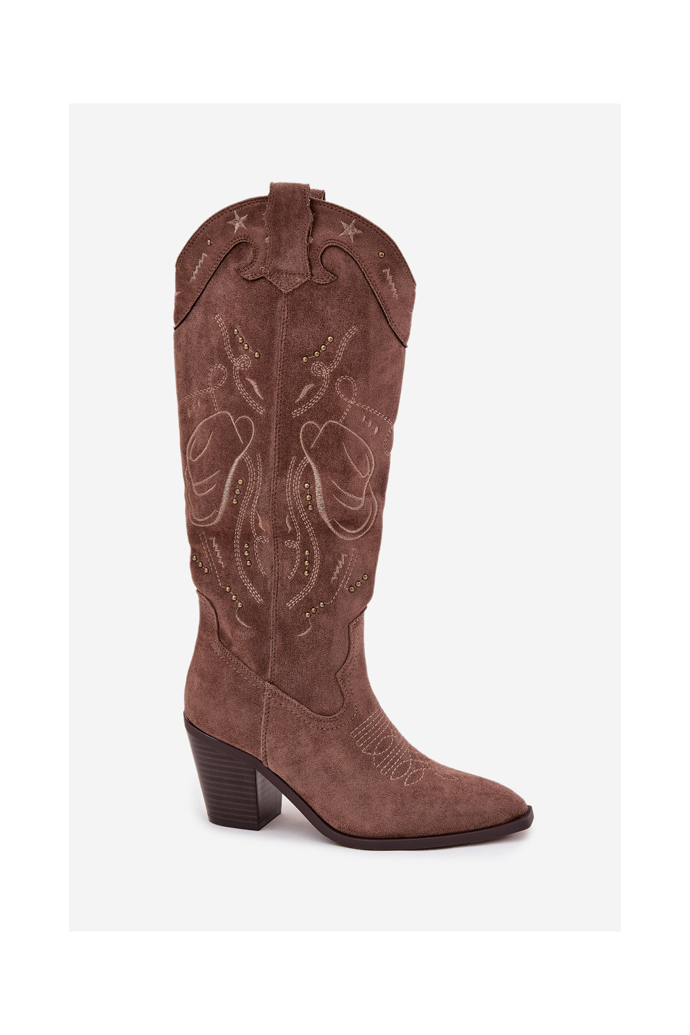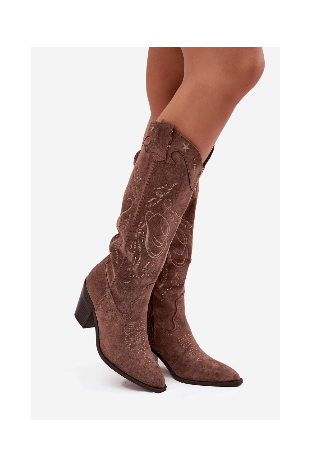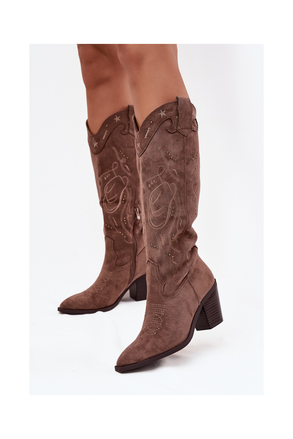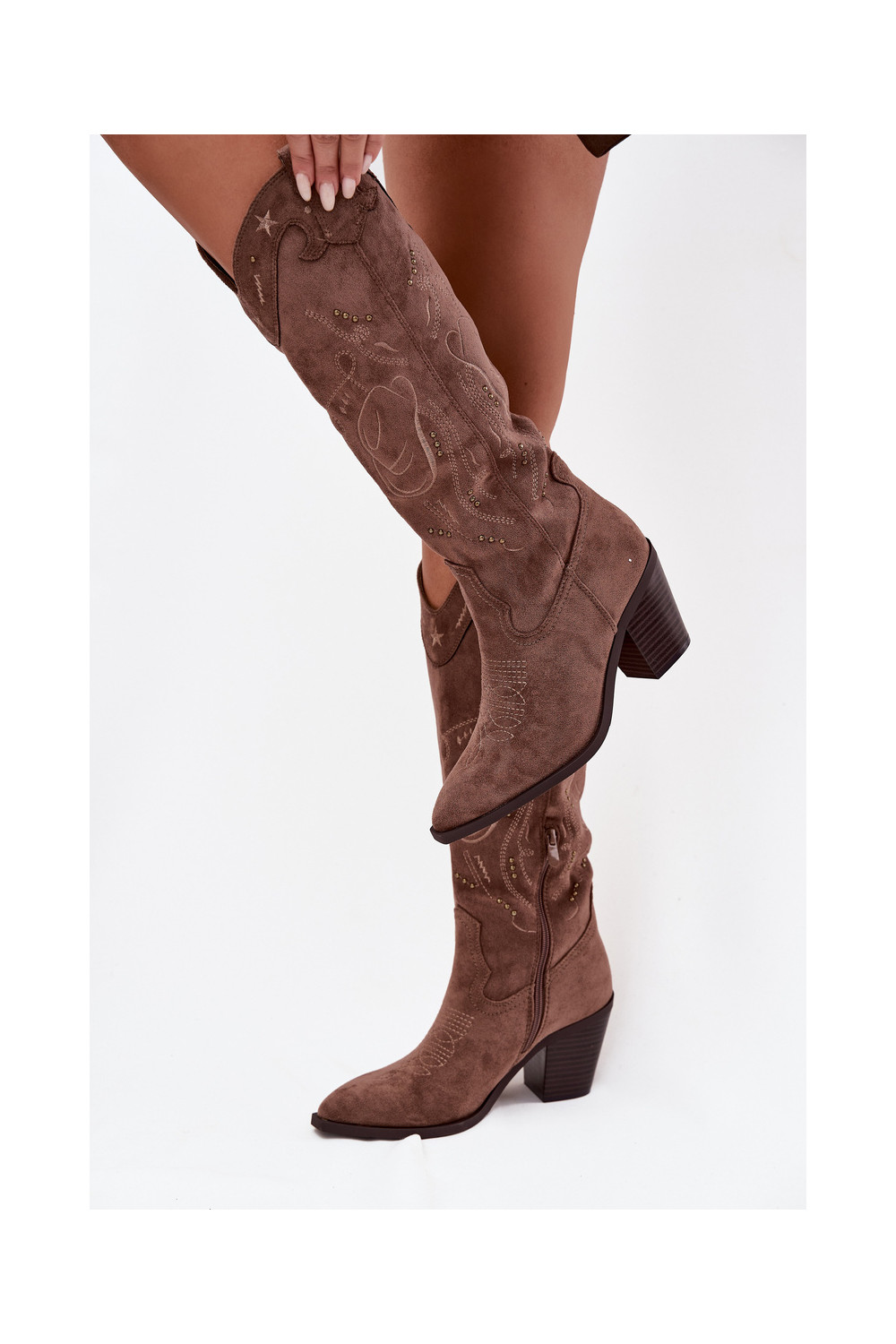dlouhé boty kovbojský styl s podpatky Z z eko semišeu khaki Coretta