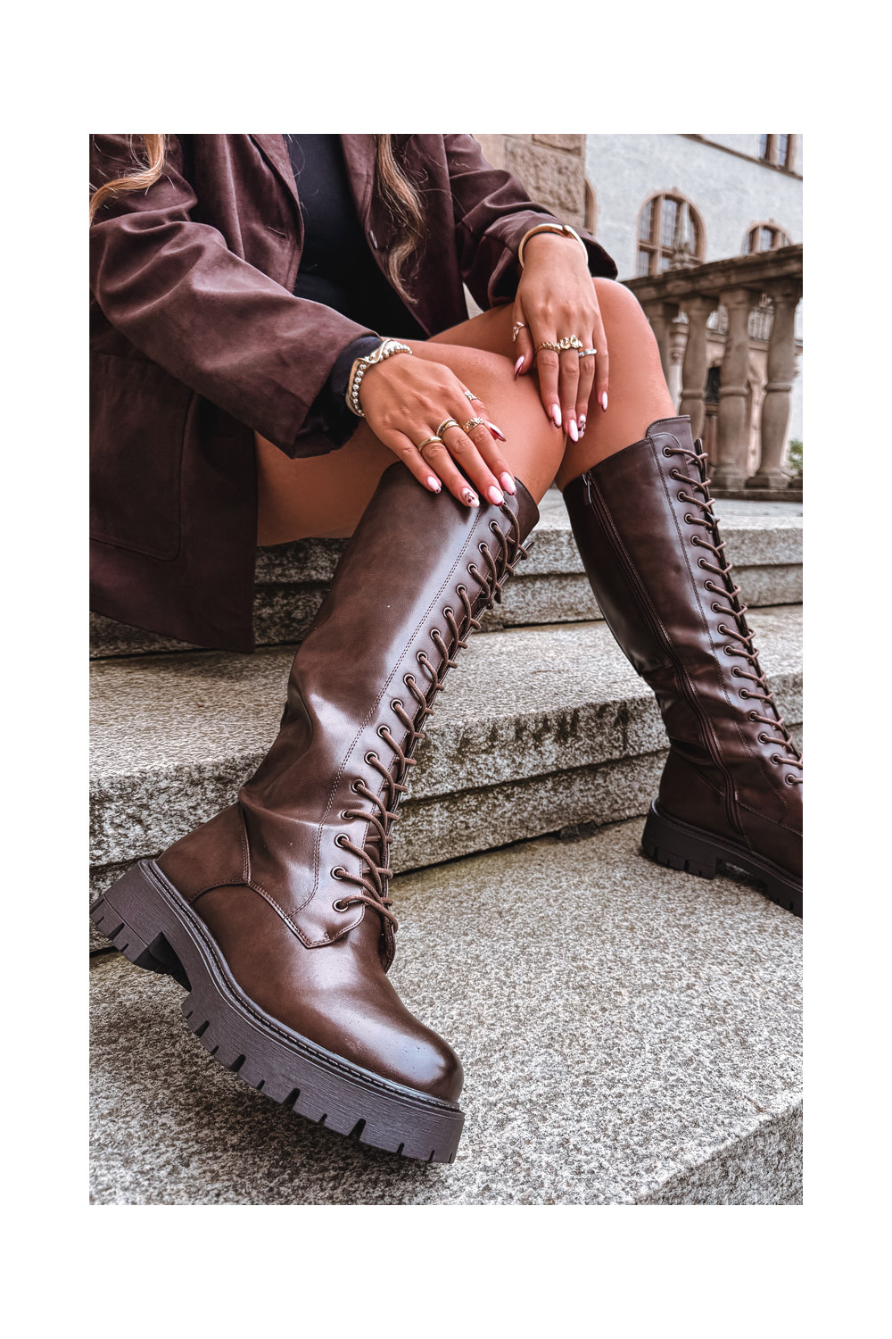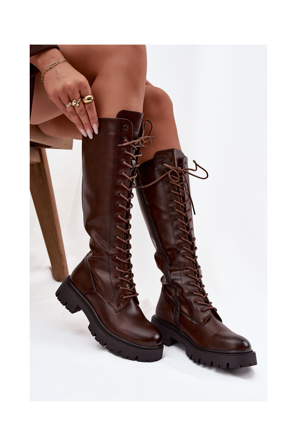 zateplené se šněrováním dámské dlouhé boty Czekoladowe Meliora