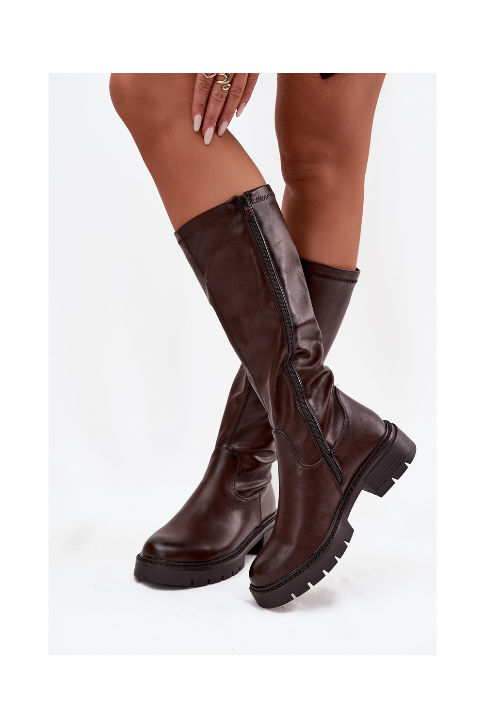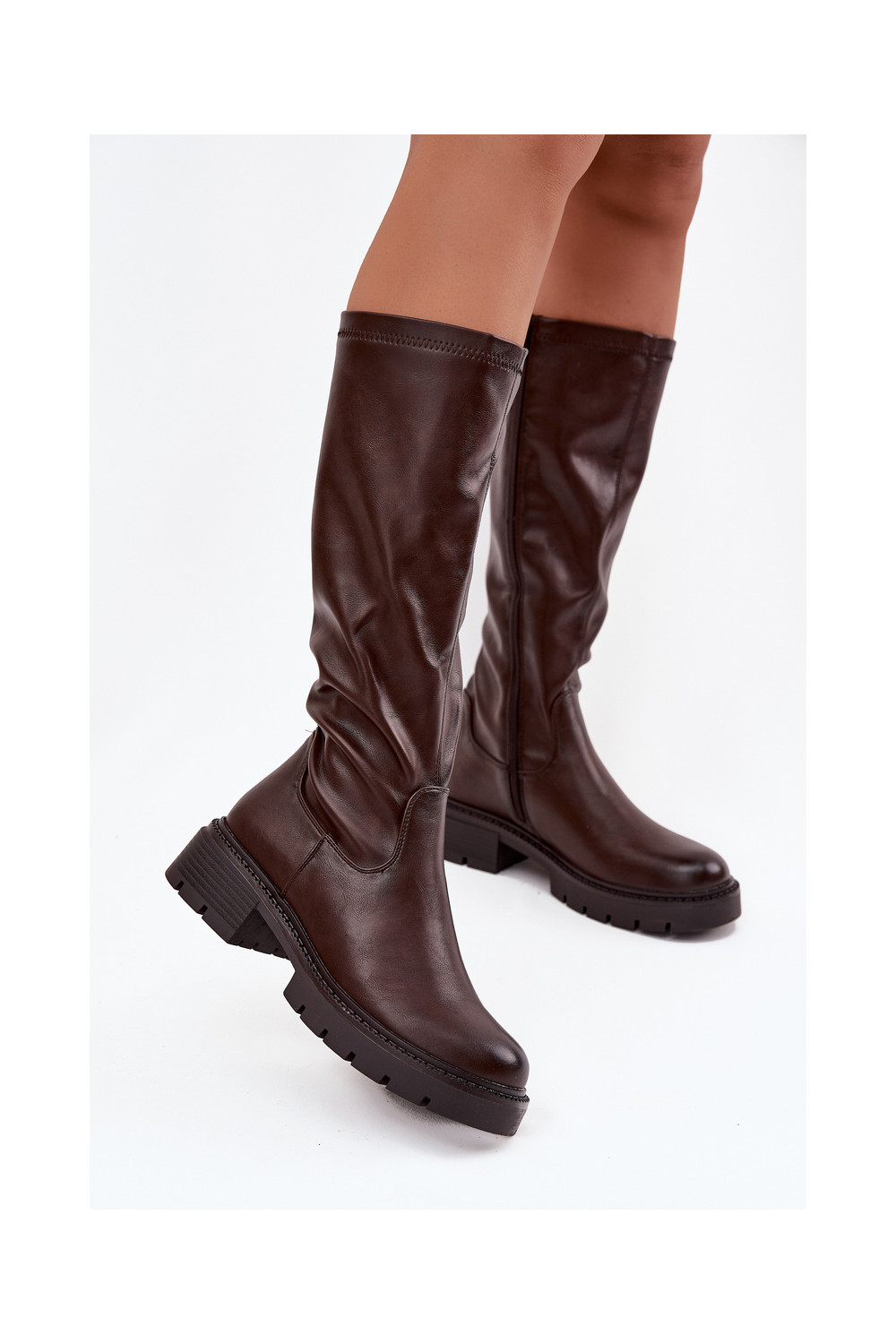 dámské dlouhé boty z ekologické kůže Czekoladowe Oceana
