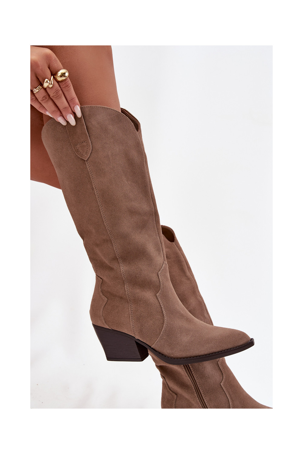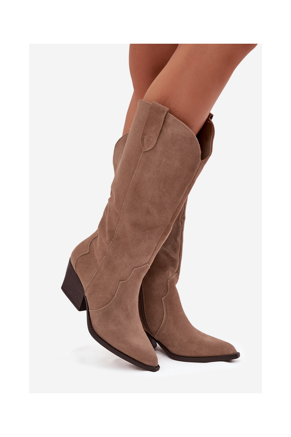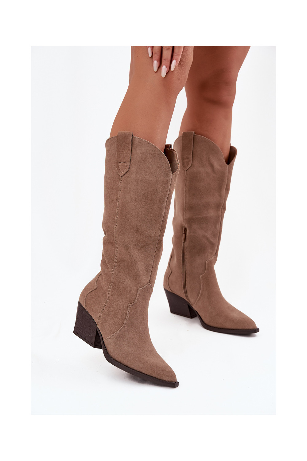 ze semiše dlouhé boty kovbojský styl zateplené khaki Urselle