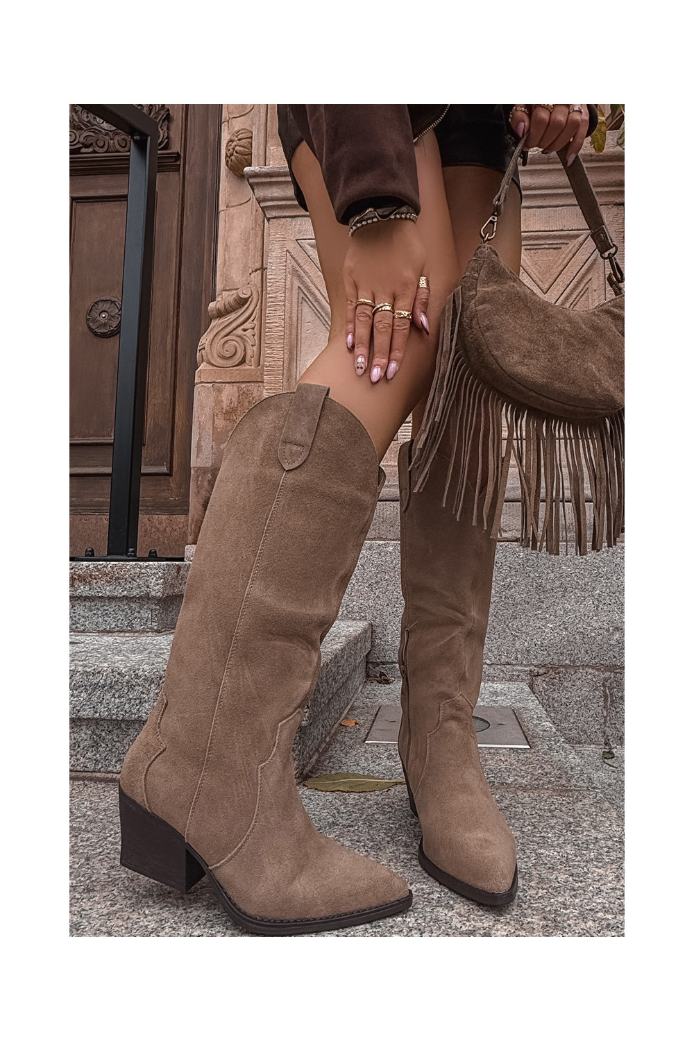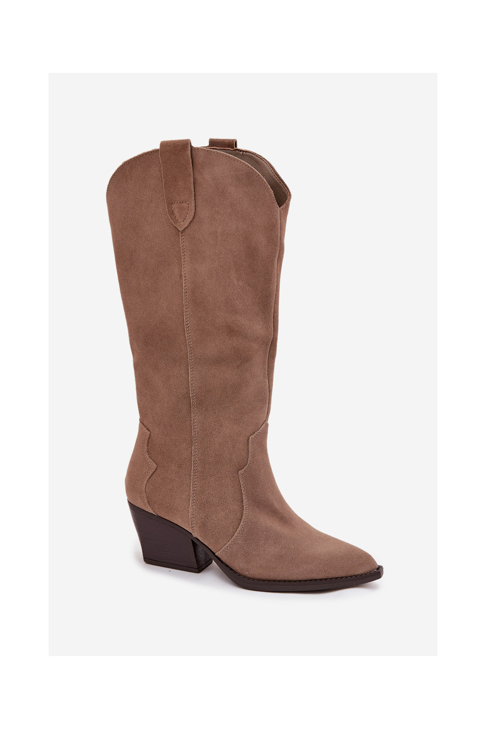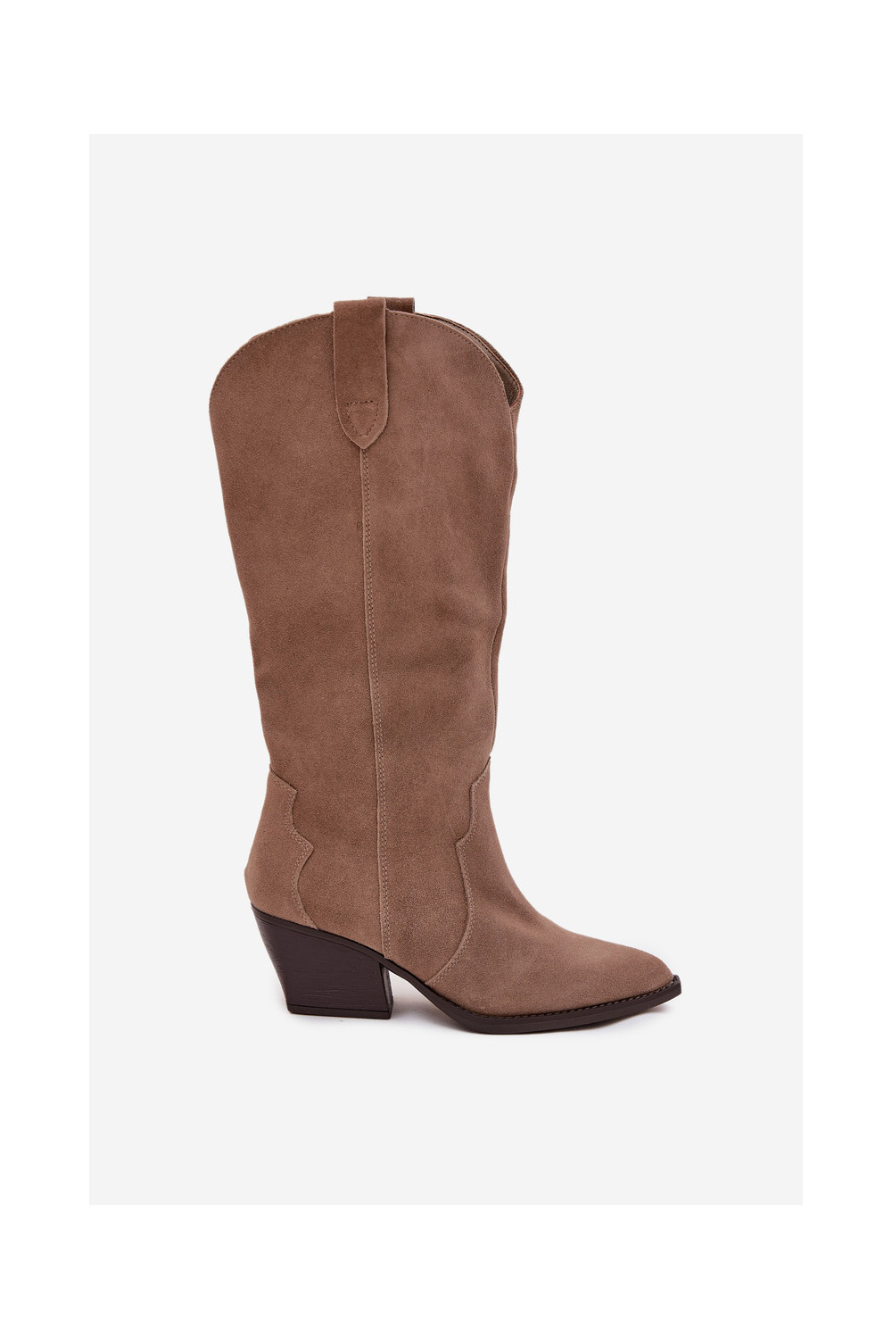 ze semiše dlouhé boty kovbojský styl zateplené khaki Urselle