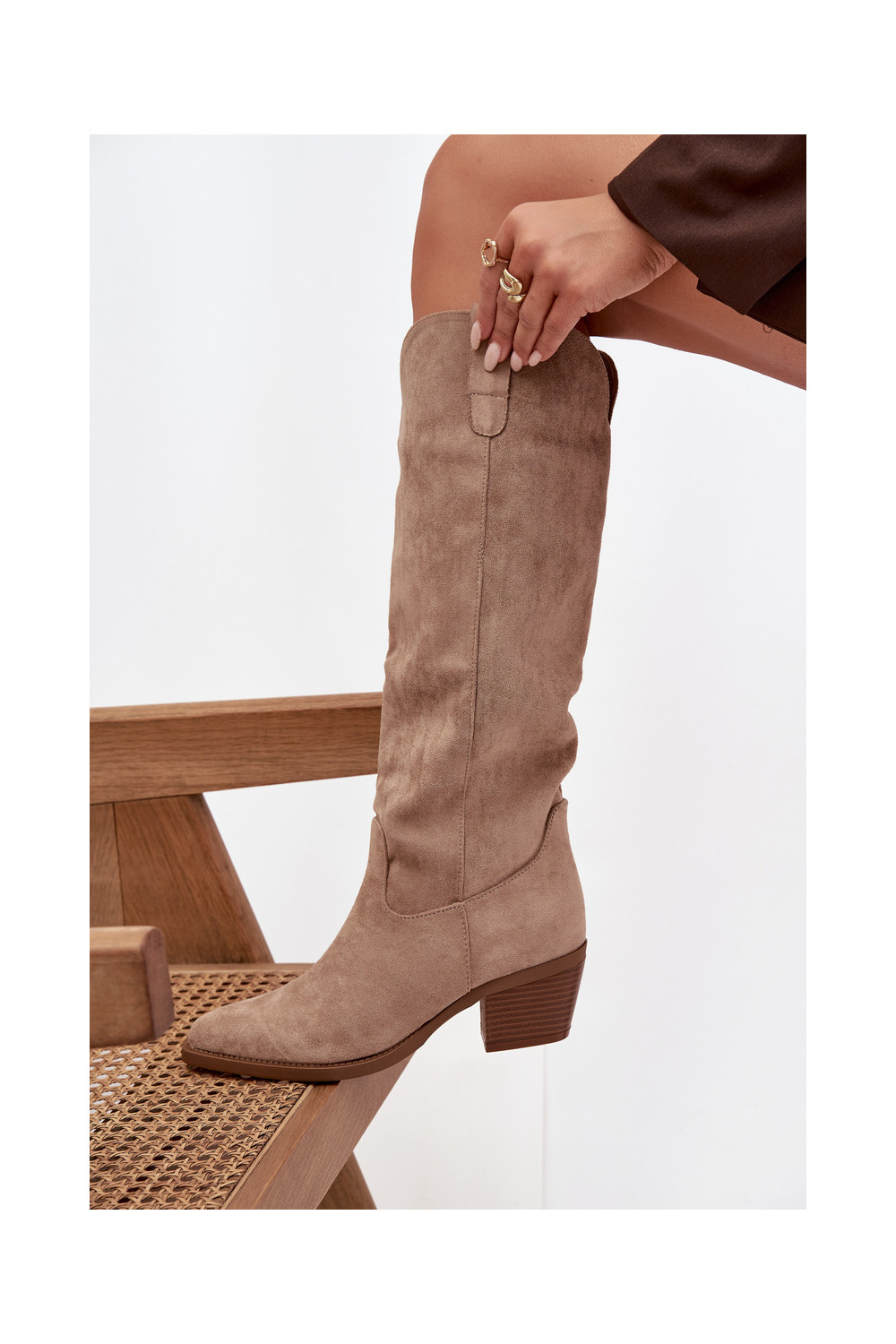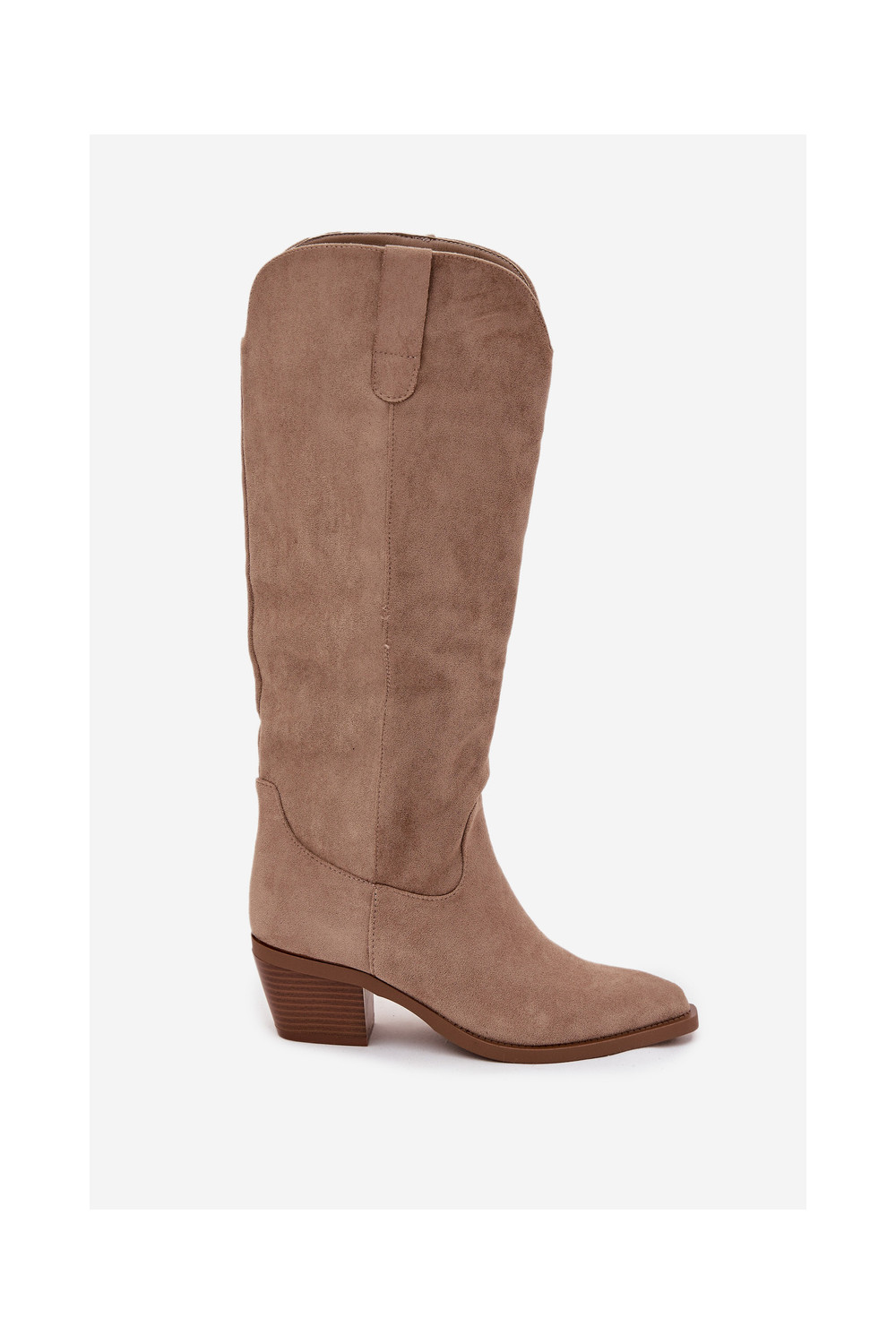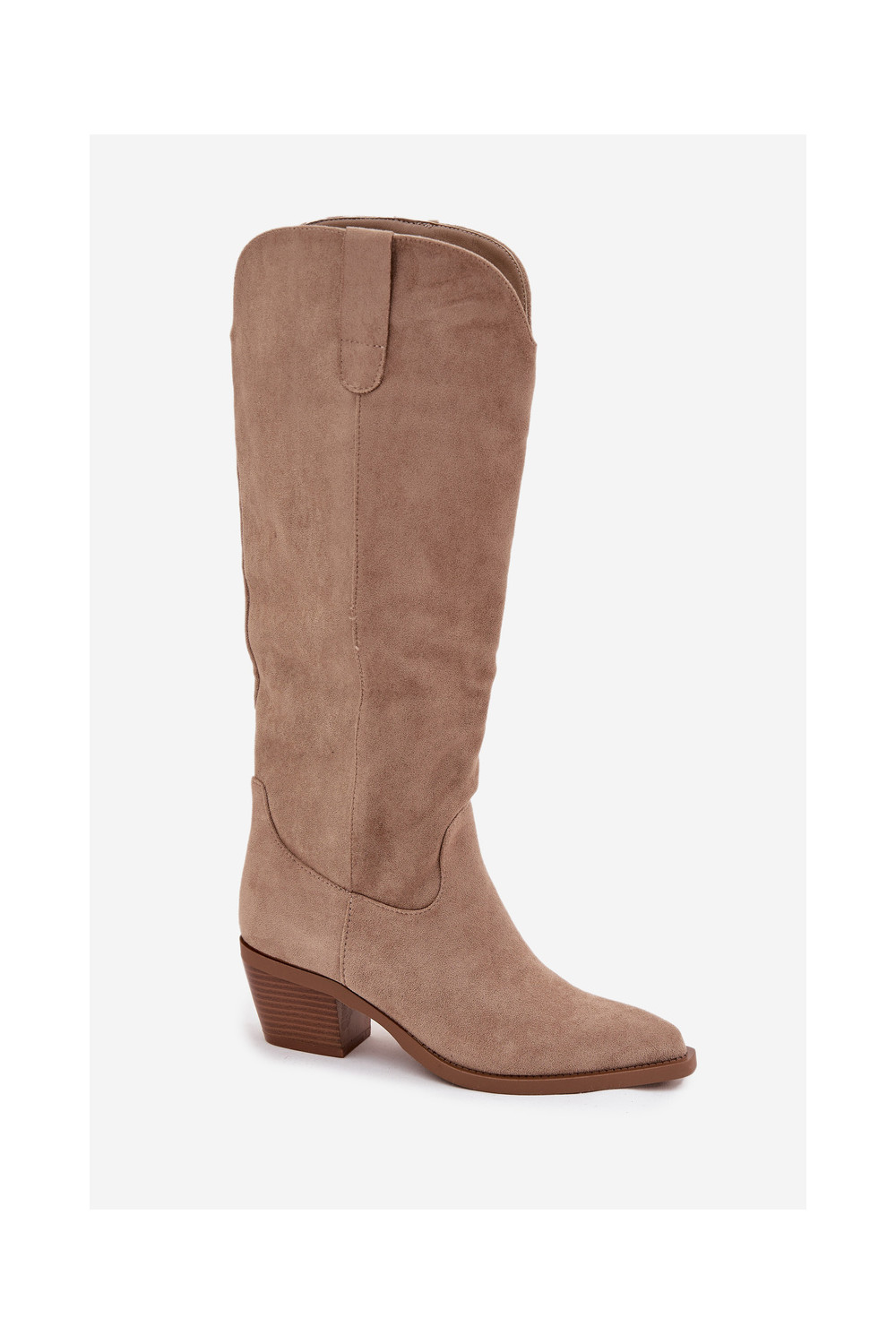 dlouhé boty kovbojský styl s podpatky Z z eko semišeu béžové Esmira