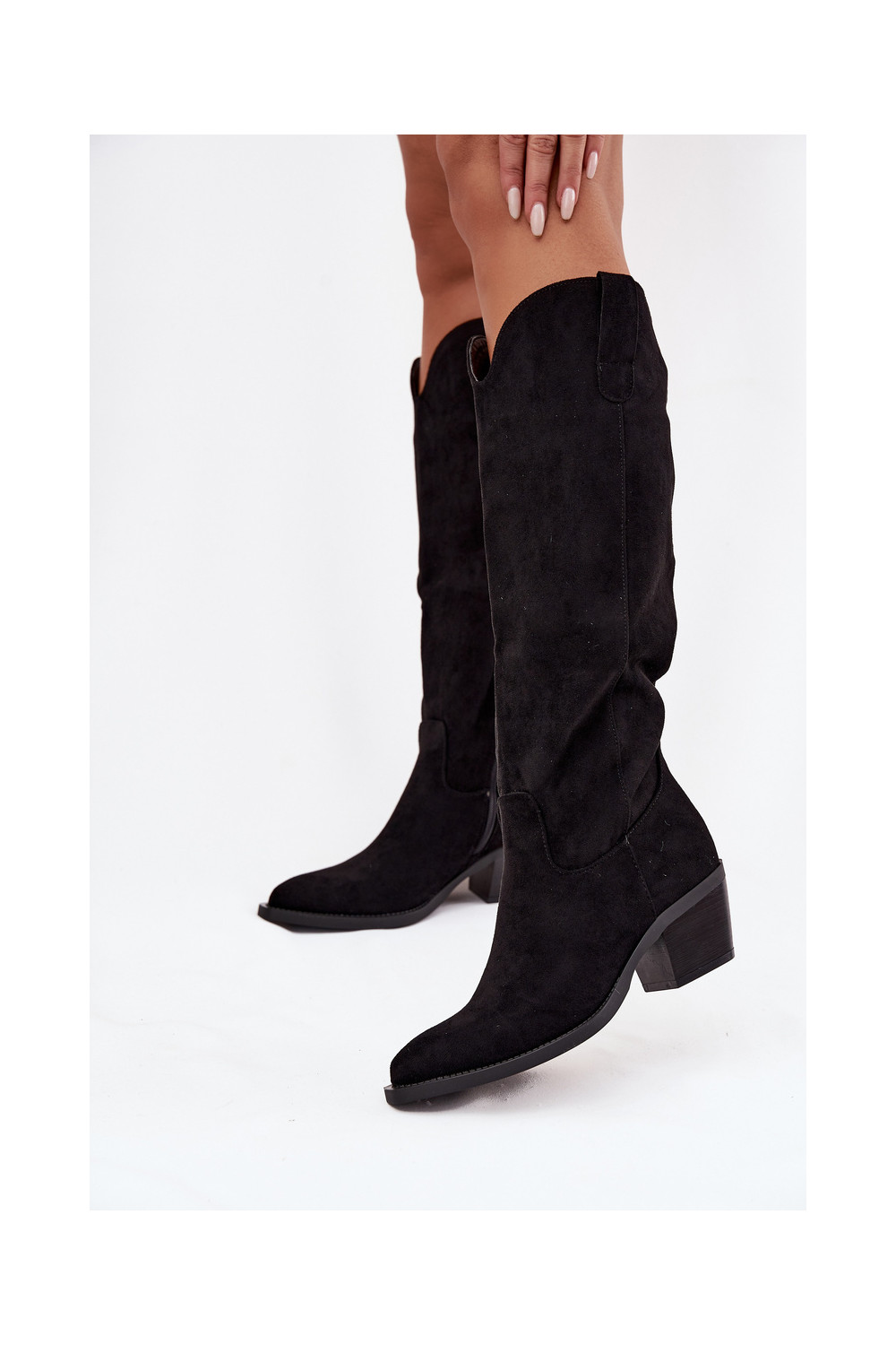 dlouhé boty kovbojský styl s podpatky Z z eko semišeu Černé Esmira