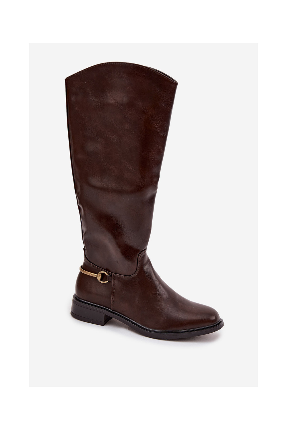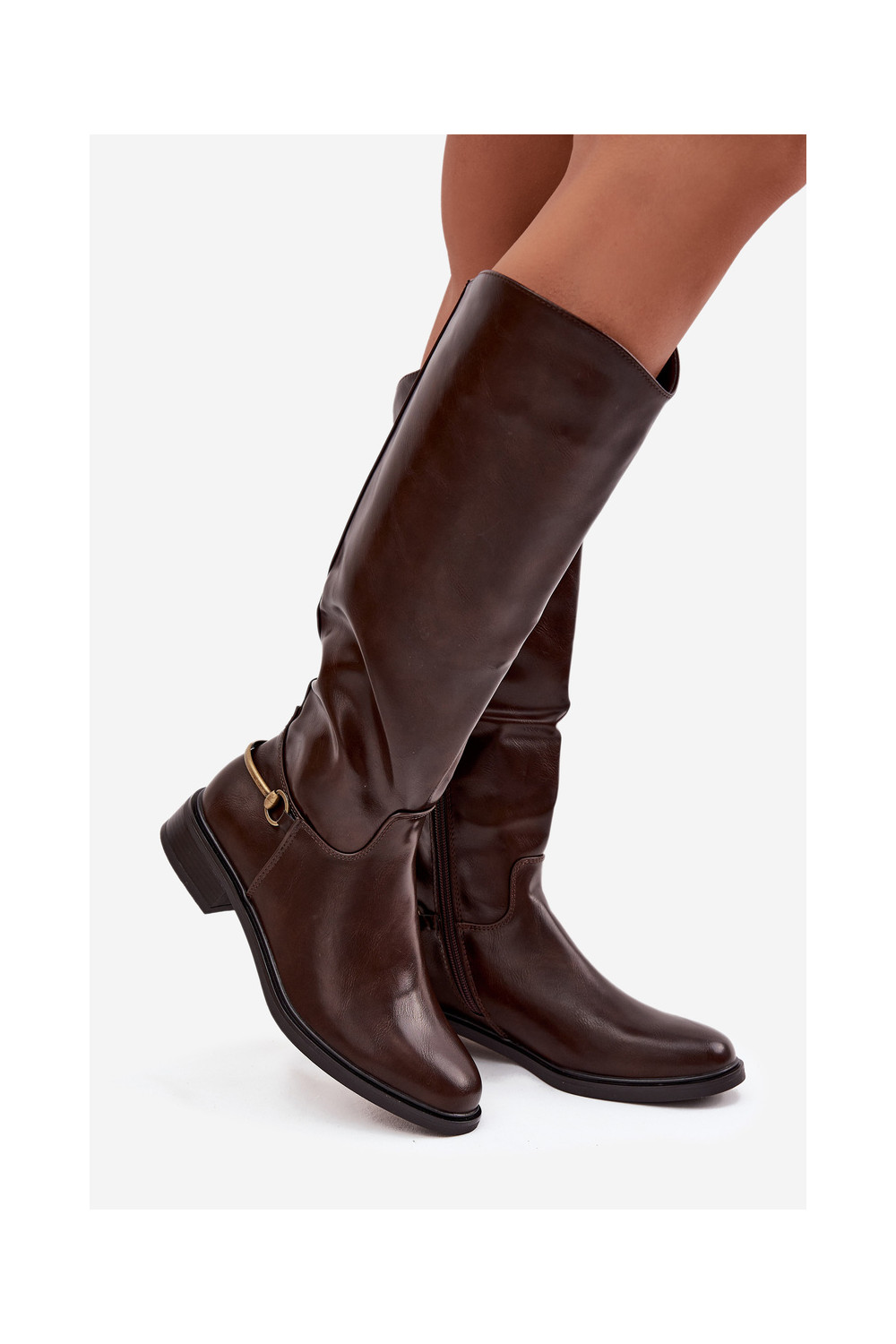 zateplené dámské dlouhé boty s širokými podpatky Detalem Czekoladowe Renaya