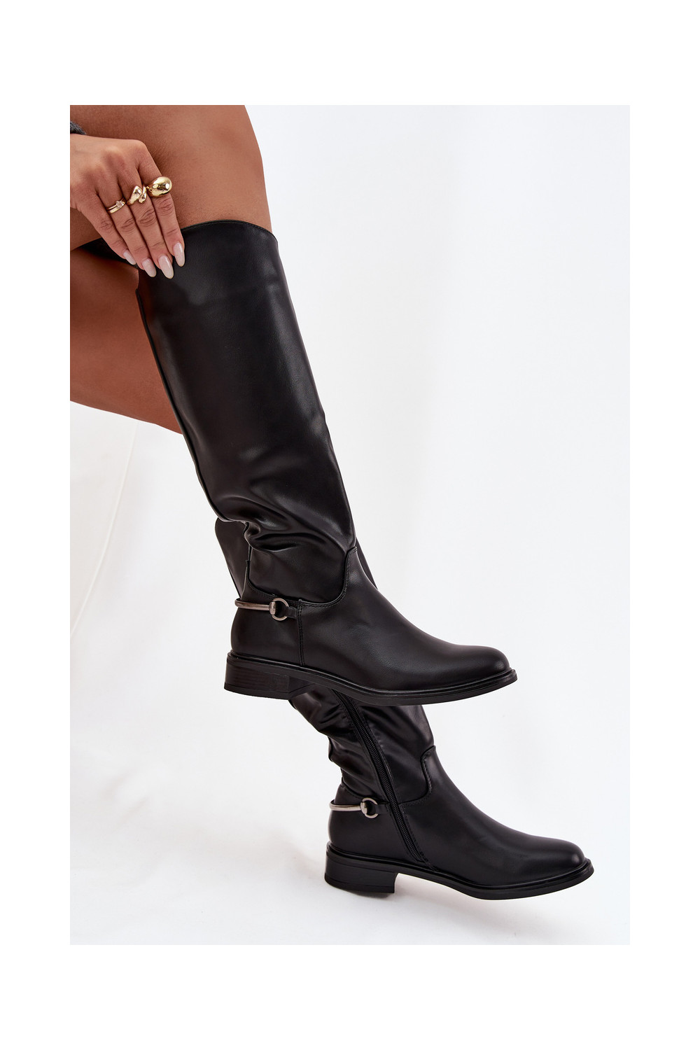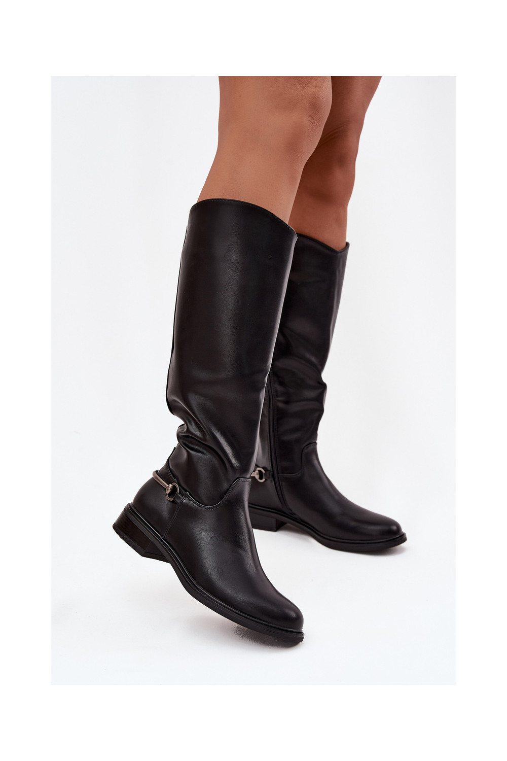 zateplené dámské dlouhé boty s širokými podpatky Detalem Černé Renaya