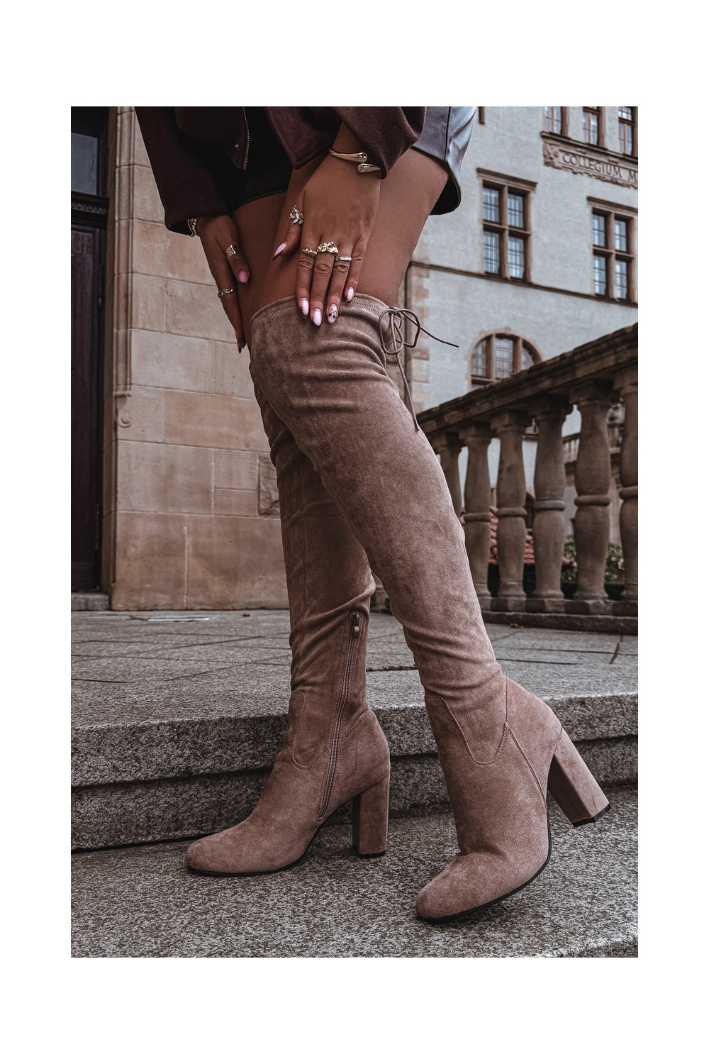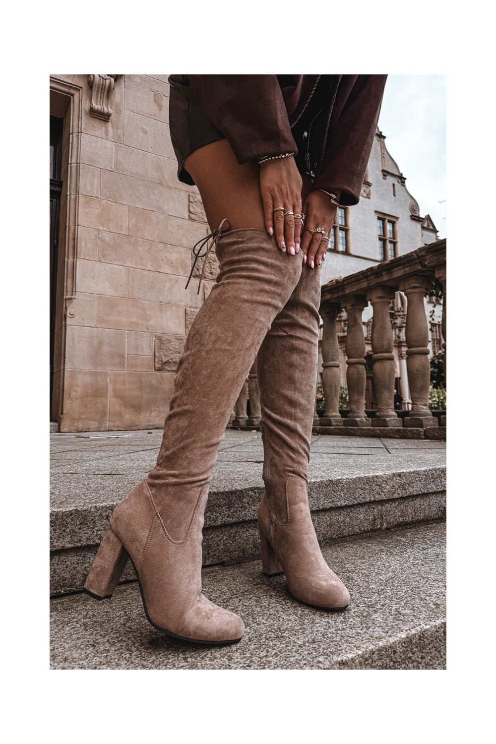 dámské dlouhé boty s podpatky béžové Xamarin