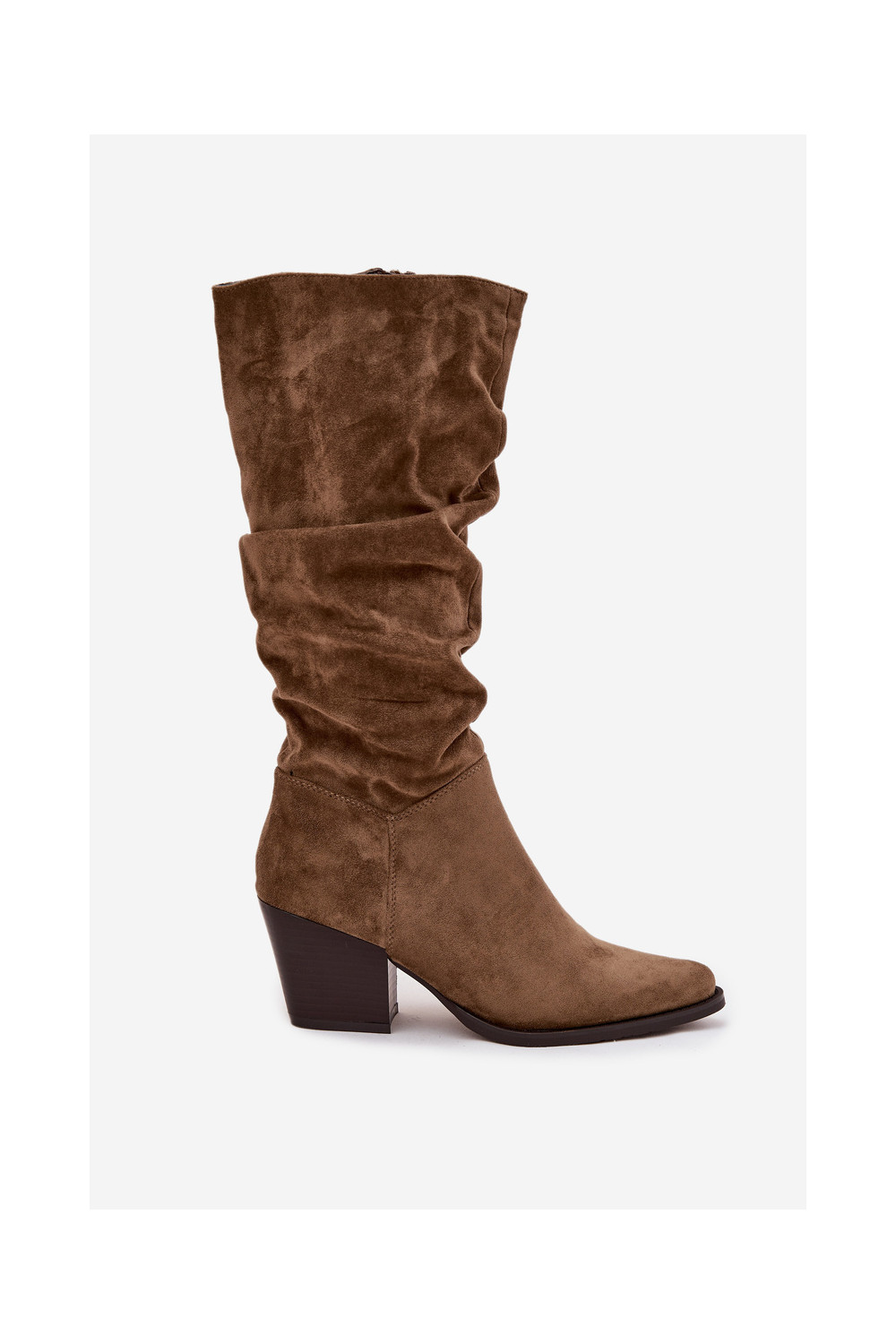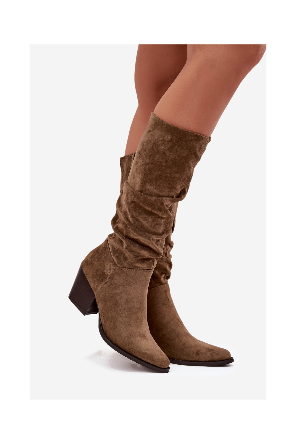 dámské dlouhé boty s vrásčitou podrážkou s podpatky zateplené zelené Paelina