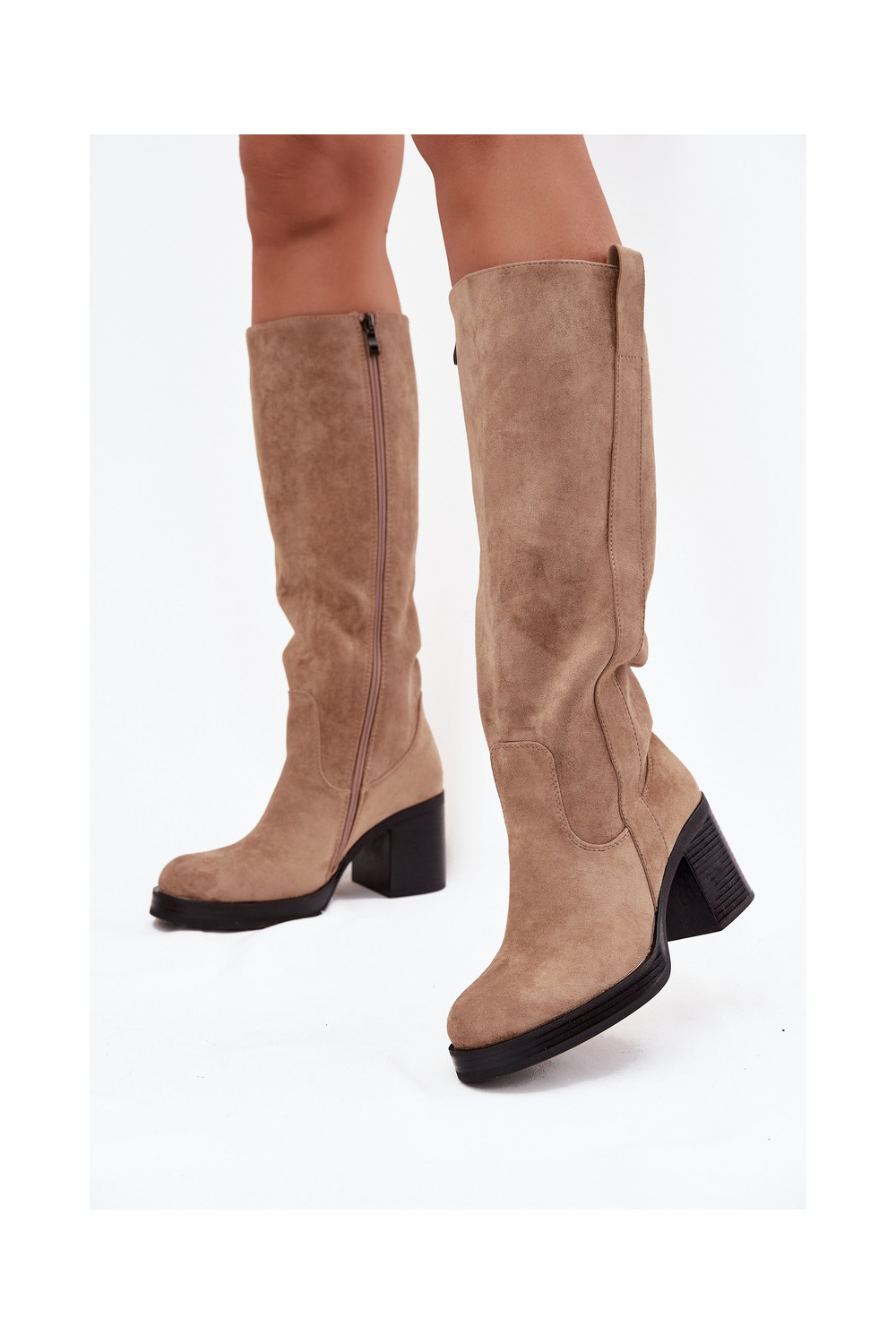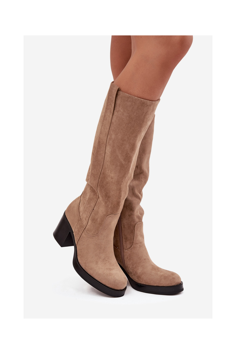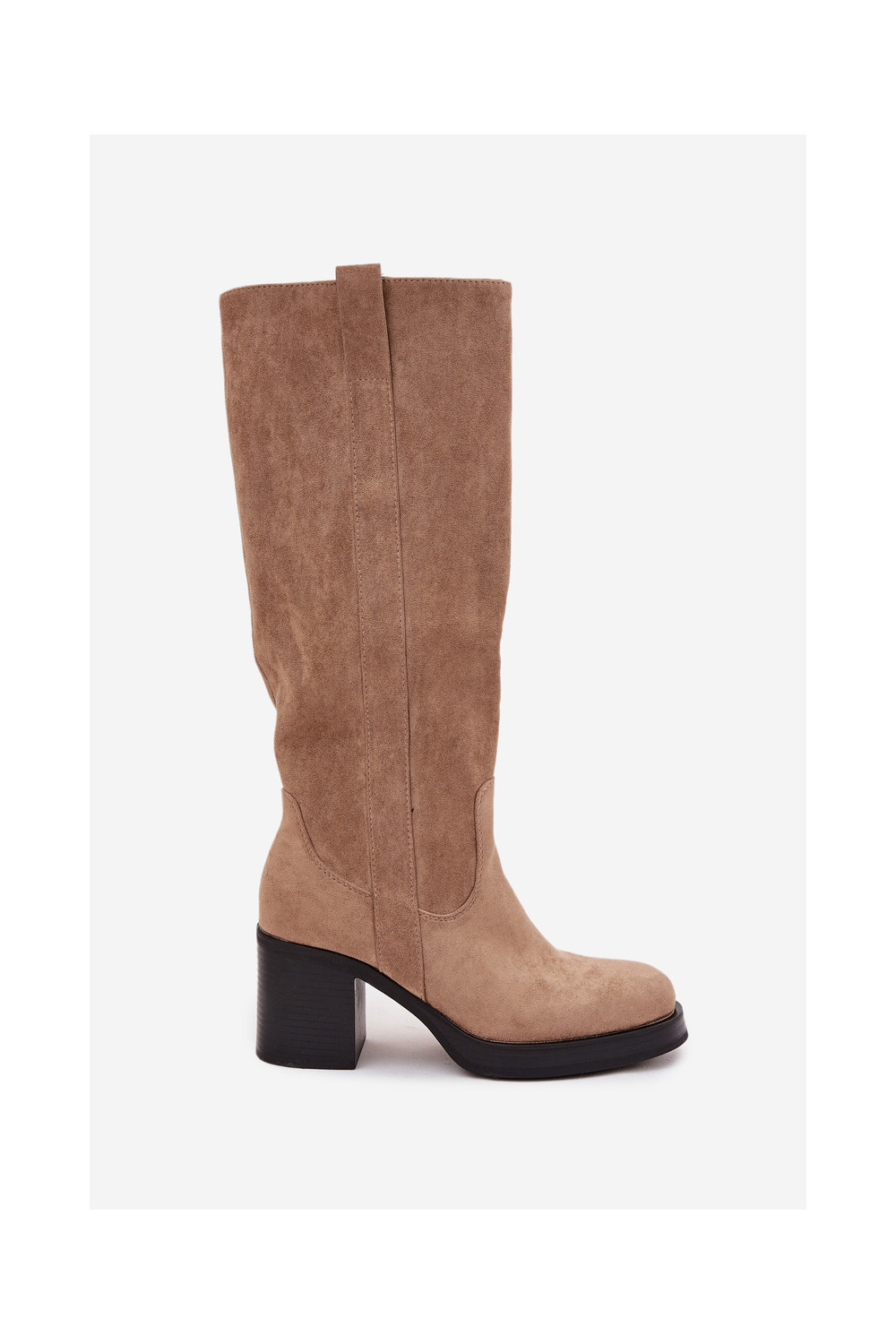 Teplé dlouhé kozačky silný podpatek béžové Sanelle