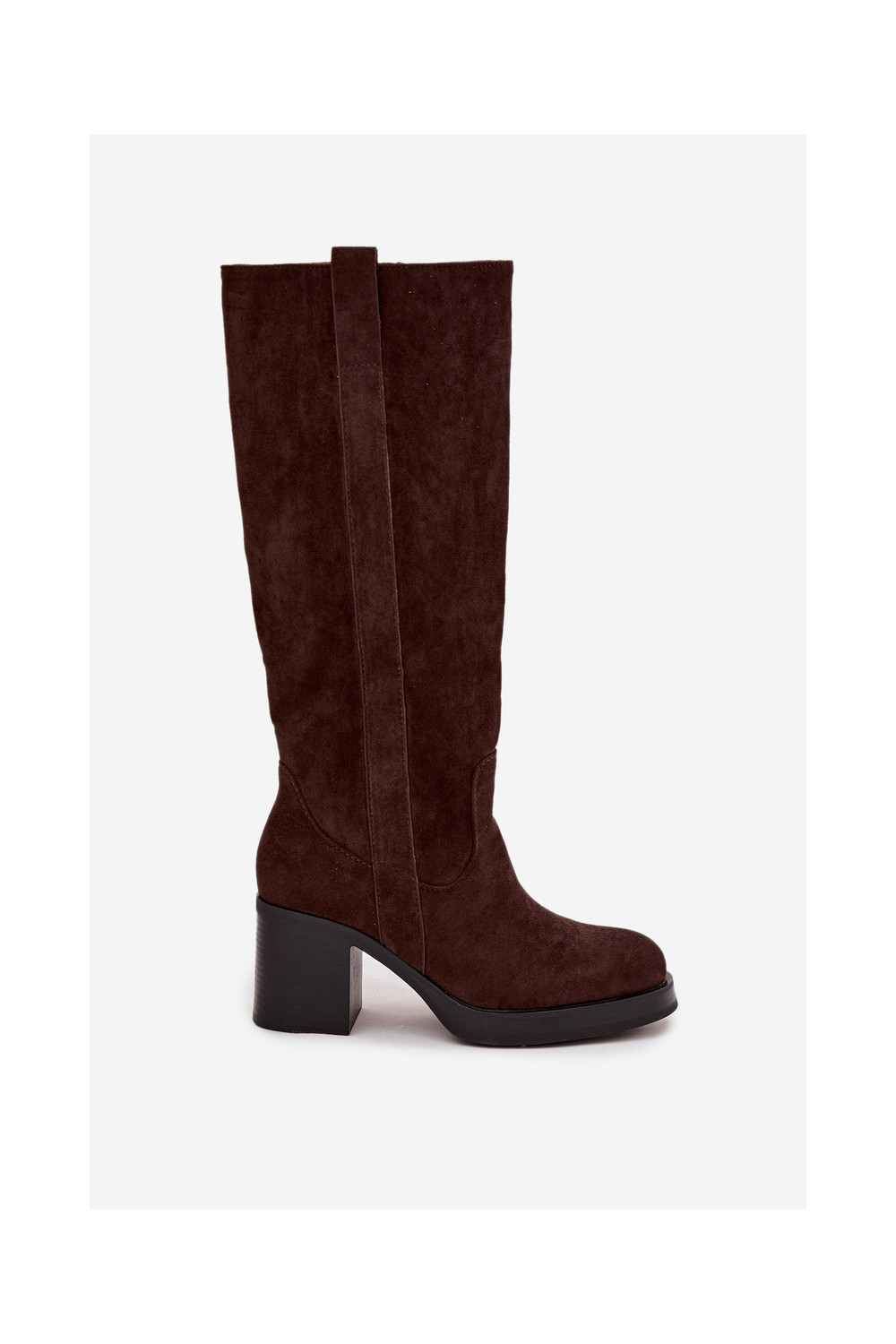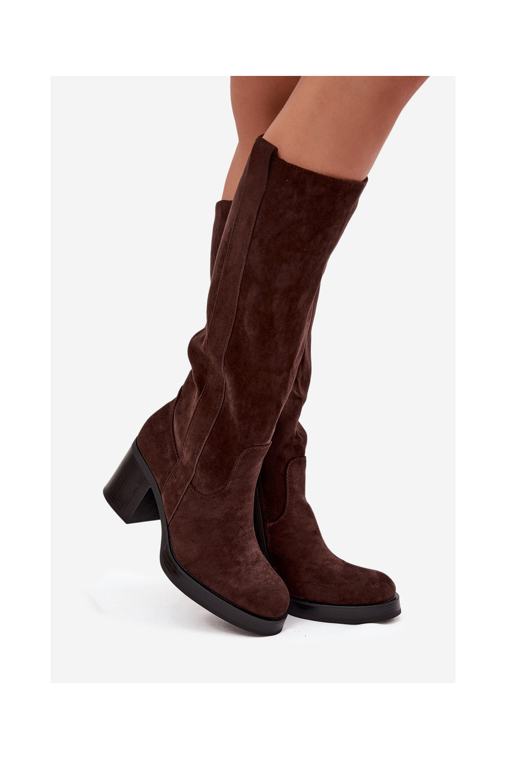 Teplé dlouhé kozačky silný podpatek Czekoladowe Sanelle