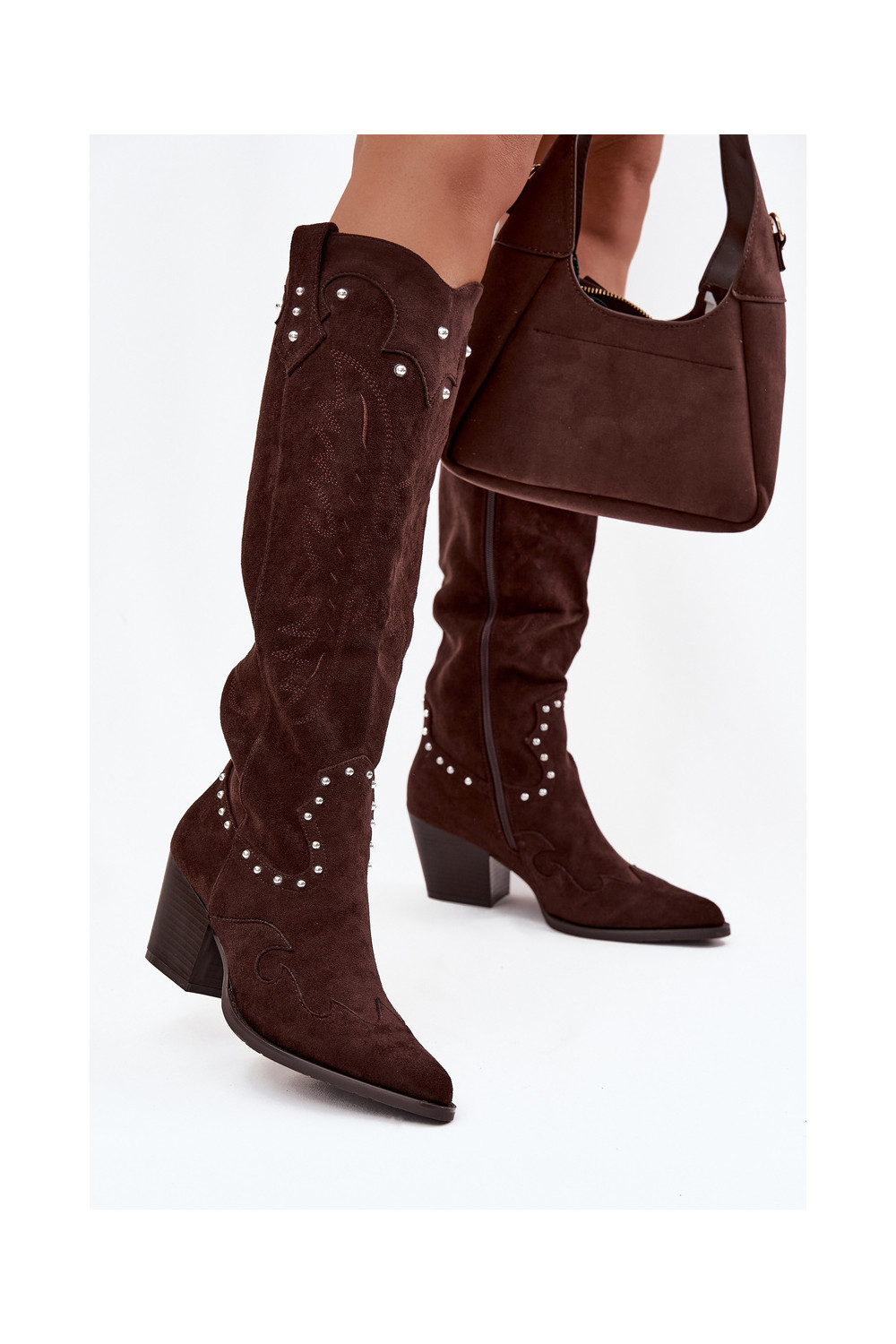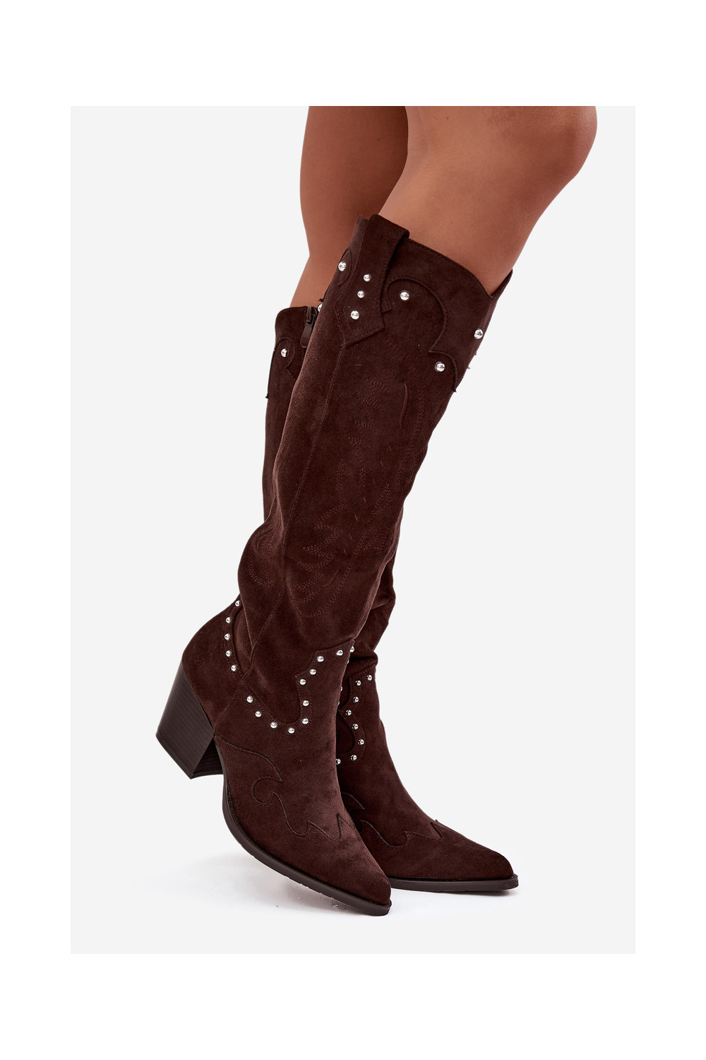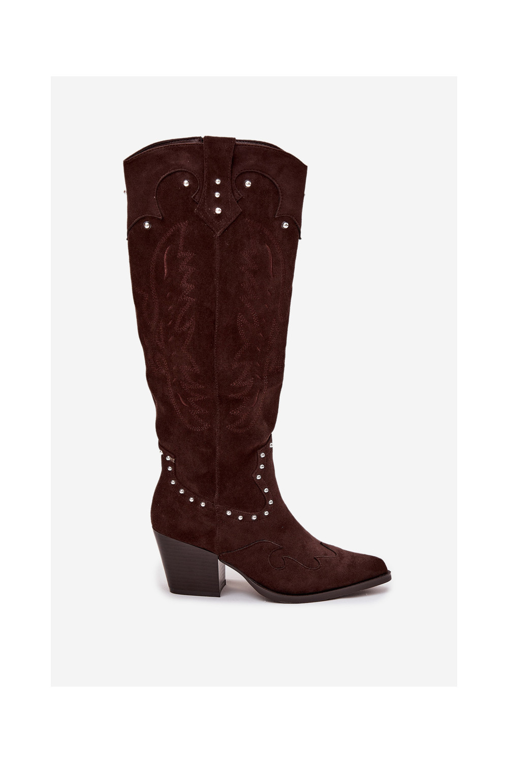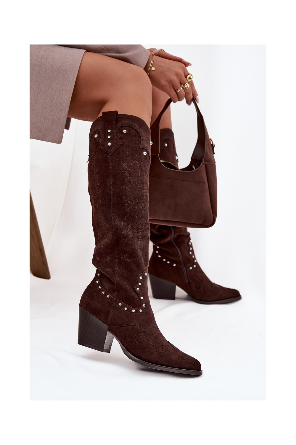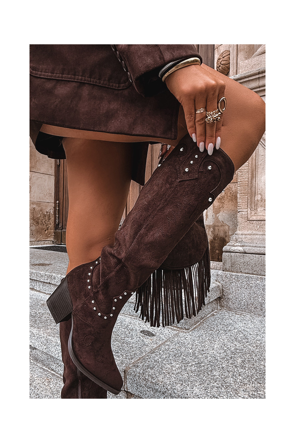 dlouhé boty kovbojský styl s podpatky Czekoladowe Darella