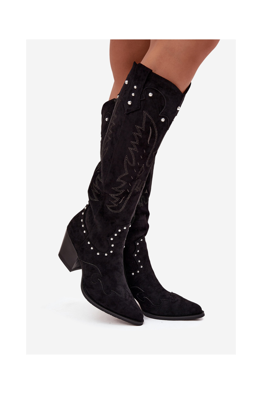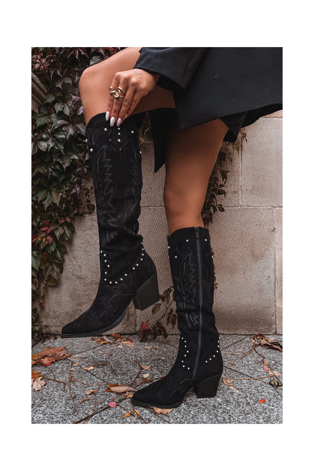 dlouhé boty kovbojský styl s podpatky Černé Darella